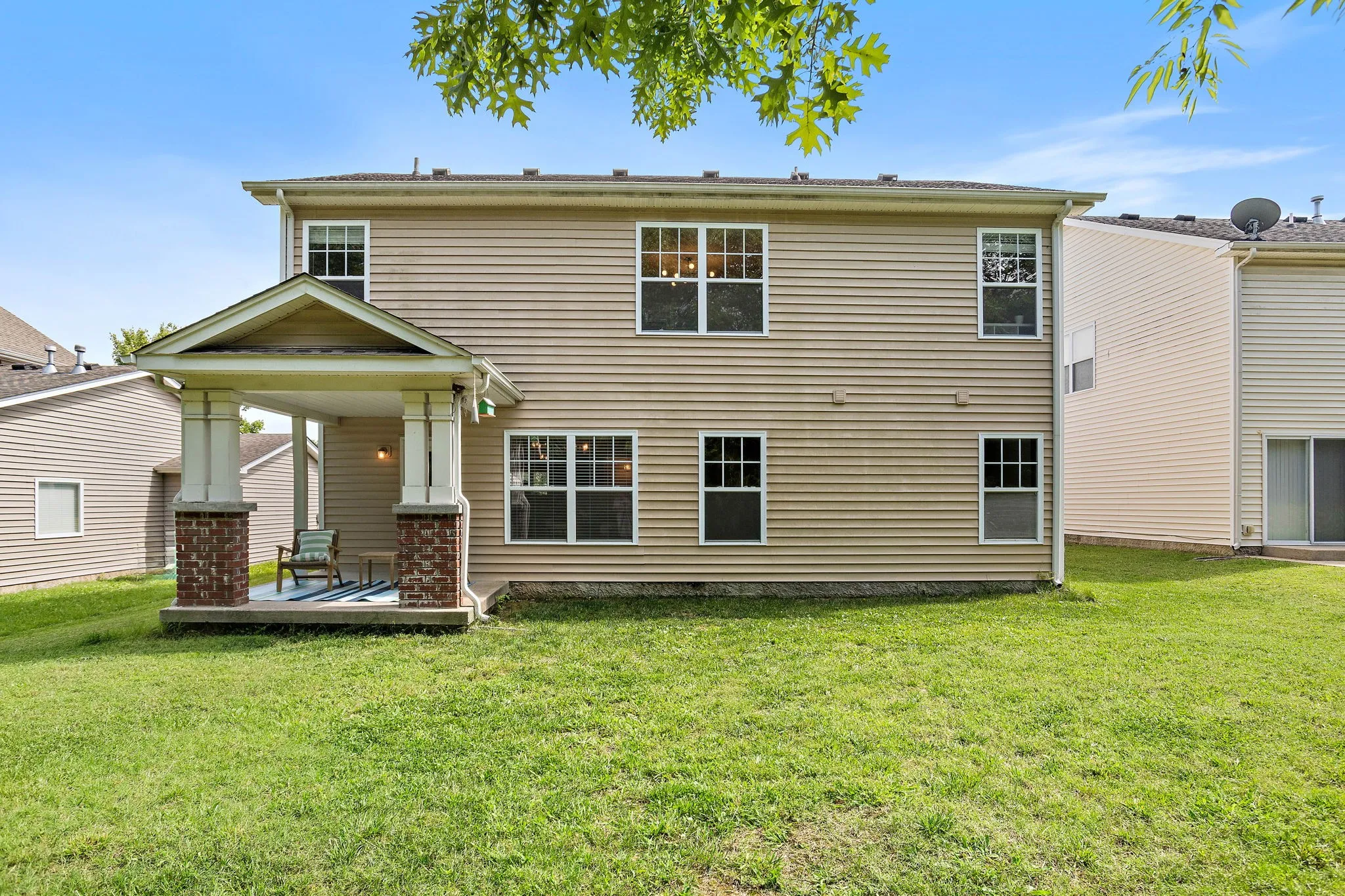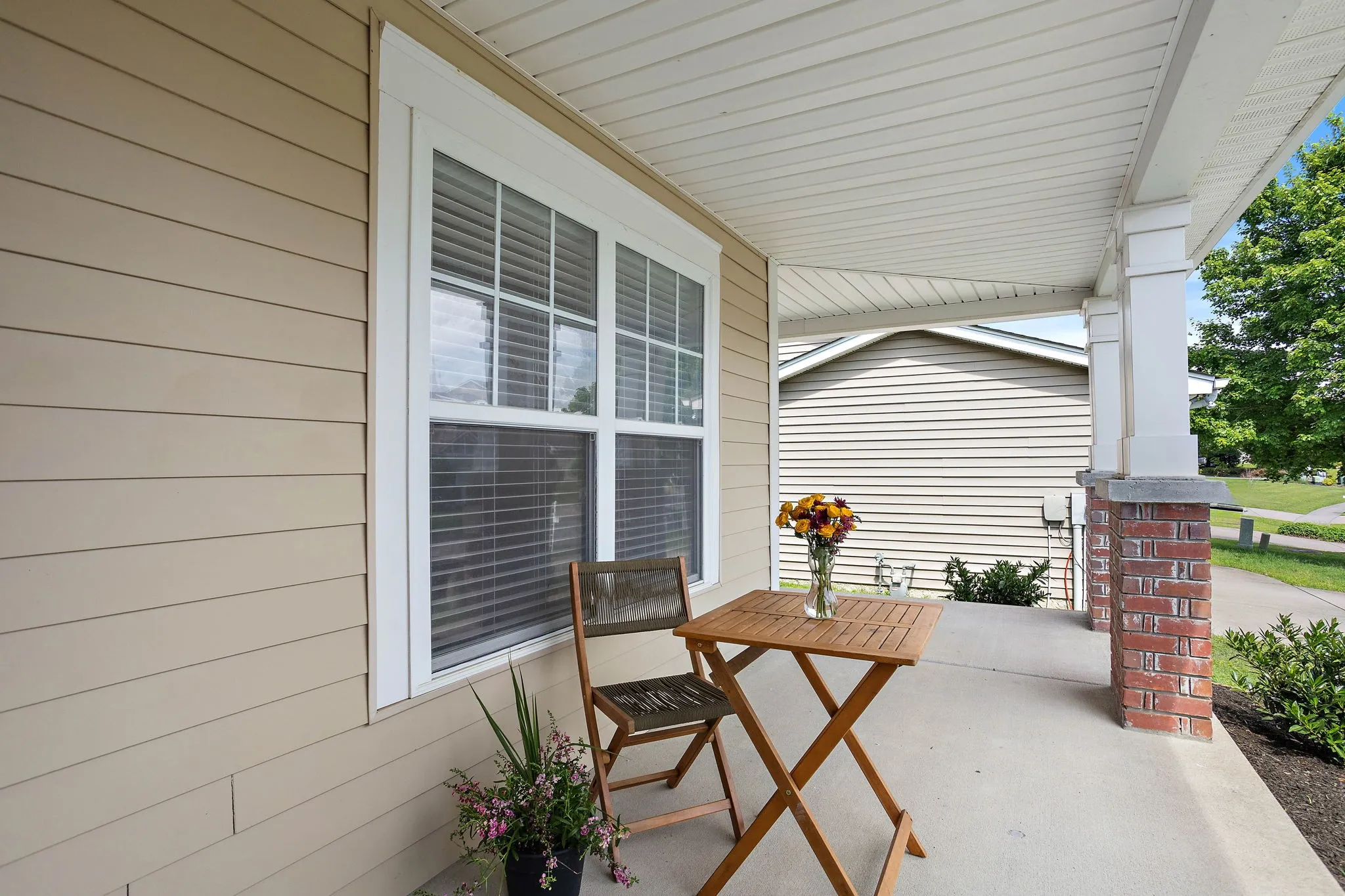 The outdoor spaces are equally impressive, with a private patio and yard providing the perfect setting for outdoor gatherings or moments of solitude. The front porch adds a touch of classic charm, ideal for enjoying a morning coffee or evening sunset.