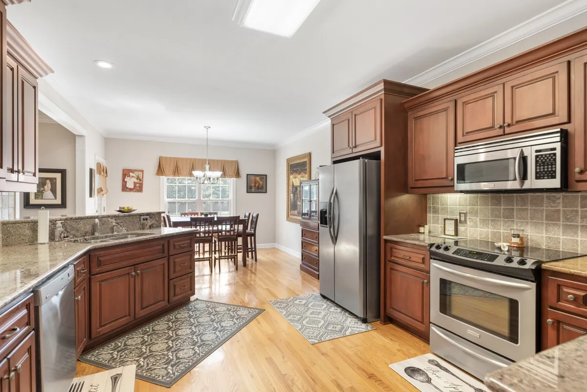 Shockley Custom Build, All Brick, 3 Car Garage, corner Lot, Unique design w/Bonus plus Bedroom and Full Bath, Genuine Hardwood for the high Traffic Areas, Formal Dining w/14 ft Ceiling, 9 ft throughout, Impressive taste and design with a Corner Fireplace, Rich Wood Cabinetry, Sunroom just off the Casual Dining, Zoned Bedrooms, Lot offers Just the right amount of Maintenance-Aggregate Driveway-No Asso Fees