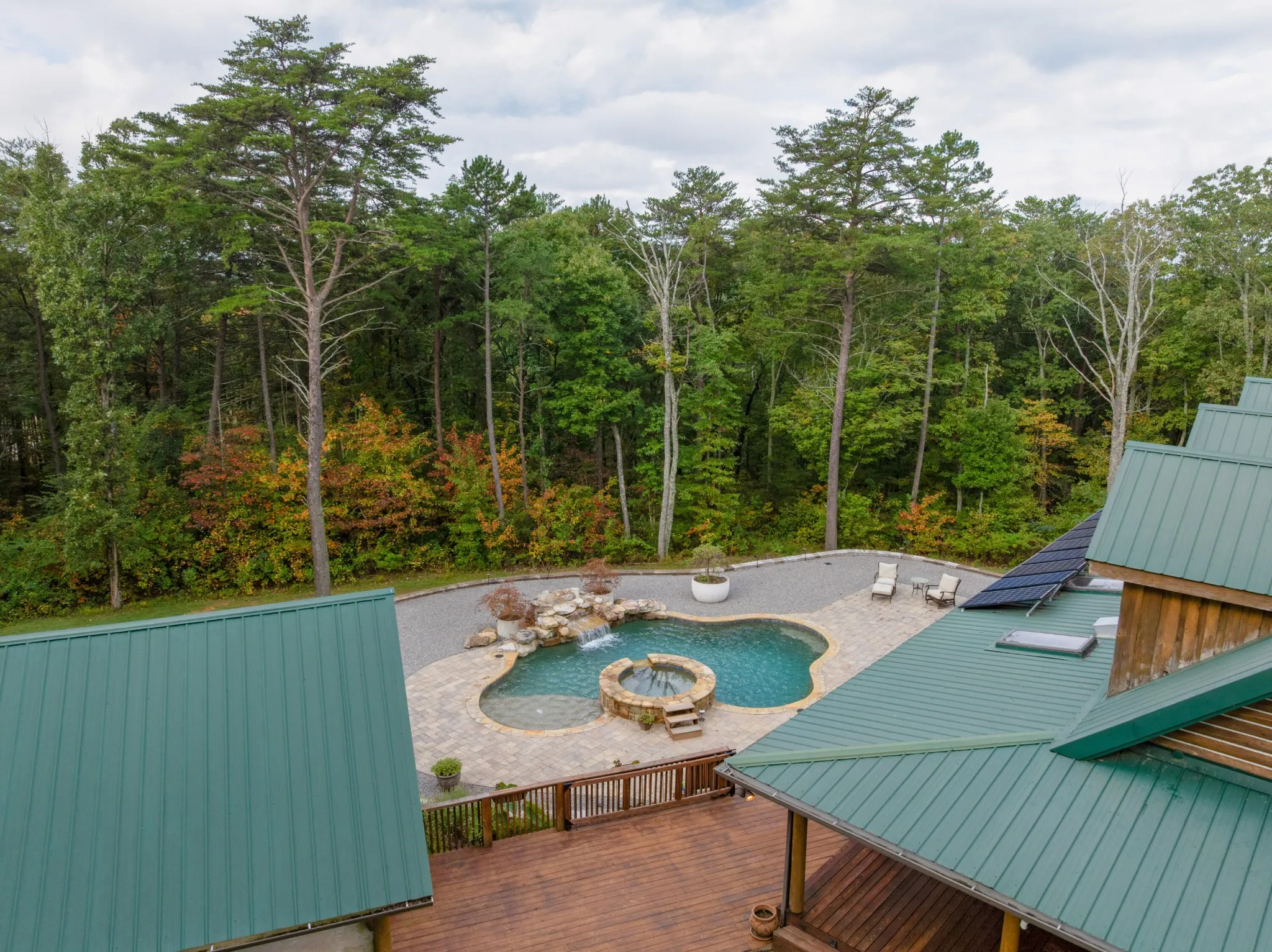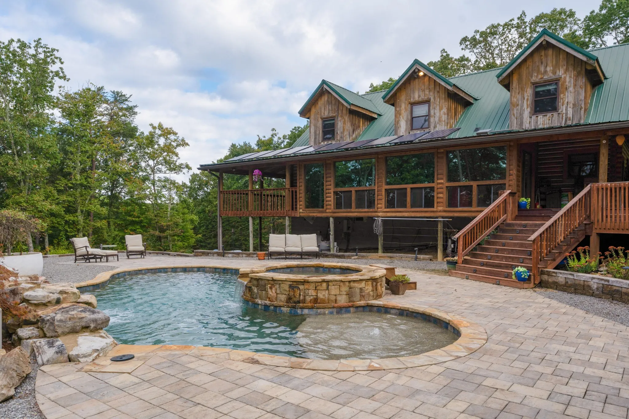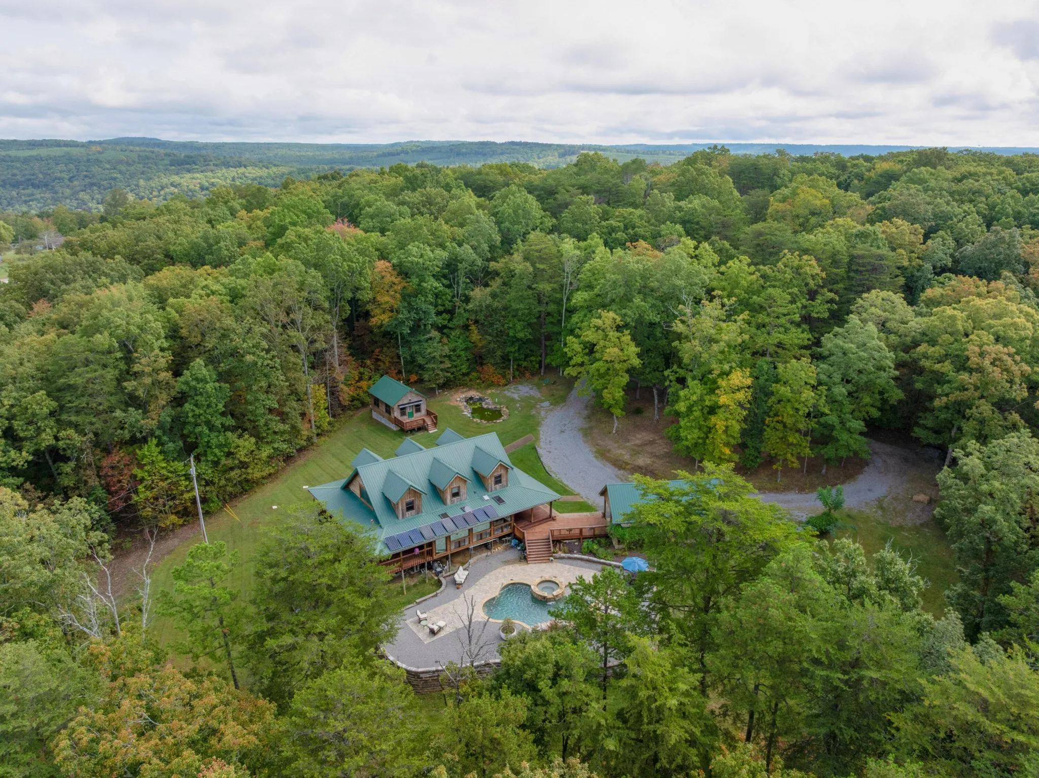 +"PublicRemarks": "Unique opportunity to own this private oasis only 20 minutes from downtown Chattanooga. Situated on 5.88 +/- acres on Suck Creek Mountain, this property features a custom built 3 bedroom, 2.5 bath modern cabin with a 3-car carport, a 400 +/- sf studio/guest house, and a detached workshop. The property boasts 2 koi ponds and a beautiful gunite, saltwater pool with spa, sun platform and waterfalls, further enhancing this serenity of this wooded mountain locale. The main house also has a wonderful wrap-around porch, essentially extending your living spaces and taking full advantage of the setting. Once inside, you will immediately appreciate the beautiful hardwoods and tile, vaulted and beamed ceilings, open floor plan, decorative lighting, primary on the main, wonderful natural lighting and perhaps most notably, the custom, hand-made staircase that is a work of art in itself. Your tour of the main level begins with the gourmet kitchen that has a center island, quartzite countertops, tile backsplash, soft close drawers, a pot filler, and stainless steel appliances, including a Viking gas range with full sized double ovens, a Viking hood, a Subzero refrigerator, an under-counter microwave and a Viking dishwasher. The kitchen is open to the dining room and the great room where you will find an area plumber for a wood-burning stove if desired, access to the powder room, and 3 sets of French doors to the sunroom. The sunroom overlooks the pool and will quickly become a favorite spot with its skylights and sliding glass doors to the porch on either end. The primary bedroom is also off the great room and has access to the side porch and barn doors to the primary bath and the walk-in closet with center island and organizer system. The primary bath has an elongated dual vanity, a free-standing tub, a separate shower with tile and glass surround, rain head and wand, and a door to the rear porch."