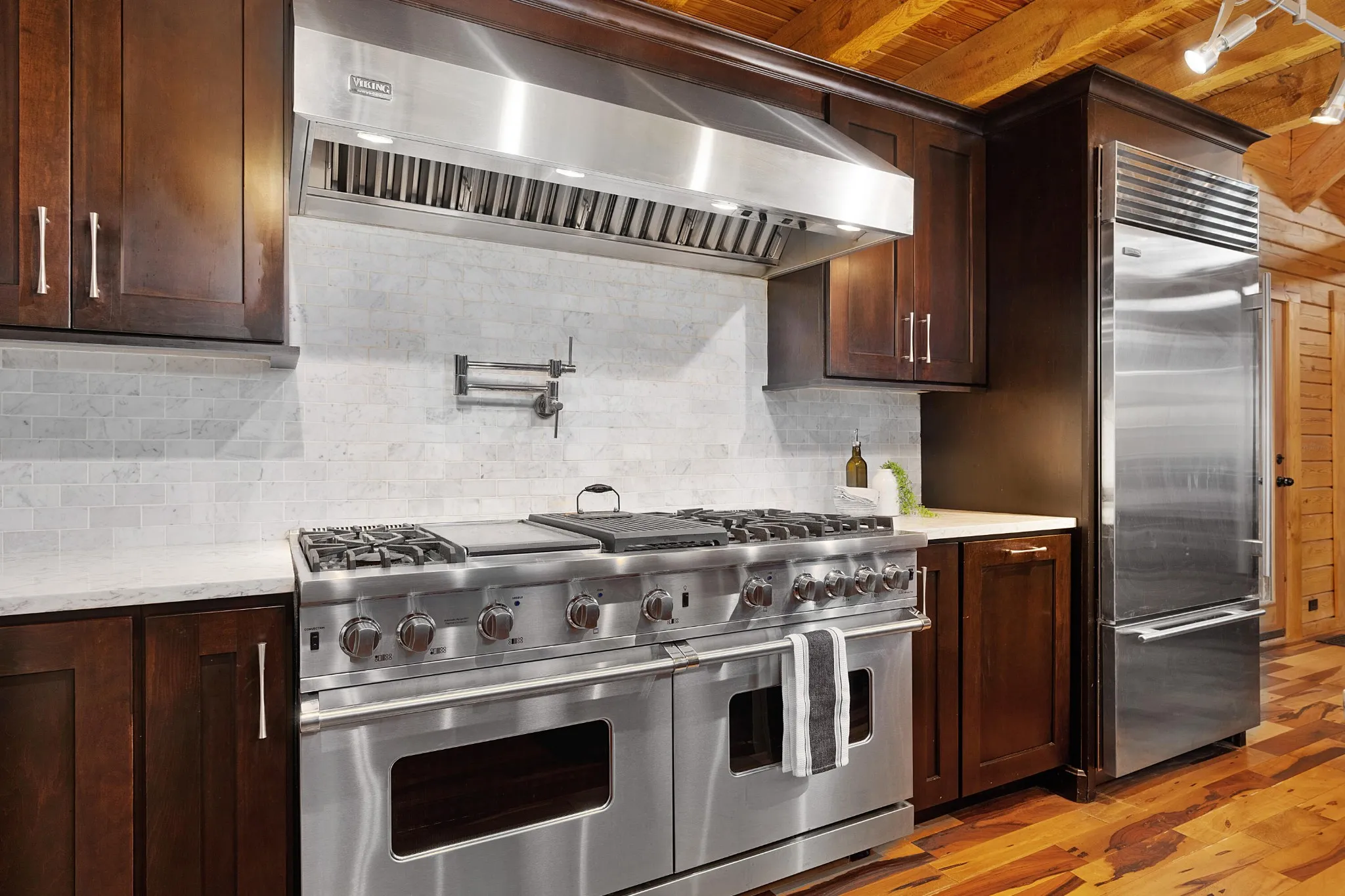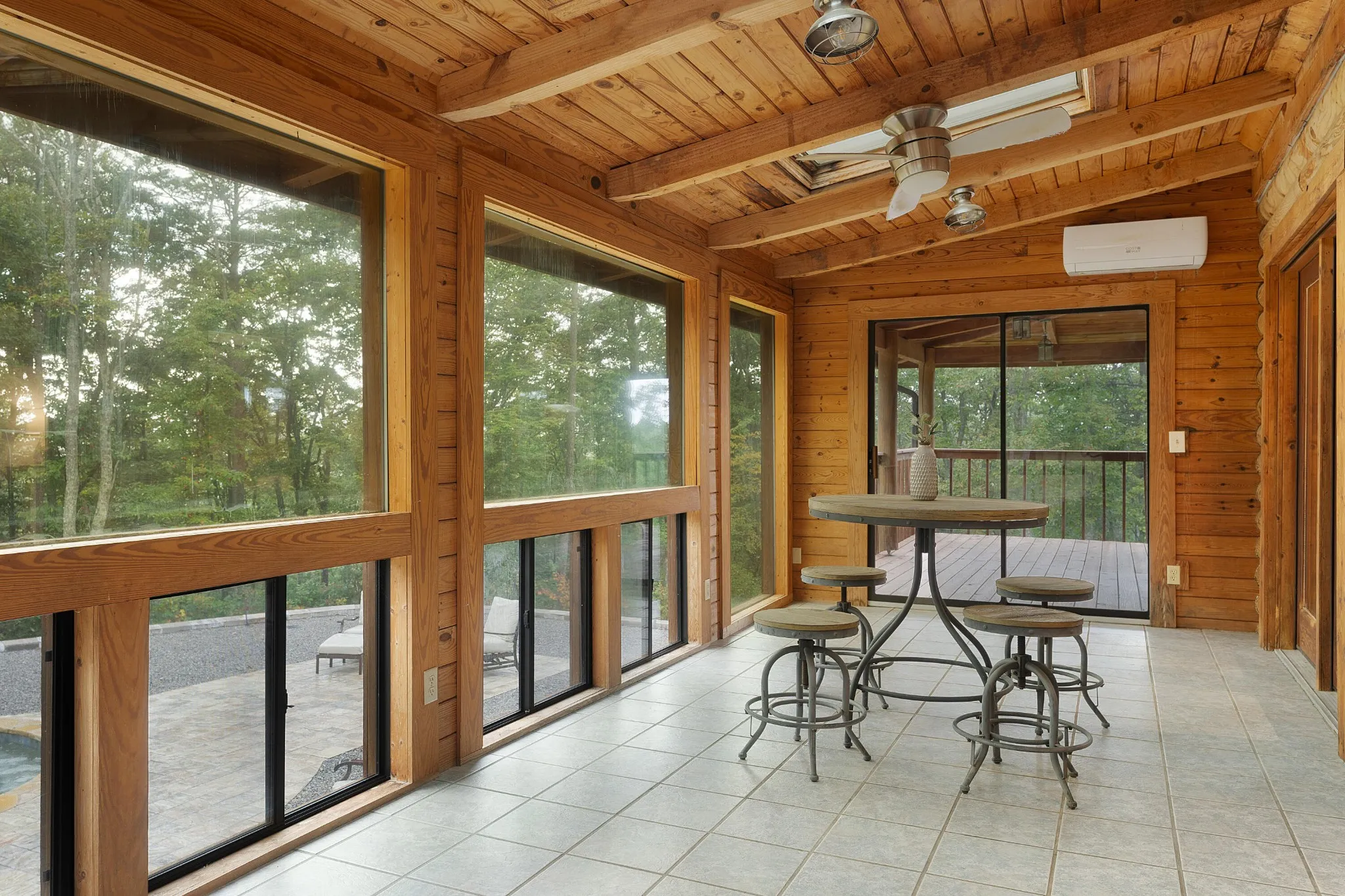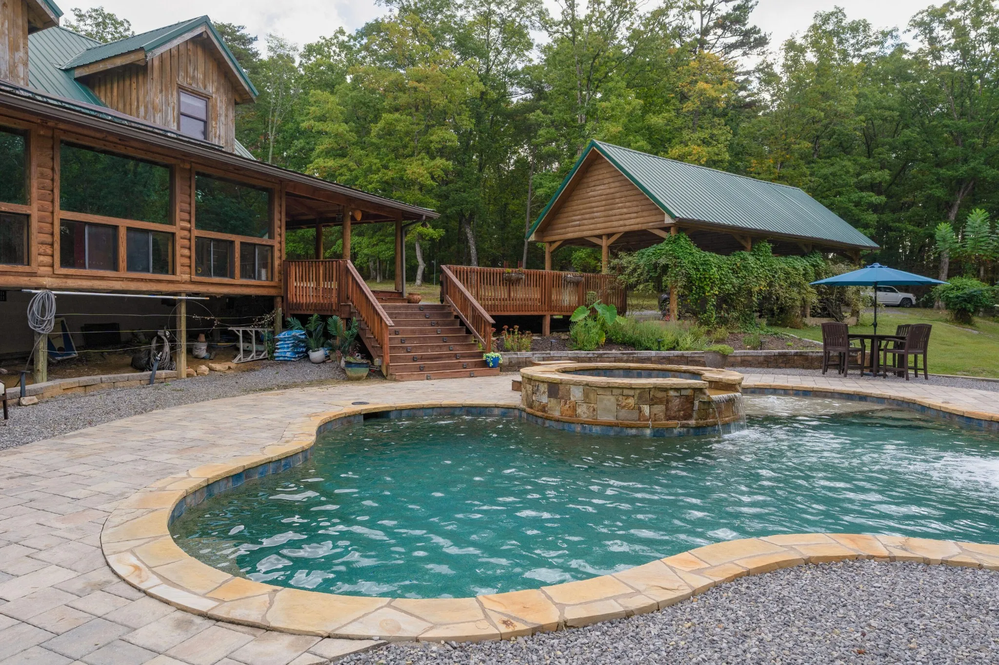 +"PublicRemarks": "Unique opportunity to own this private oasis only 20 minutes from downtown Chattanooga. Situated on 5.88 +/- acres on Suck Creek Mountain, this property features a custom built 3 bedroom, 2.5 bath modern cabin with a 3-car carport, a 400 +/- sf studio/guest house, and a detached workshop. The property boasts 2 koi ponds and a beautiful gunite, saltwater pool with spa, sun platform and waterfalls, further enhancing this serenity of this wooded mountain locale. The main house also has a wonderful wrap-around porch, essentially extending your living spaces and taking full advantage of the setting. Once inside, you will immediately appreciate the beautiful hardwoods and tile, vaulted and beamed ceilings, open floor plan, decorative lighting, primary on the main, wonderful natural lighting and perhaps most notably, the custom, hand-made staircase that is a work of art in itself. Your tour of the main level begins with the gourmet kitchen that has a center island, quartzite countertops, tile backsplash, soft close drawers, a pot filler, and stainless steel appliances, including a Viking gas range with full sized double ovens, a Viking hood, a Subzero refrigerator, an under-counter microwave and a Viking dishwasher. The kitchen is open to the dining room and the great room where you will find an area plumber for a wood-burning stove if desired, access to the powder room, and 3 sets of French doors to the sunroom. The sunroom overlooks the pool and will quickly become a favorite spot with its skylights and sliding glass doors to the porch on either end. The primary bedroom is also off the great room and has access to the side porch and barn doors to the primary bath and the walk-in closet with center island and organizer system. The primary bath has an elongated dual vanity, a free-standing tub, a separate shower with tile and glass surround, rain head and wand, and a door to the rear porch."