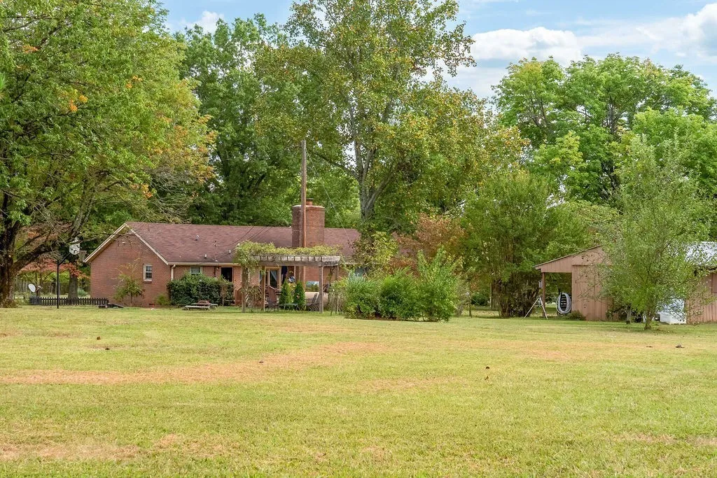Back on the Market due to Financing:This All Brick Ranch Style Home features 3.40 level acres with matured landscaping, property is fenced, sitting on a corner lot w/ security gates & camera’s. This Home is very elegant and features a Large open foyer, custom kitchen, formal living & dining area with fireplace. Custom Marble Tile Baths, Beautiful hardwoods & large windows, separate laundry room and super nice support bldgs, including a 24 x42 Shop Bldg, 2 carports, additional storage bldg and outdoor pavilon.