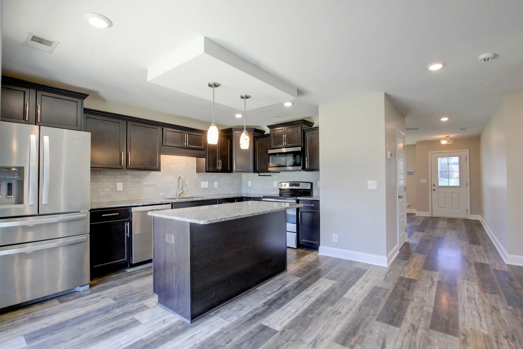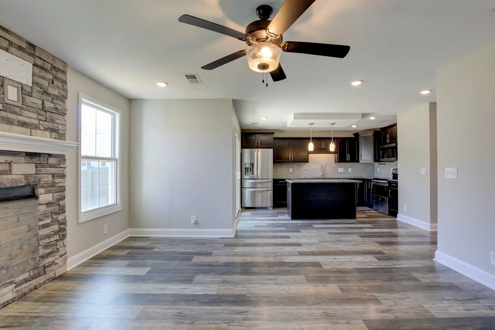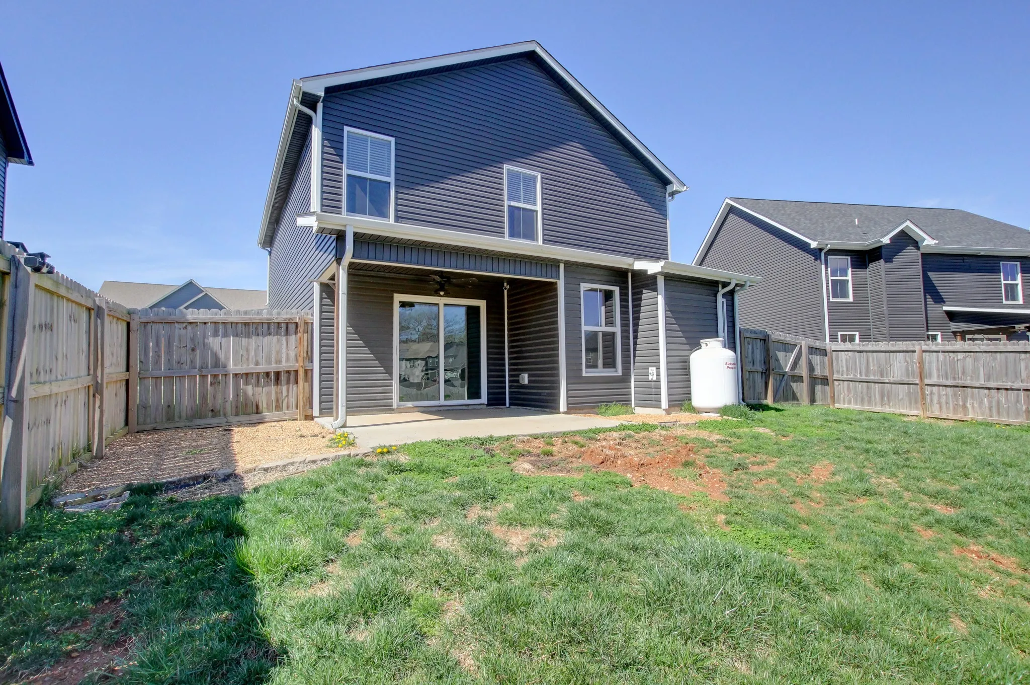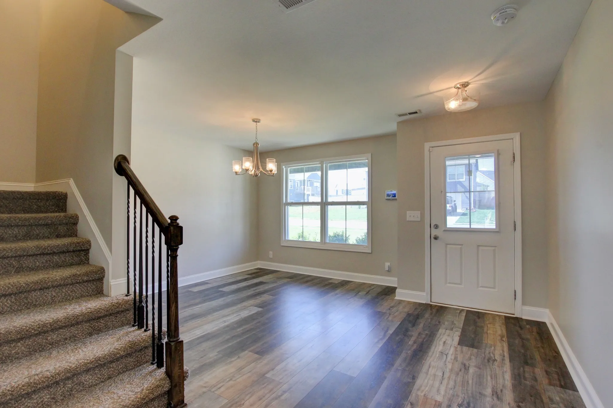 This inviting floorplan starts off with a covered entry way and a dining room/ flex room as you enter the home. The open kitchen with granite countertops and island combined with the living room, make for a great space to entertain guests or grab a quick snack without missing the best part of the movie. The oversized laundry room and half bathroom are also located on the main floor. The Owner’s suite located upstairs is large enough to handle a king size bed and all of your furniture and is complete with a spacious walk-in closet and bathroom with a HUGE walk-in shower. You will also find two, good sized secondary bedrooms and full bathroom. This beautiful home is definitely worth seeing.