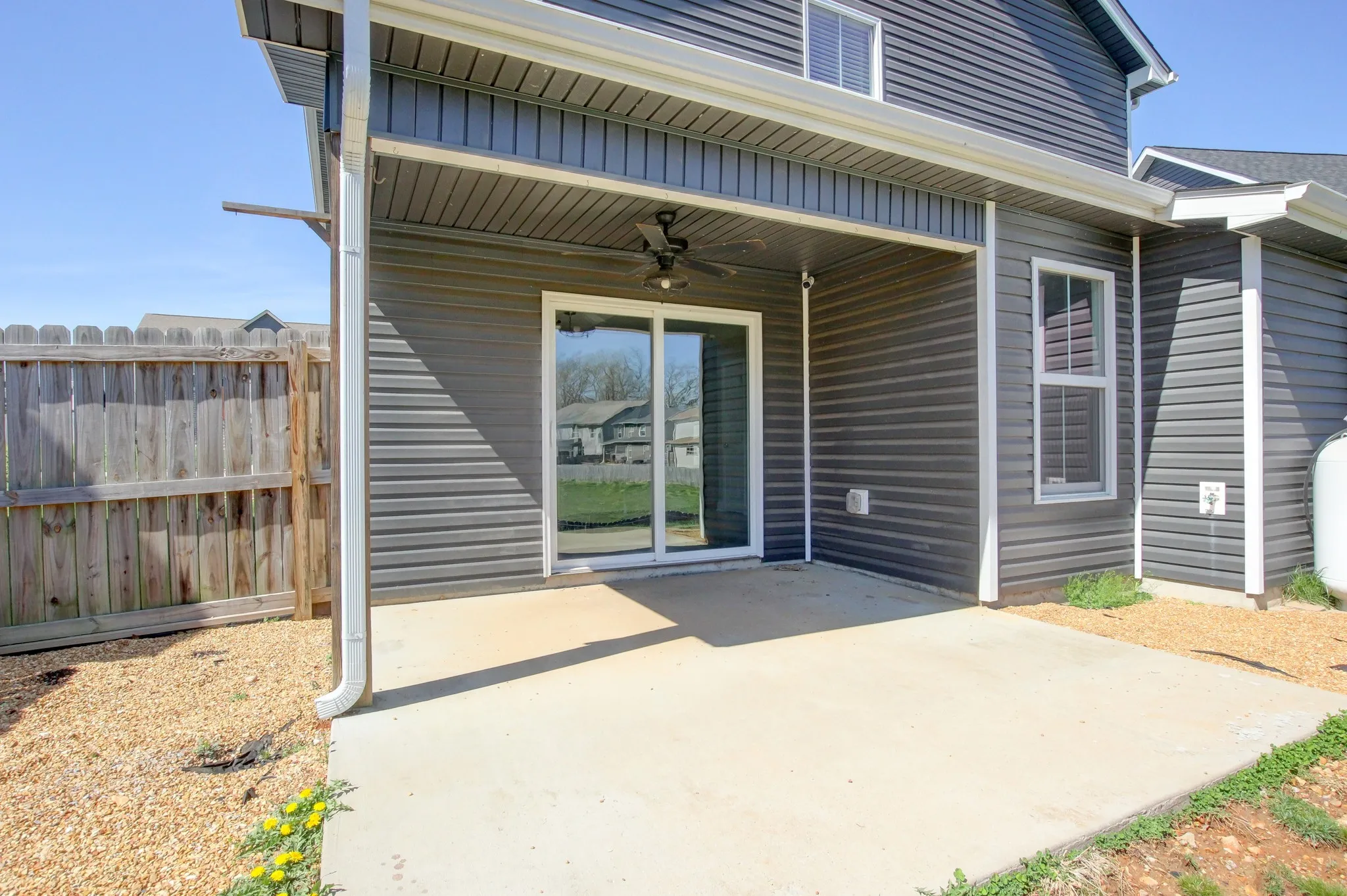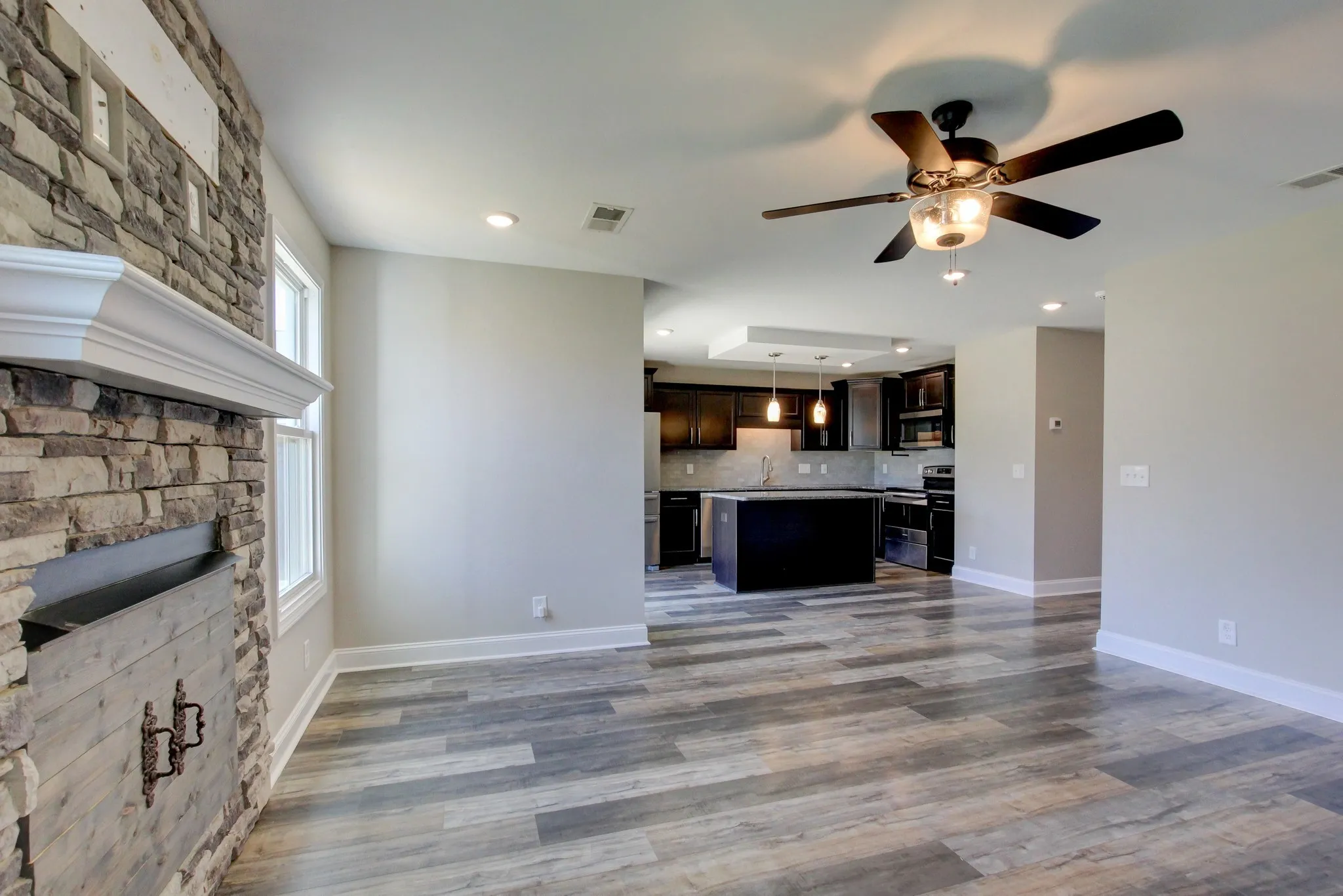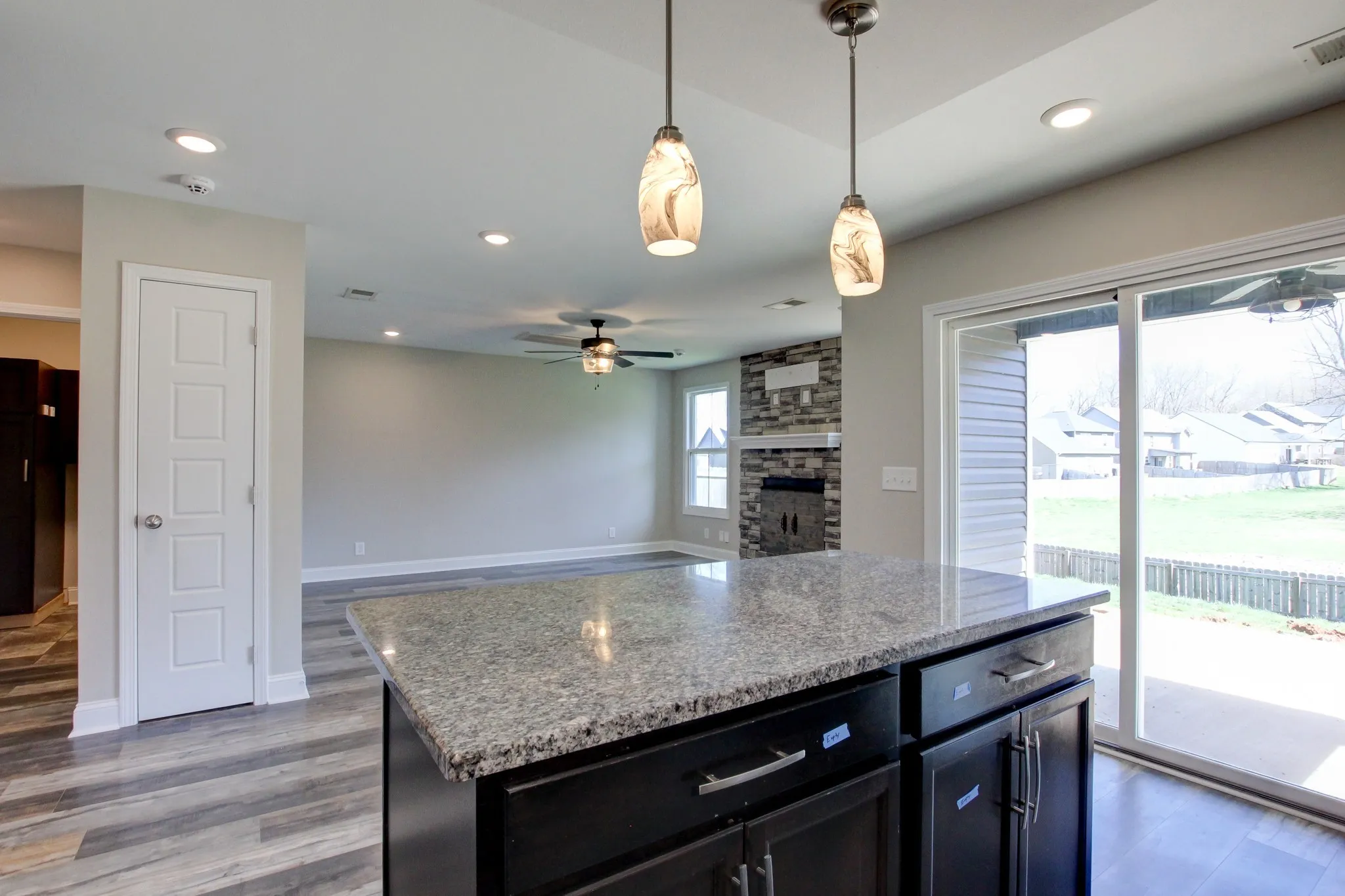 This inviting floorplan starts off with a covered entry way and a dining room/ flex room as you enter the home. The open kitchen with granite countertops and island combined with the living room, make for a great space to entertain guests or grab a quick snack without missing the best part of the movie. The oversized laundry room and half bathroom are also located on the main floor. The Owner’s suite located upstairs is large enough to handle a king size bed and all of your furniture and is complete with a spacious walk-in closet and bathroom with a HUGE walk-in shower. You will also find two, good sized secondary bedrooms and full bathroom. This beautiful home is definitely worth seeing.