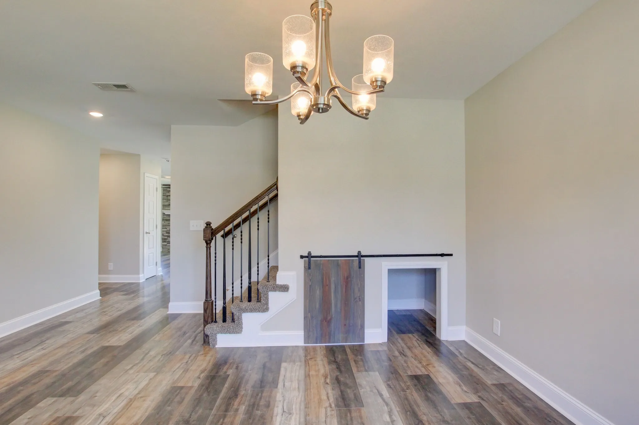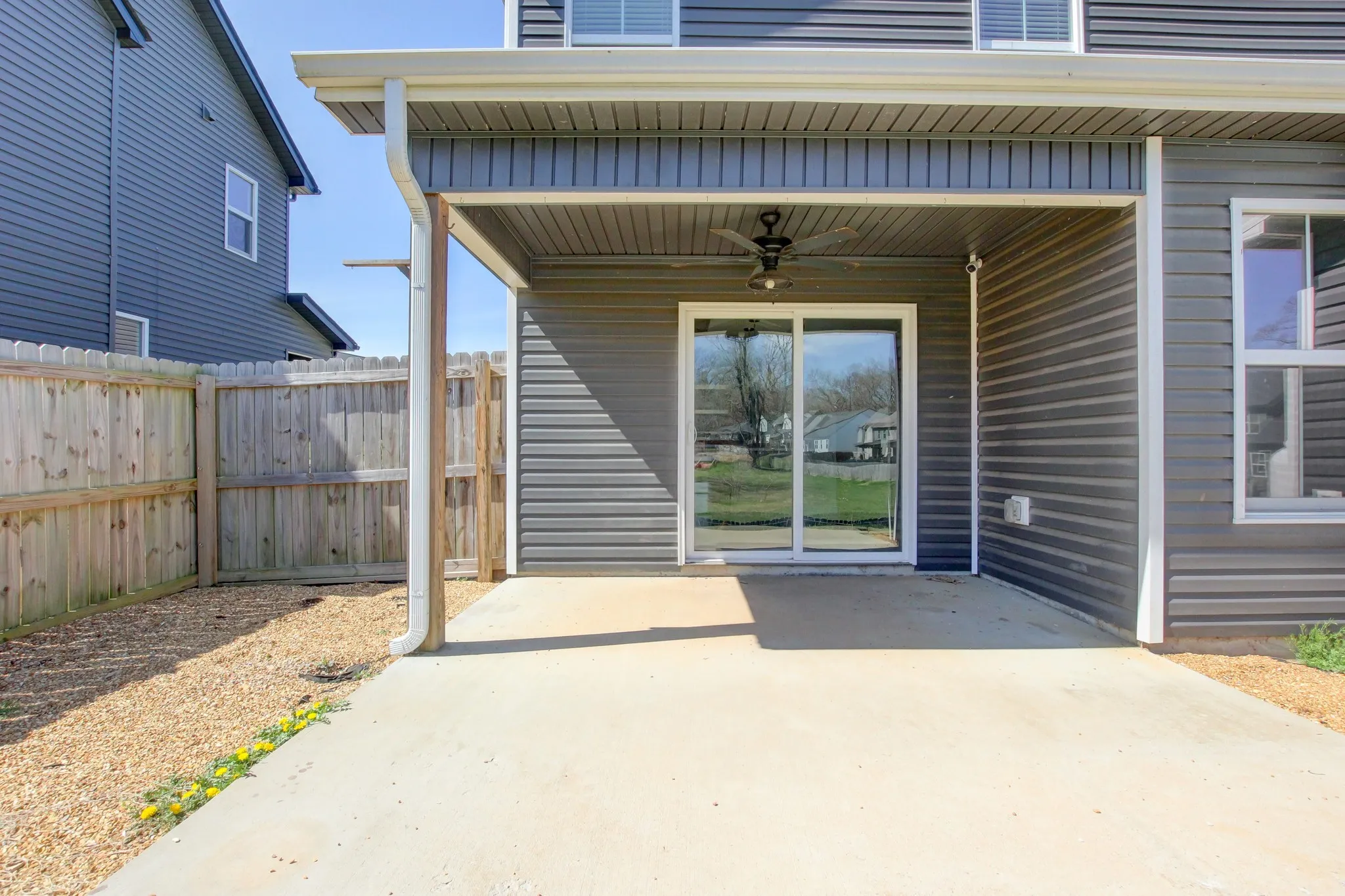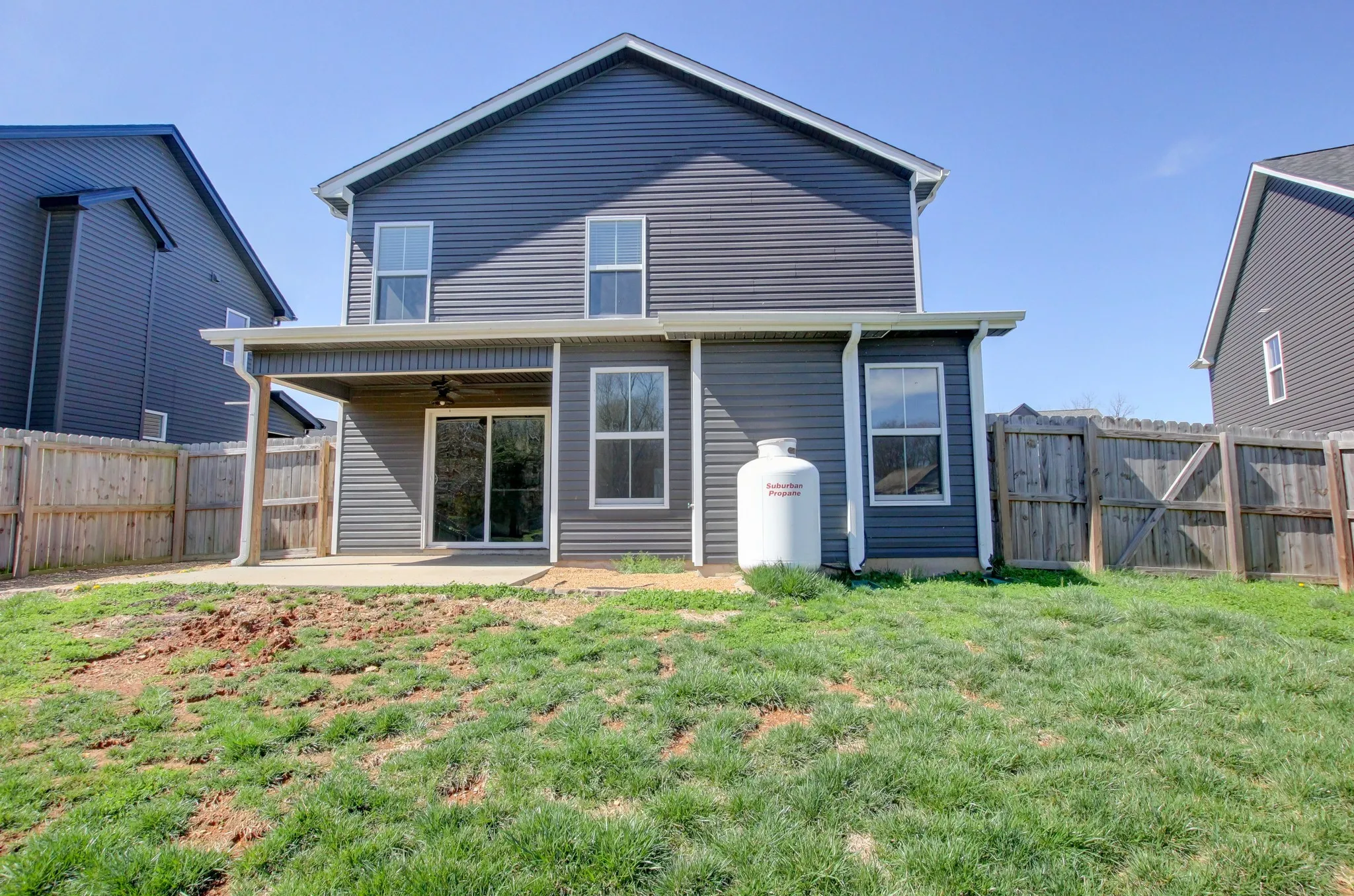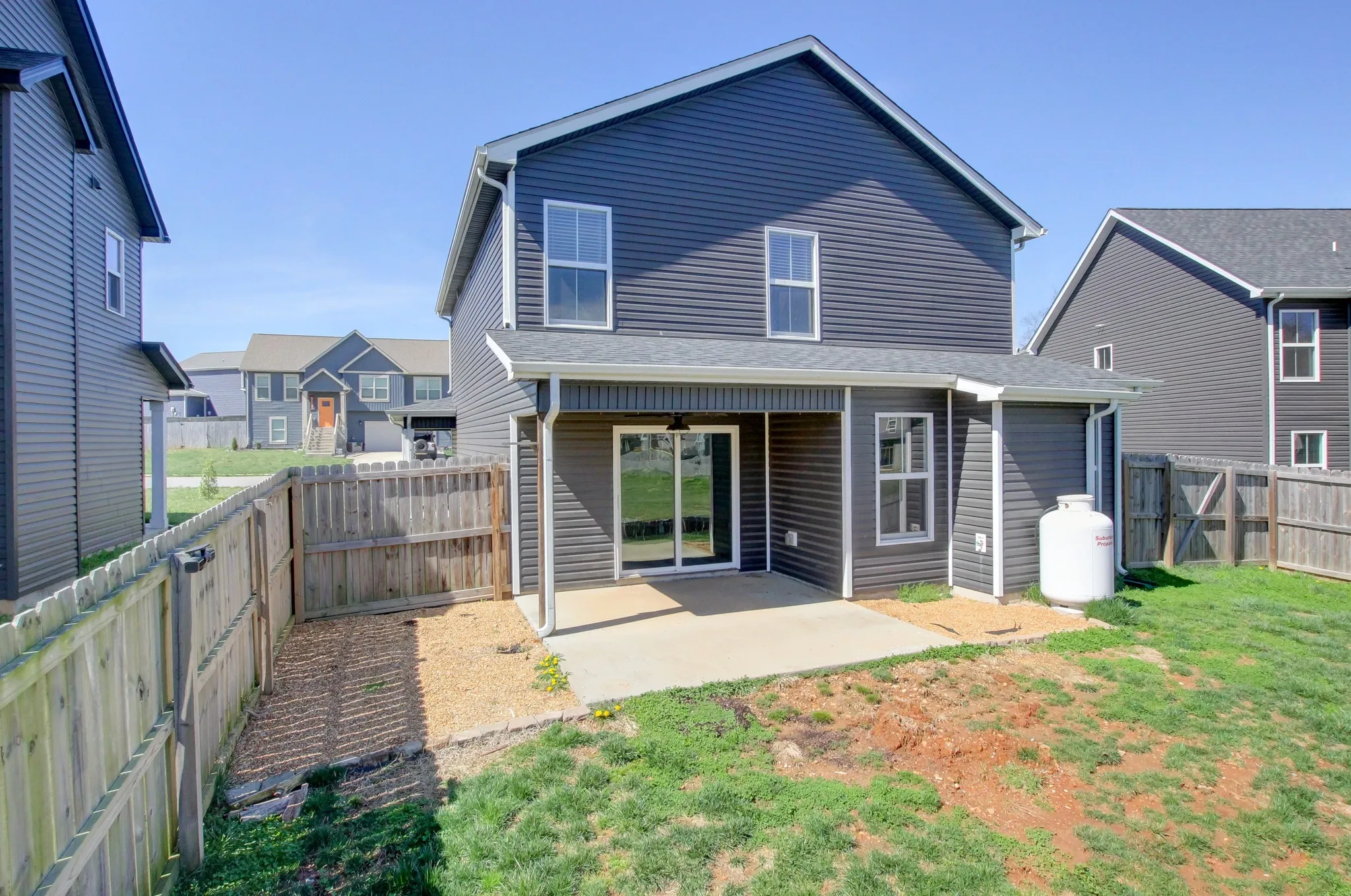This inviting floorplan starts off with a covered entry way and a dining room/ flex room as you enter the home. The open kitchen with granite countertops and island combined with the living room, make for a great space to entertain guests or grab a quick snack without missing the best part of the movie. The oversized laundry room and half bathroom are also located on the main floor. The Owner’s suite located upstairs is large enough to handle a king size bed and all of your furniture and is complete with a spacious walk-in closet and bathroom with a HUGE walk-in shower. You will also find two, good sized secondary bedrooms and full bathroom. This beautiful home is definitely worth seeing.