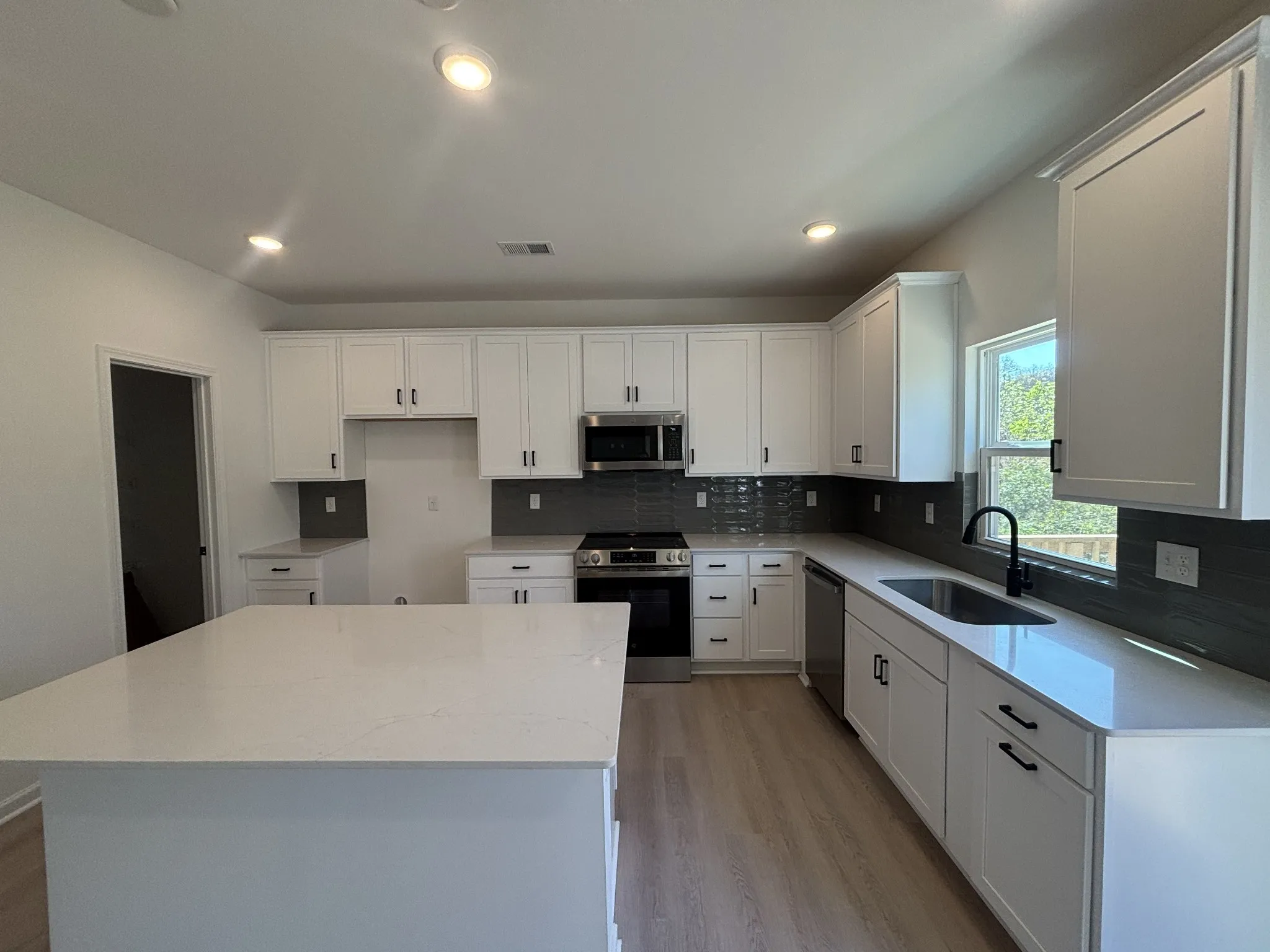 The Tipton plan blends comfort, style, and function, offering everything today’s homeowners are looking for. The main floor features an open layout with a bright family room, dining area, and kitchen finished with quartz countertops, upgraded cabinetry, and stainless steel appliances. A set of glass double doors opens to a private office—perfect for working from home.
