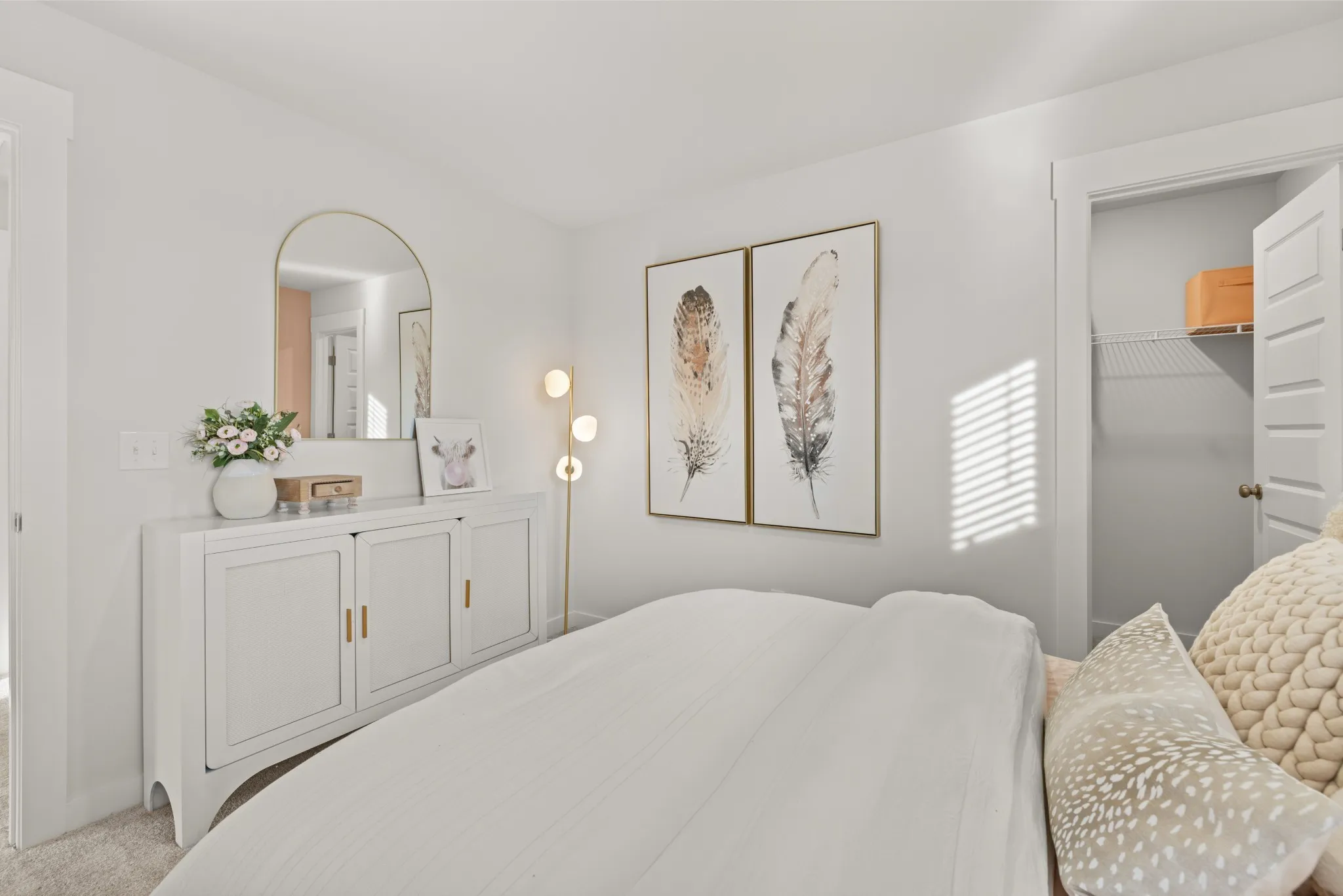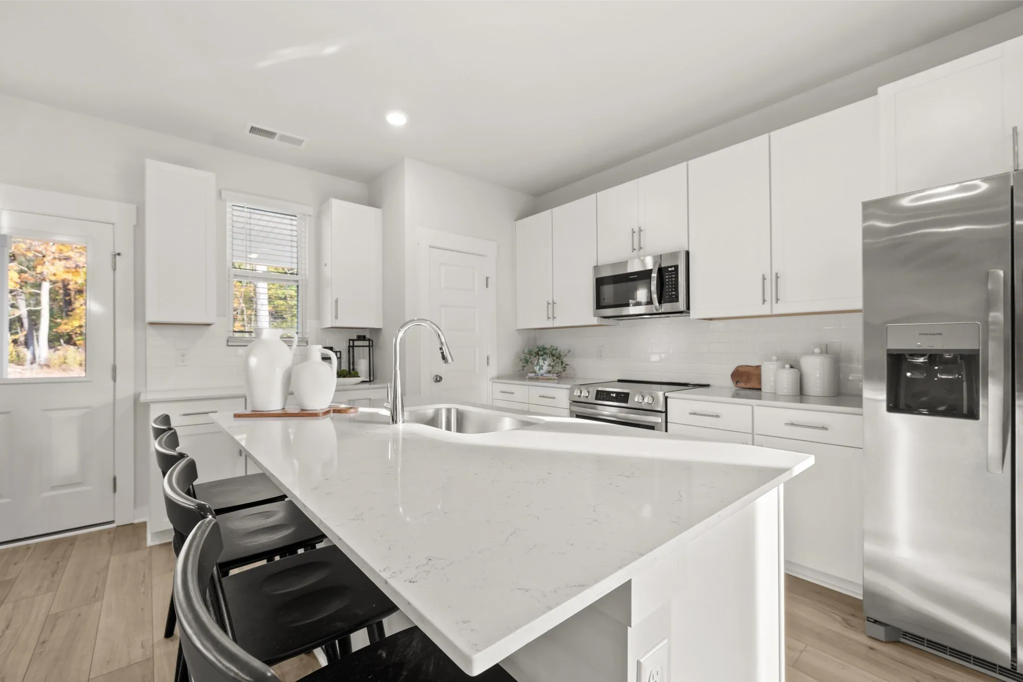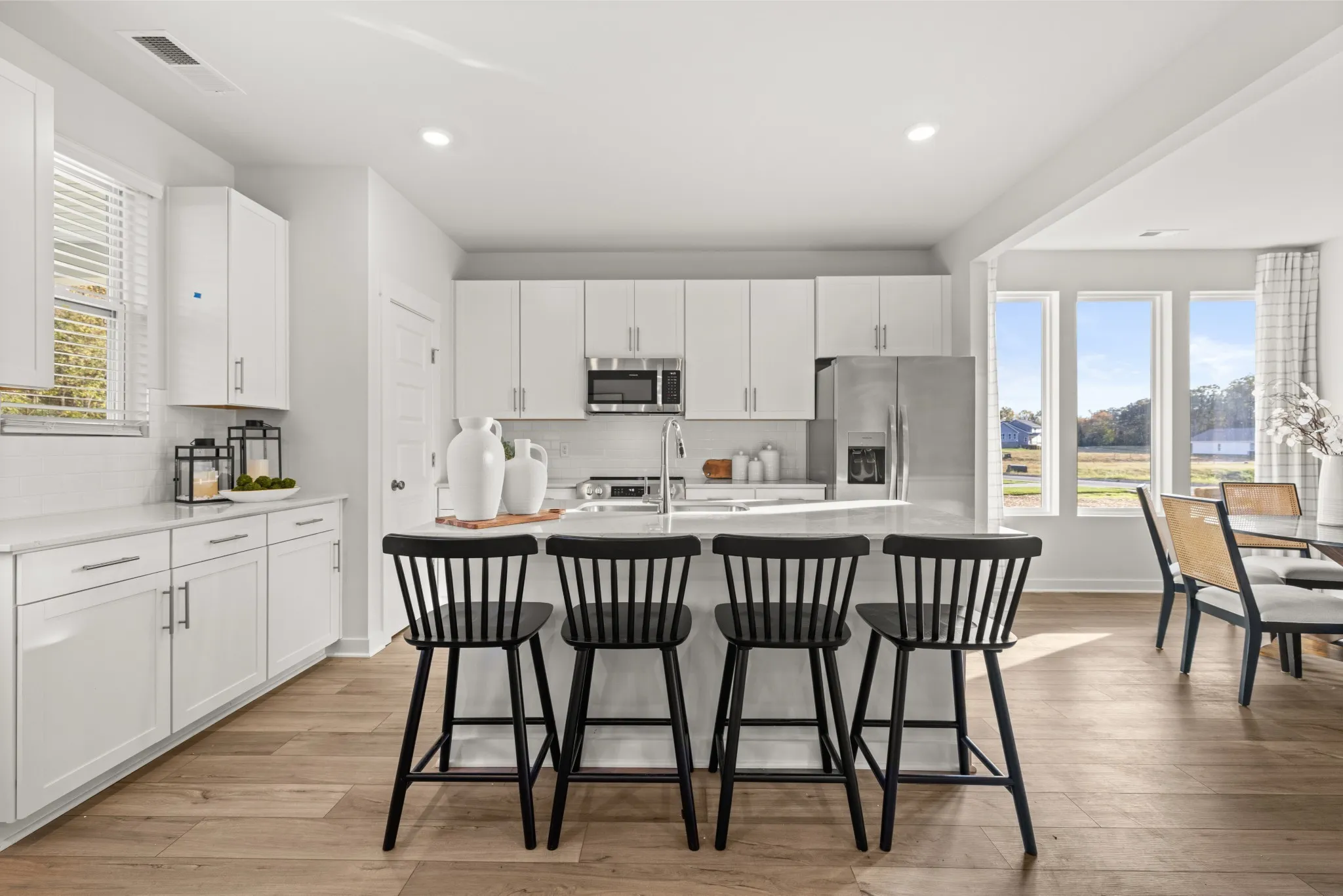 LOT #75 – Mayflower. The heart of this two-story home is the open family room, kitchen and dining room on the first level. The first floor is also host to a convenient office and a bedroom perfect for overnight guests. Upstairs, three more bedrooms and a loft offer extra living space on the second floor. *Images from a furnished model of this home. Actual configuration and features may vary.