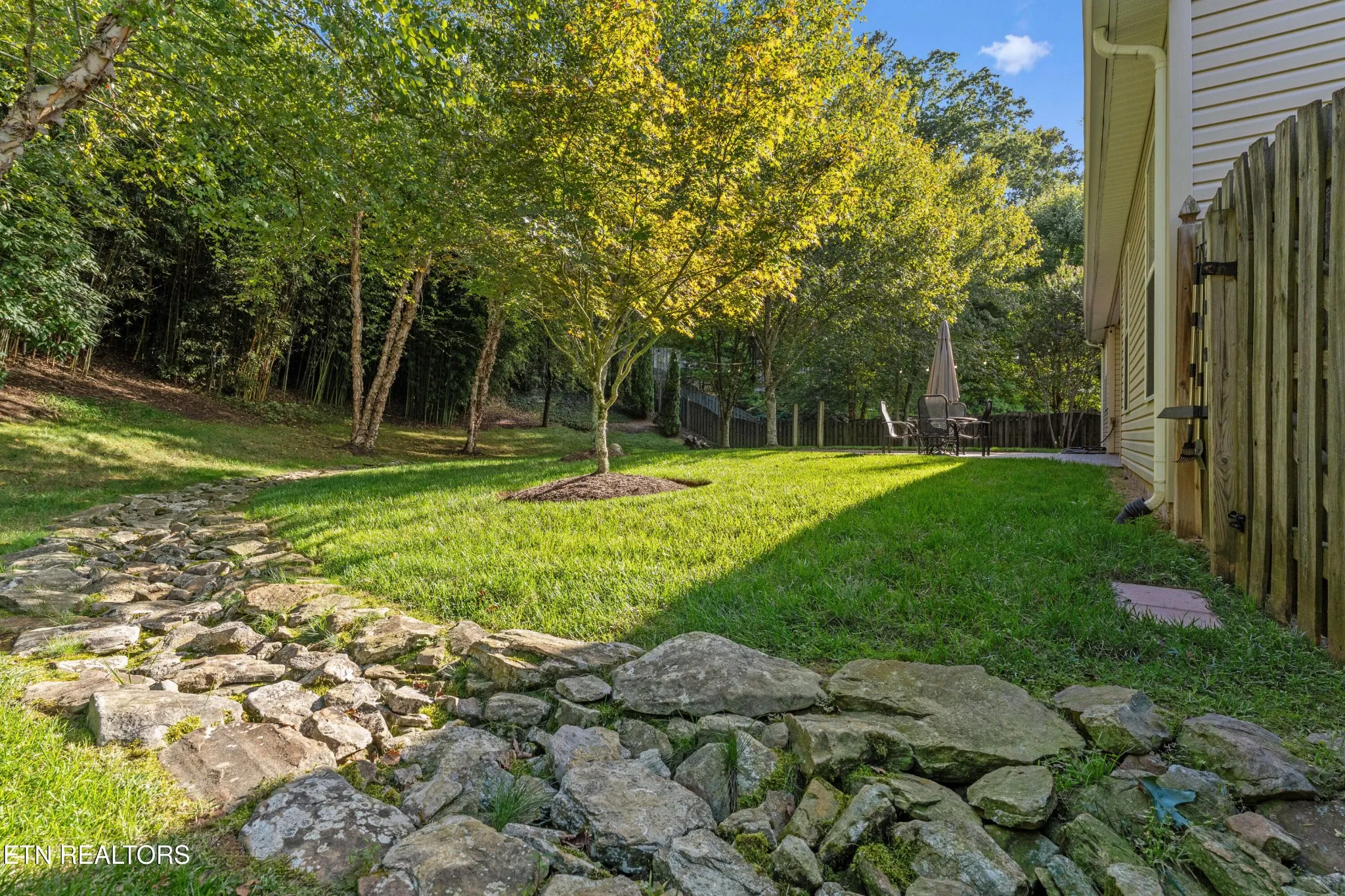 Step outside to a private retreat: a fenced and landscaped backyard on over half an acre, featuring a patio ideal for grilling, entertaining, or simply relaxing. The yard is beautifully finished yet still offers room for customization to fit your lifestyle.