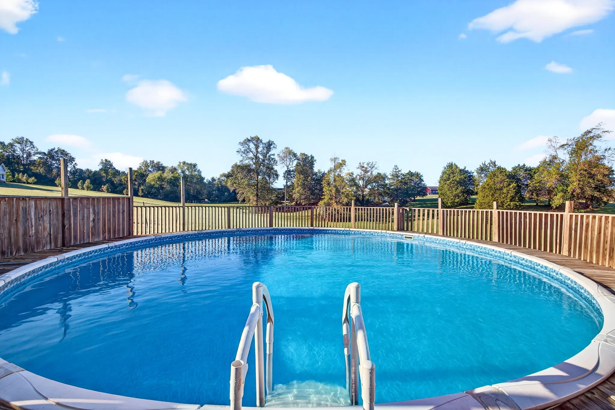 Enjoy summers at home with the above-ground swimming pool and deck, creating a private retreat for relaxation and gatherings.