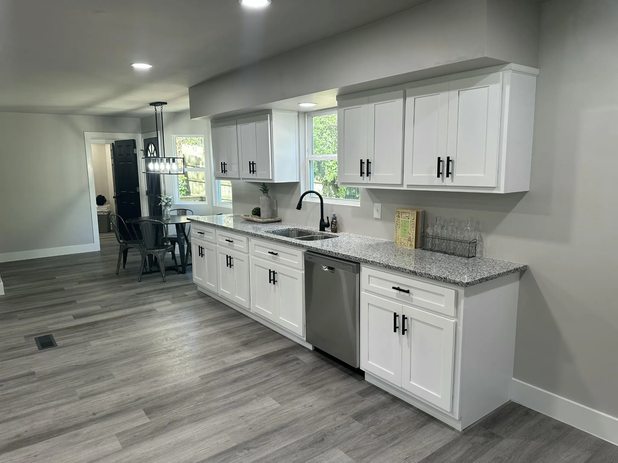 The renovation includes brand-new luxury vinyl plank flooring and plush carpet throughout, paired with fresh paint and stylish finishes that create a warm and inviting atmosphere. The completely updated kitchen is a standout, boasting granite countertops, custom soft-close cabinets, and all-new stainless steel appliances that are ready for everyday use or entertaining.