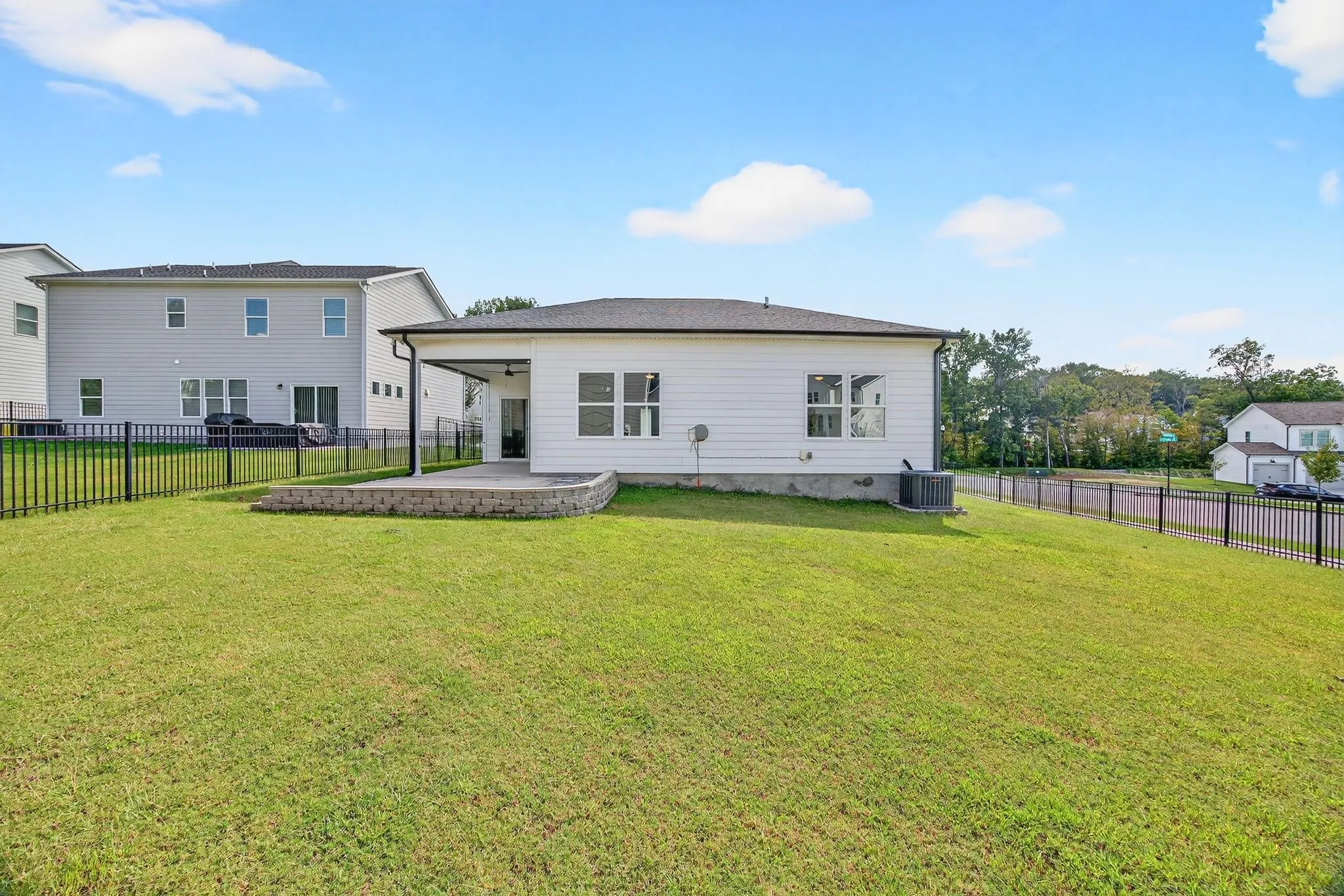 Single-level living with no steps & on one of the largest level lots in the neighborhood! This move-in-ready home has contemporary finishes, an open concept, and an abundance of natural light. Split layout offers plenty of separation & space between the tucked-away primary bedroom and additional bedrooms. Kitchen features quartz countertops, stainless steel appliances, and a spacious pantry. Dedicated office provides the perfect space for remote work or study. Luxury vinyl plank flooring, plush carpeting, and oversized tile adorn the home! Outdoor living at its finest – covered back patio with retractable privacy shades, paved patio extension for BBQ or fire pit, and a fully-fenced-in yard. Nestled in the most convenient location near I-24, shopping, dining, and minutes to Nolensville, Brentwood, and Downtown Nashville. This home is A MUST SEE! *Transferrable 10-2-1 Warranty with Patterson Homes + a 2.65% Assumable VA Loan*