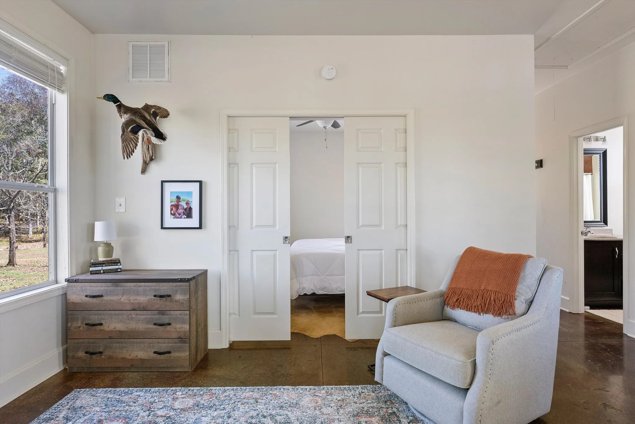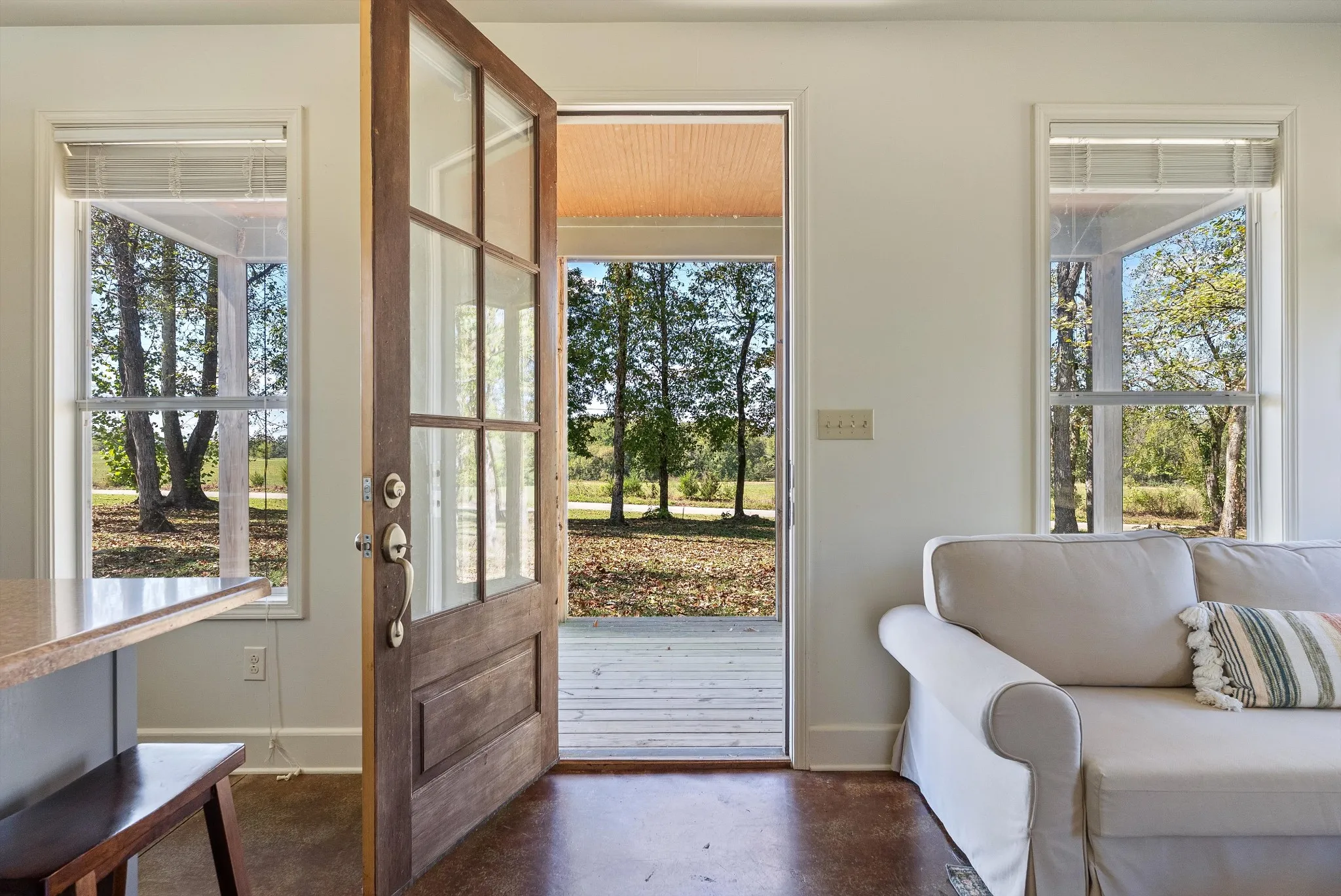 Longing for a cabin near the water? This beautiful LRK-designed home near the Tennessee River Martins Landing Rd boat ramp is ideal for someone who loves the outdoors. The layout is inviting and compact with pocket doors separating the bedroom from the living area, ample cabinetry, and built-in linen shelves and pantry all on one level! Own a home nearby? This would be an ideal guest house. Thinking of using it seasonally and want the ability to rent in between uses? You can! The home comes furnished, making move-in a breeze. Need additional beds? The couch is a convertible bed!