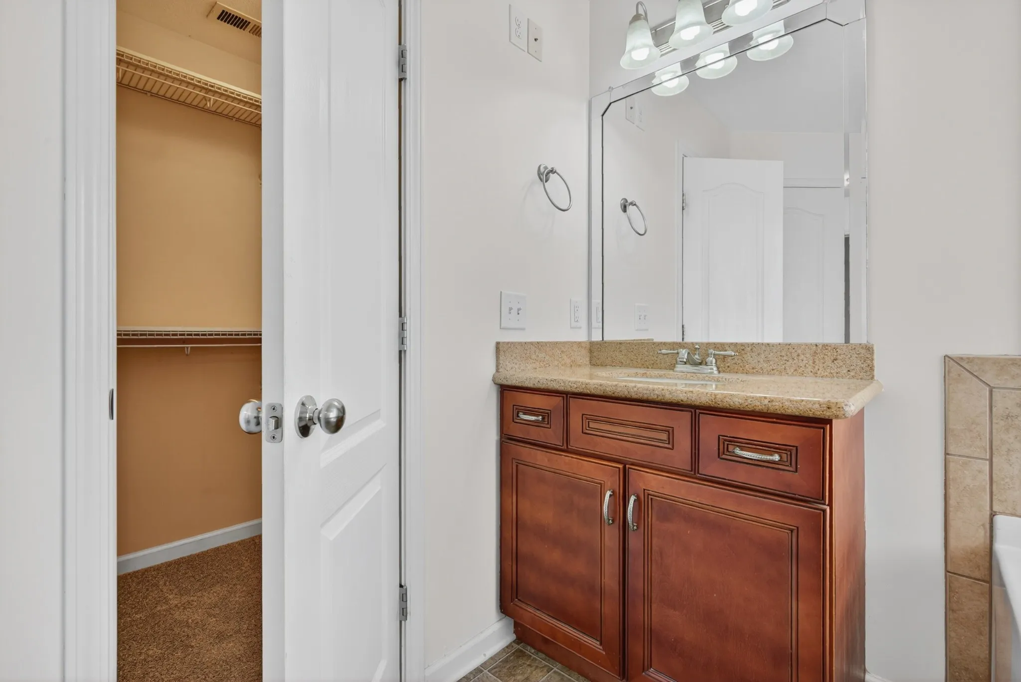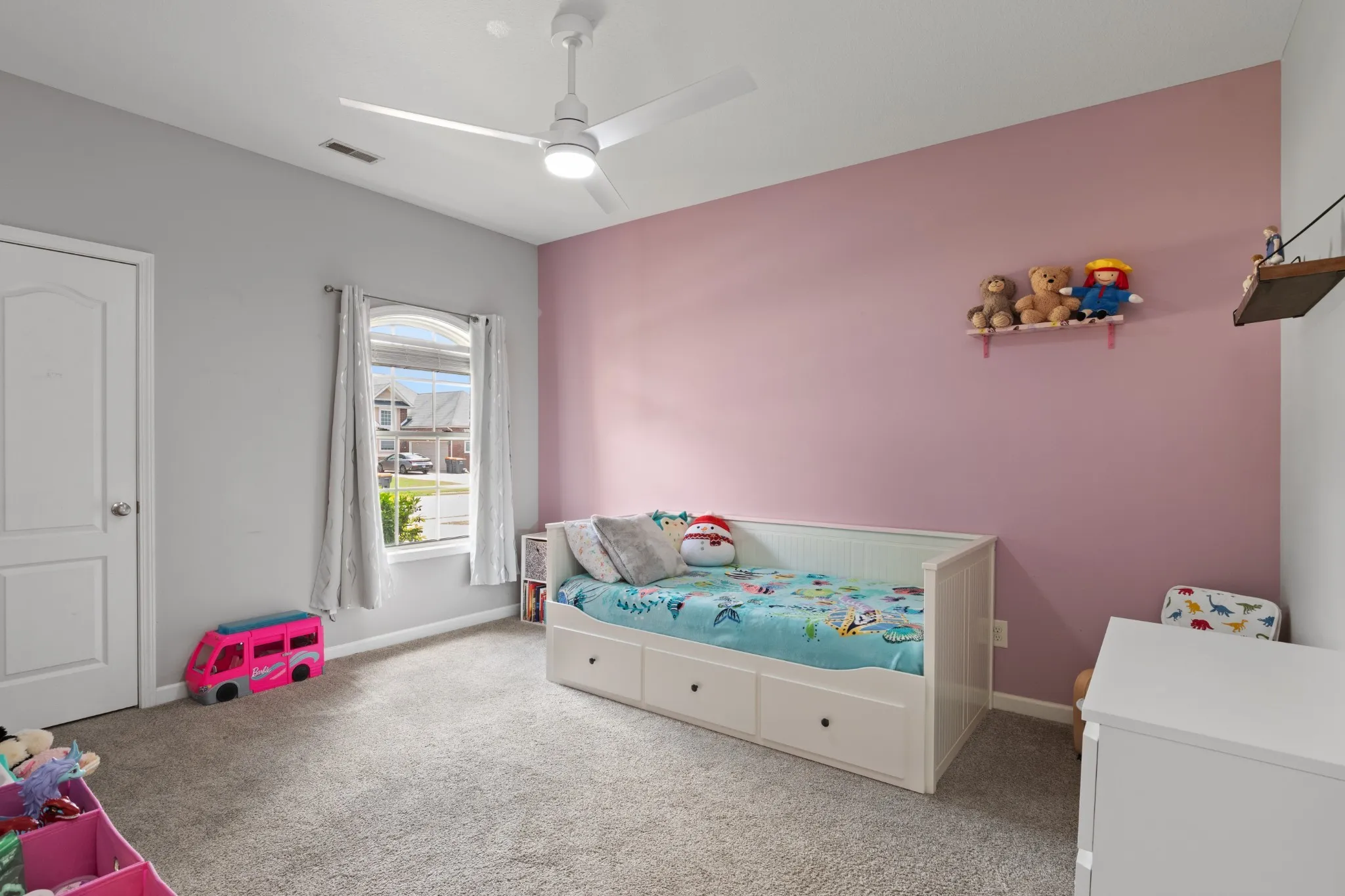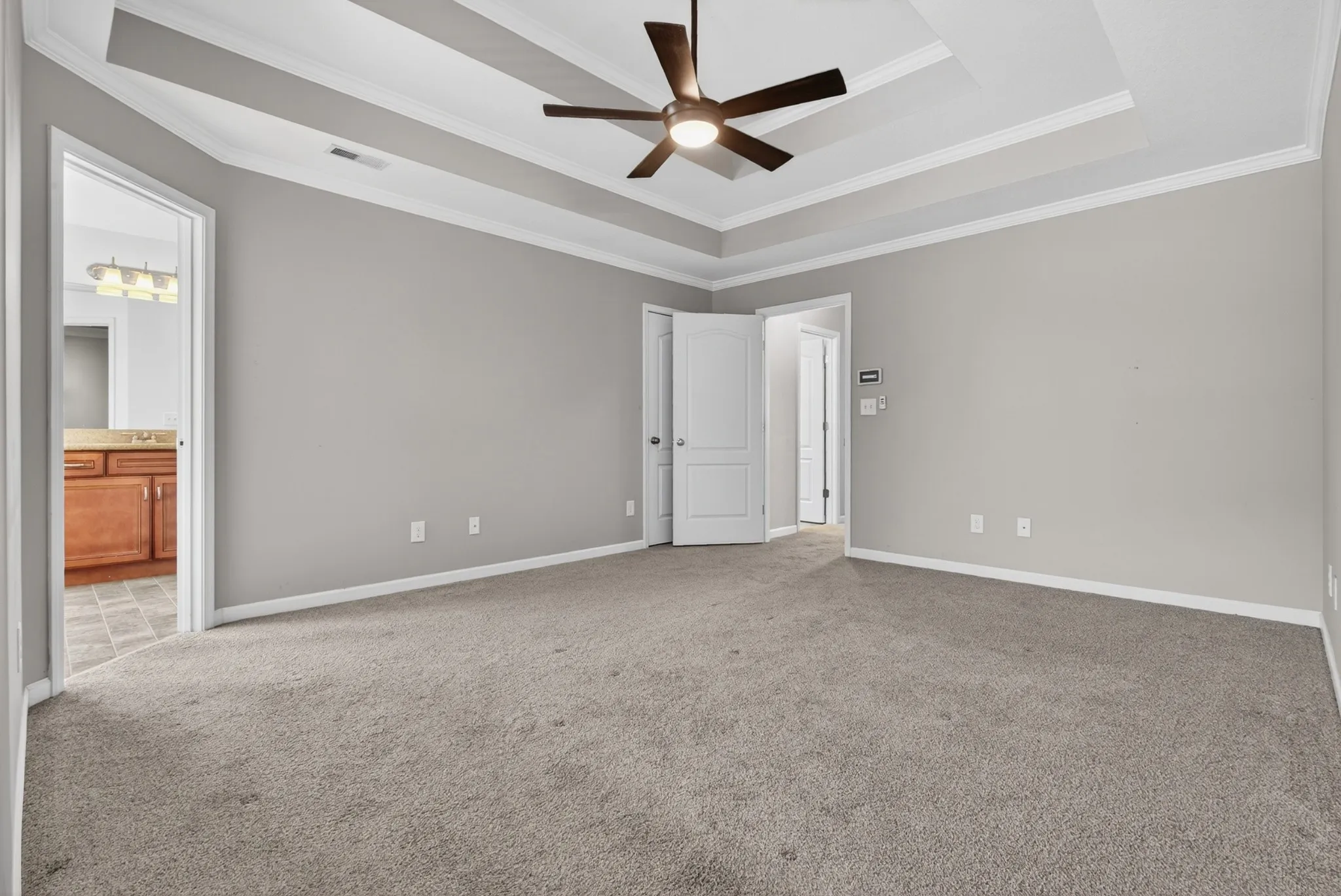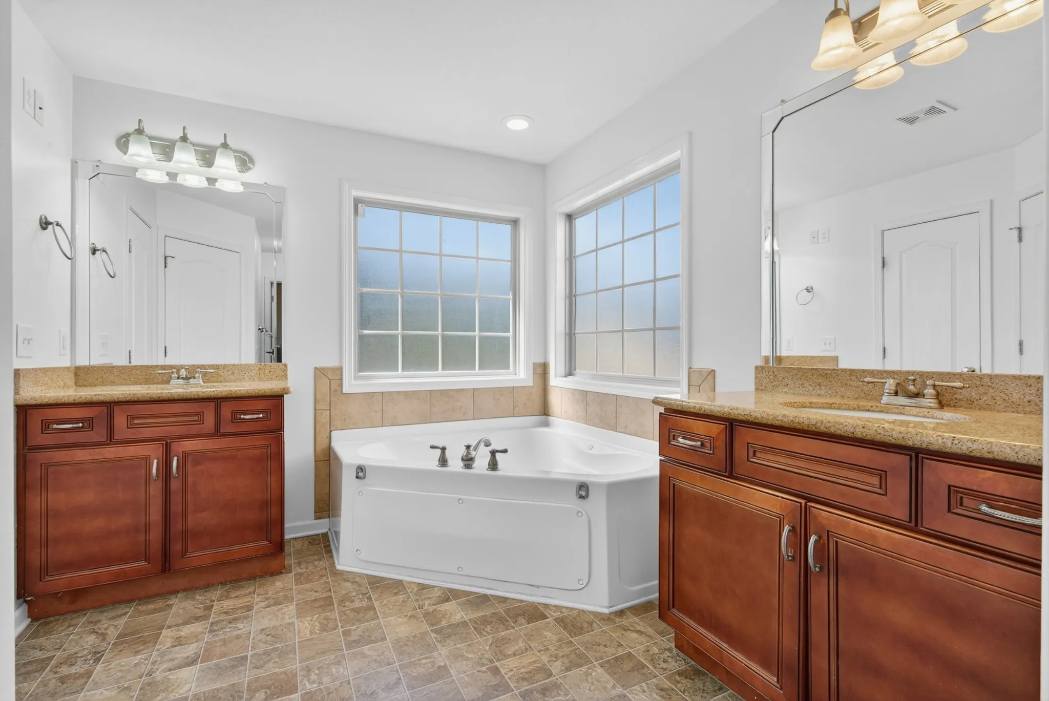 This 3-bed, 2.5-bath home features a spacious bonus room with door, half bath, and closet—ideal for a 4th bedroom, guest suite, or office. The primary suite includes dual closets, vanities, jetted tub, and separate shower.