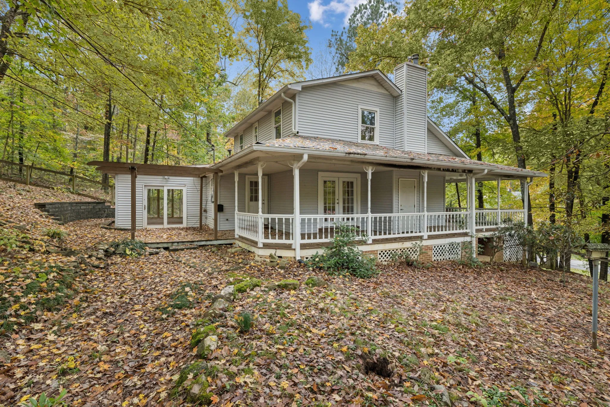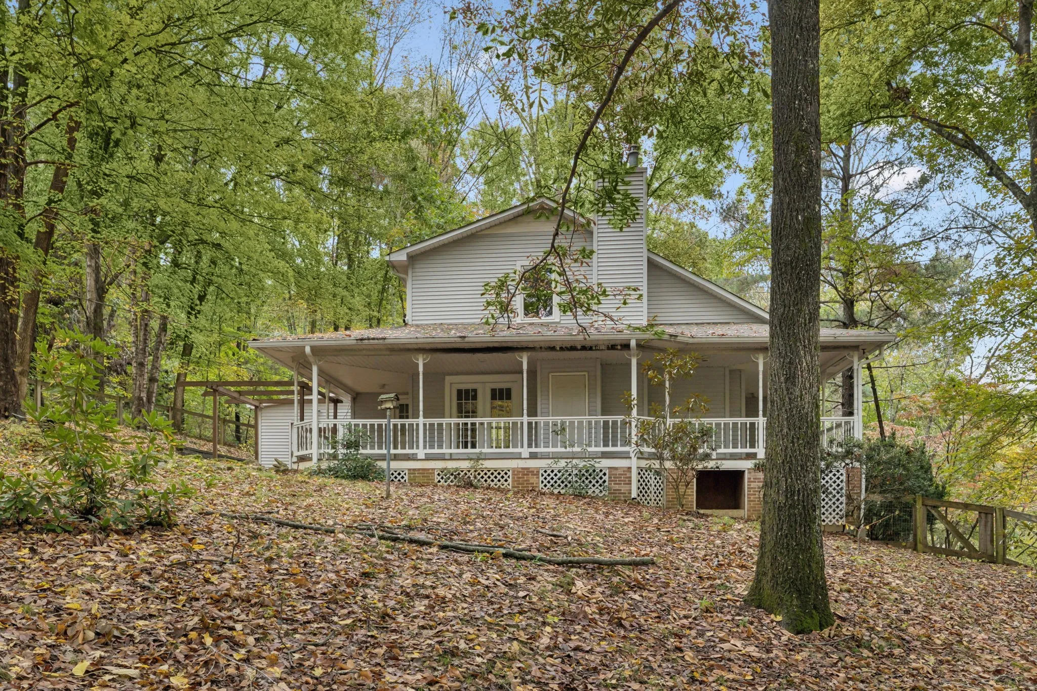 Nestled in one of Dickson’s most desirable and peaceful neighborhoods, this unique home offers privacy and charm on an elevated corner lot bordered by a wooded area. Surrounded by tall, slender trees that evoke a mountain chalet feel, the property provides a sense of serenity and seclusion while still being close to town conveniences. The main level features an open floor plan with an abundance of windows and a beautiful wrap-around porch accessible from the dining area and kitchen. The spacious master suite—twice the size of most—includes a beautifully tiled walk-in shower and a new stacked washer and dryer, with full-size hookups also available in the basement. Off the kitchen, a light-filled sunroom provides the perfect gathering space for family, games, or quiet relaxation. Upstairs, two private bedrooms each feature double closets and built-in bookshelves, sharing a full bath between them. Outside, the asphalt drive leads to a generous parking area and a one-car garage with additional basement entry. The basement also includes a windowless, climate-controlled room ideal for a music or art studio, home office, or creative retreat, plus a wash tub perfect for pets or projects. The low-maintenance yard is enclosed by a subtle wood-and-wire fence that preserves both openness and privacy, accented by native landscaping. A gazebo frame near the porch offers the perfect spot for a swing or outdoor dining. Sadly, the current owner, who purchased the home in early 2025 intending it to be her forever retreat, must relocate due to health reasons and hopes to pass it along to someone who will cherish its peaceful, tree-lined setting as much as she has.