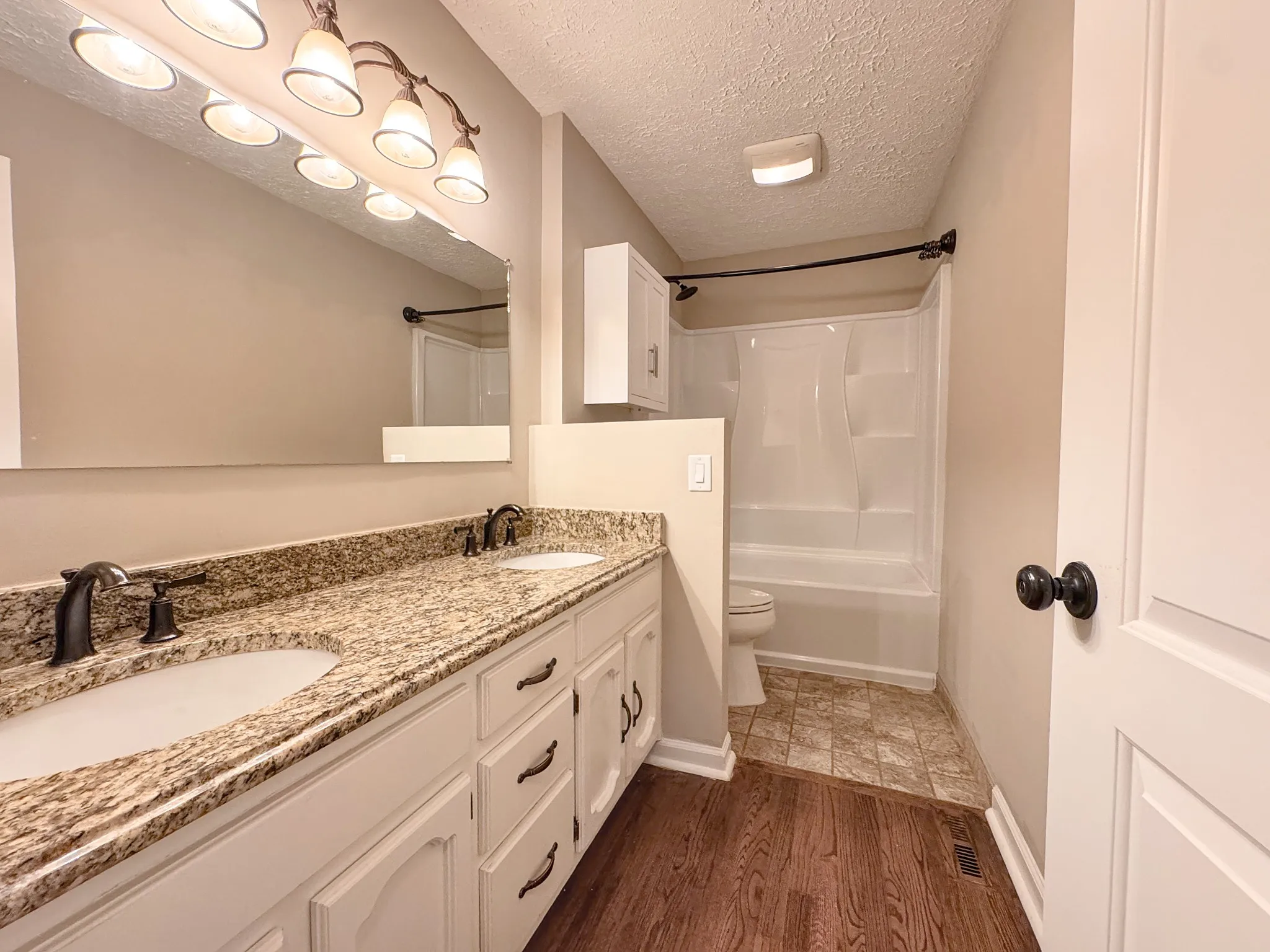 The kitchen is designed for both style and function, featuring granite countertops, stainless steel appliances, and a gas stove and oven—a chef’s dream for everyday cooking or entertaining.
