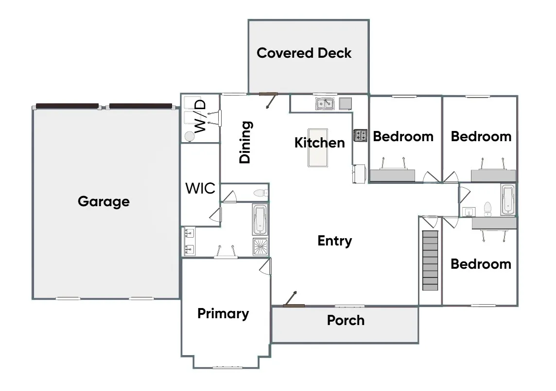 Inside, the open floor plan flows seamlessly through the spacious entry, kitchen, and dining areas-perfect for entertaining or everyday living. With 4 bedrooms and 2 full baths, this home offers plenty of space! The large primary suite is a true retreat, featuring a huge walk-in closet conveniently located off the private bathroom. Enjoy the luxury of a gas range and on-demand hot water with a tankless water heater!