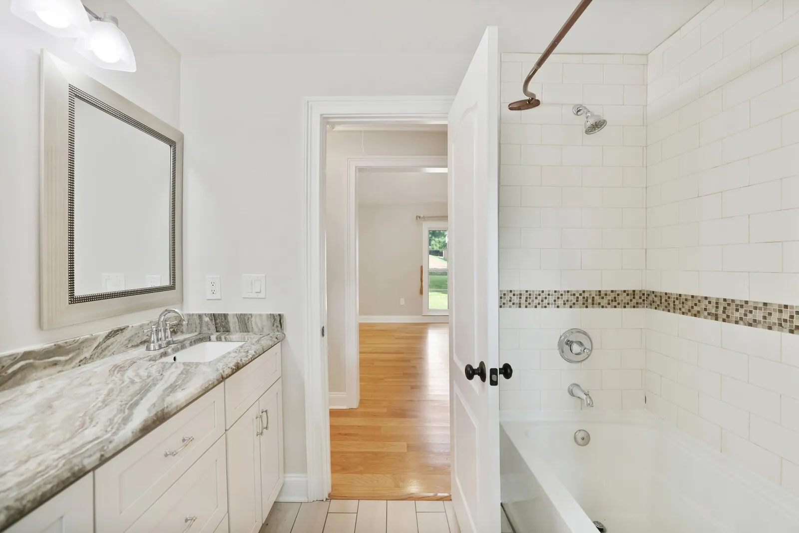 Welcome to this beautifully renovated 1940 ranch-style home nestled in the sought-after West Meade neighborhood. Set back from the street on a generously sized lot, this home offers both privacy and charm with its covered front porch, mature landscaping, and a warm, welcoming presence. Step inside to discover a grand open floor plan designed for effortless flow and comfortable living. The spacious living areas are complemented by gleaming hardwood floors, fresh paint throughout, and modern updates that enhance the home’s timeless character. The kitchen is a standout, featuring stainless steel appliances, rich cabinetry, and a large island with bartop seating, perfect for gathering and entertaining. A sunny eat-in dining area invites you to enjoy relaxing or entertaining. The primary bedroom is a true retreat, offering ample space and a beautifully appointed en-suite bathroom complete with split dual vanities, a soaking tub, and a separate shower. Additional bedrooms are generously sized and thoughtfully designed for comfort and functionality. One of the home’s most versatile features is the in-law suite, which has its own private entrance, making it ideal for guests, extended family, or even rental potential. The suite includes tile floors, plush carpeting, a full kitchen with dark wood cabinets and stainless steel appliances, and plenty of space for relaxing or entertaining. The home also includes a covered carport. With its combination of classic architecture, thoughtful renovations, and flexible living spaces, this home offers an exceptional opportunity in one of Nashville’s most desirable neighborhoods. Flood insurance required.