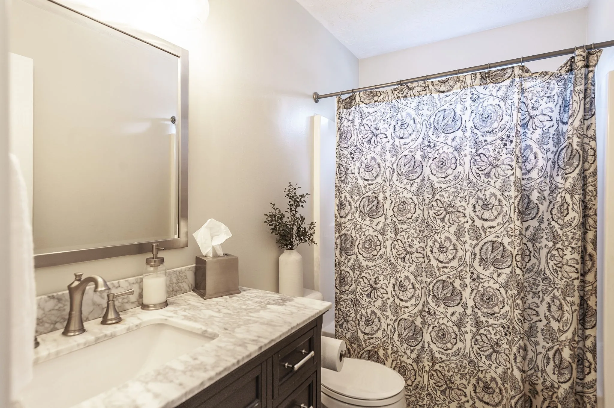 The home features hardwood floors throughout the downstairs and brand-new carpet (2025) upstairs for a fresh, comfortable feel. The updated bathrooms provide a clean, modern touch, complementing the overall design of the home.