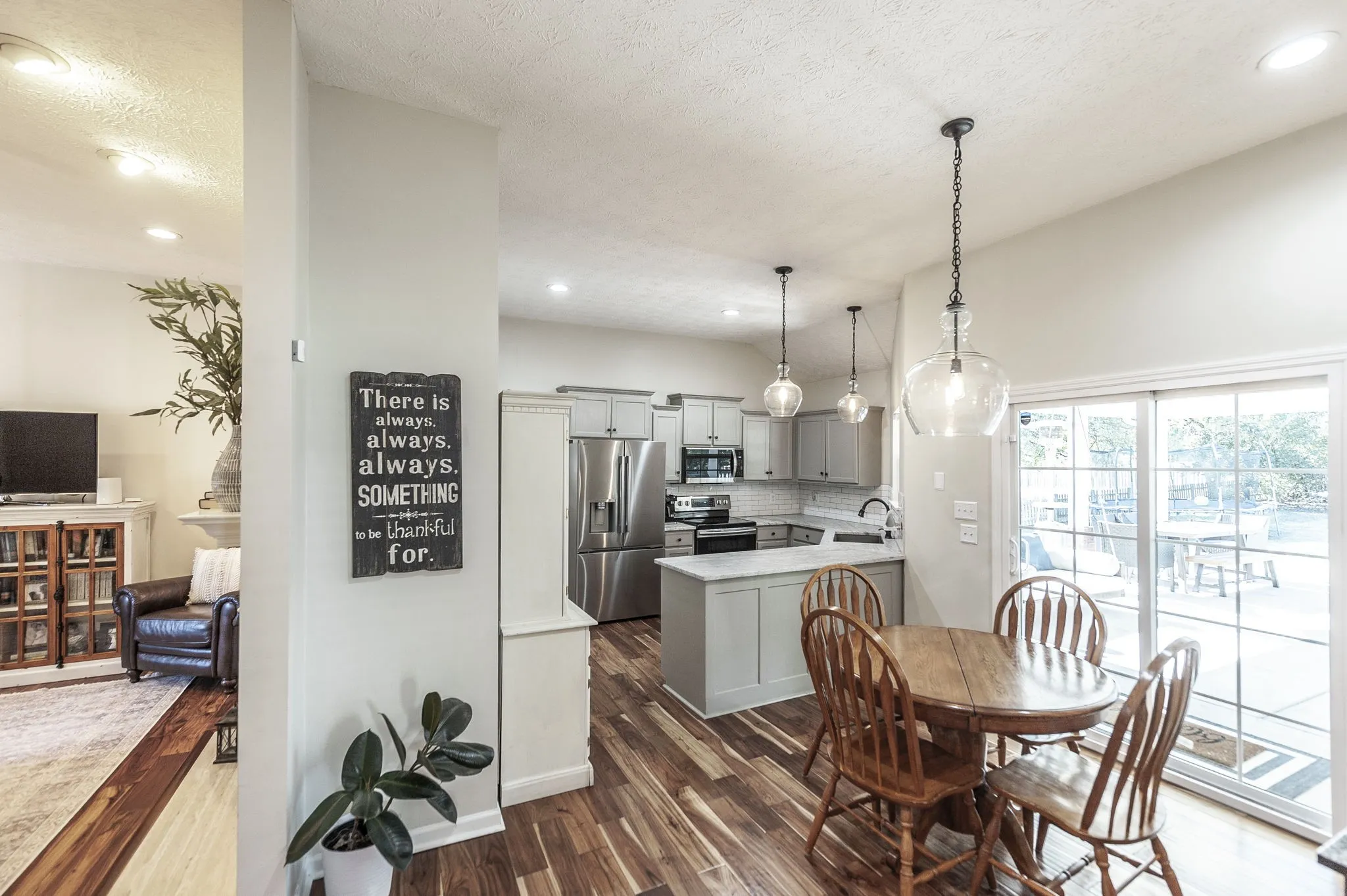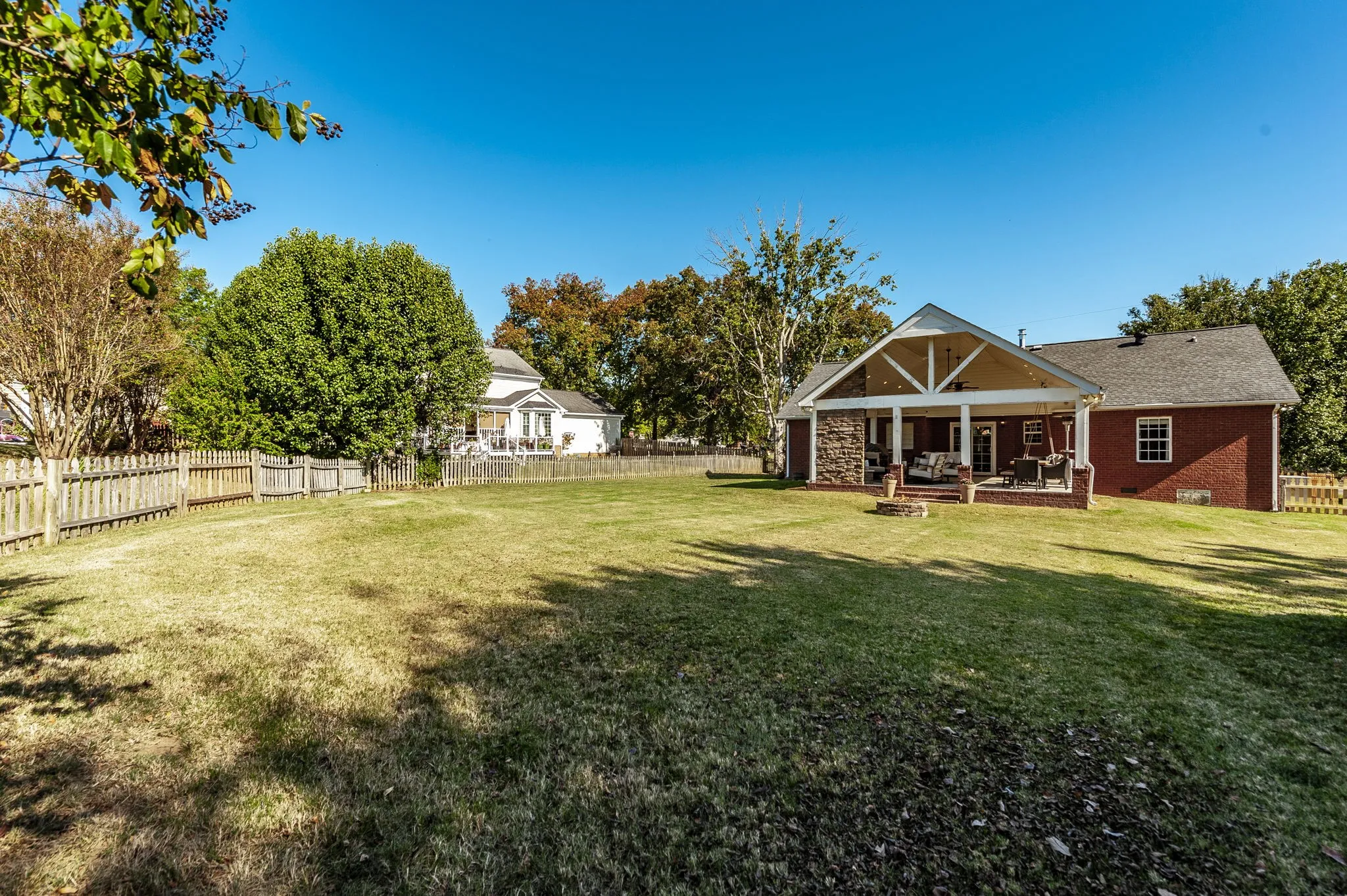 The spacious backyard is perfect for entertaining, featuring a large covered patio complete with a cozy gas fireplace—ideal for year-round enjoyment. Inside, you’ll find an updated kitchen showcasing stunning leathered quartzite countertops and modern finishes that make both cooking and entertaining a delight.