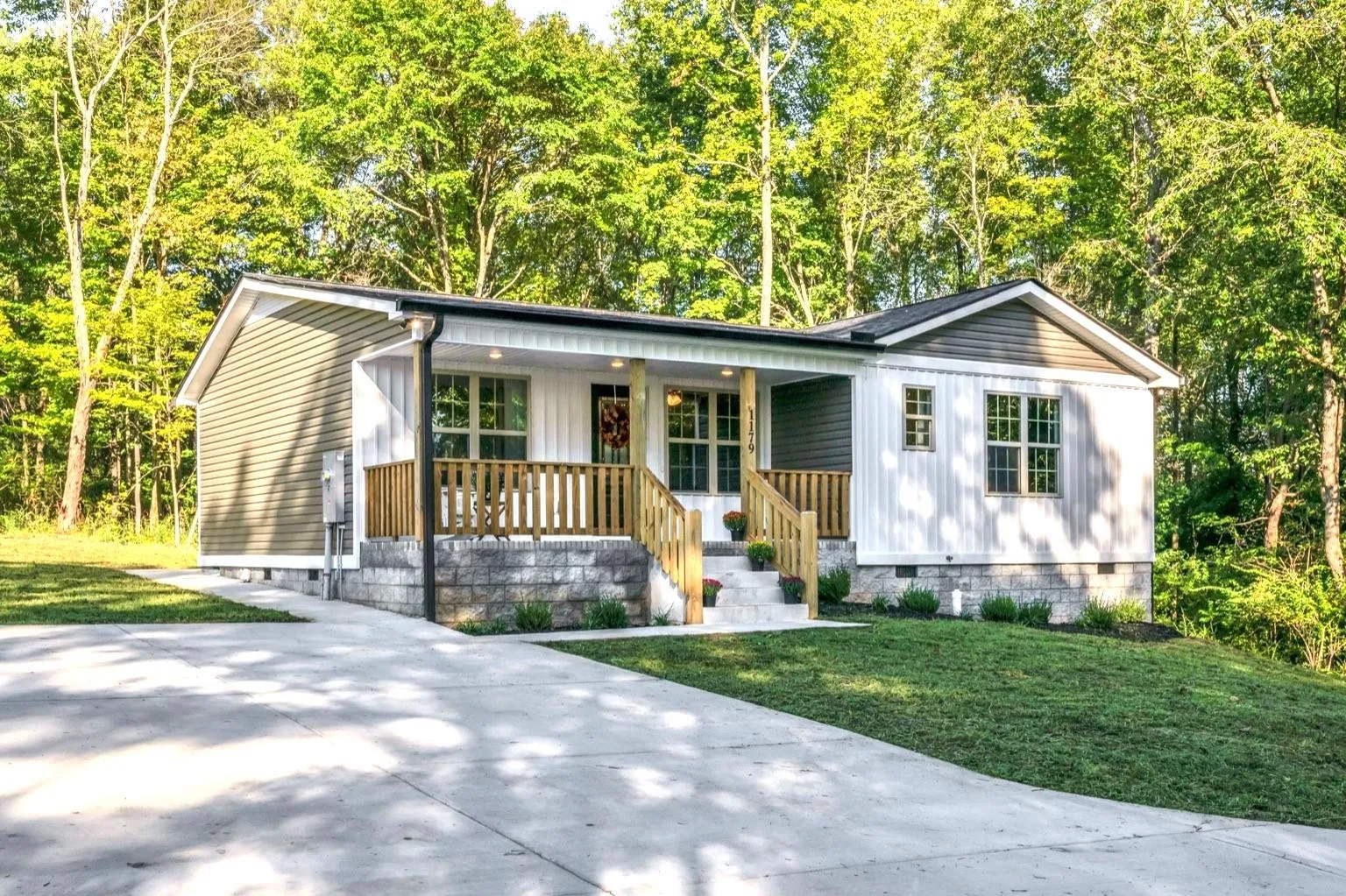 Stunning new construction offering 3 bedrooms and 2 bathrooms with a spacious open floor plan. This home features a welcoming front porch with wood accents and a bright interior filled with natural light. Designed with modern finishes, neutral colors, and energy efficient windows, it provides both style and functionality. The exterior includes low maintenance siding, a wide driveway, and professional landscaping that adds to the curb appeal. Situated on a private lot with mature trees, this new build combines peaceful living with convenient access to shopping, dining, and schools. Accepting Back Up Offers