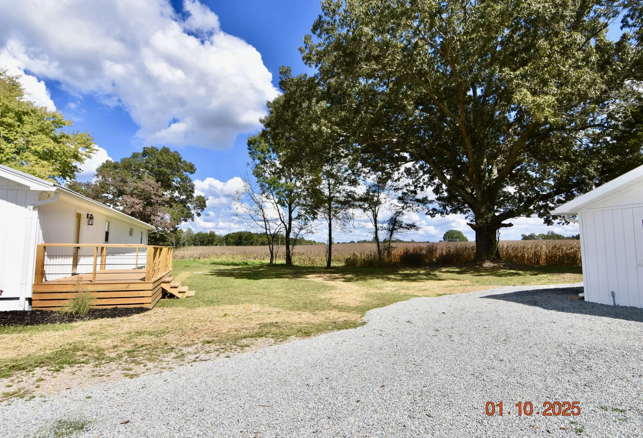Beautiful 3 bed, 2 bath home with open floor plan, tons of natural light, and stylish upgrades throughout. Features a spacious kitchen and island with granite counter tops and a tile backsplash. A cozy family den just off the dining area plus a spacious open living room. Step out back to find a large open deck overlooking a private backyard with a detached garage. You will love the huge 10×24 front porch with oversized columns. Modern comfort meets country charm!