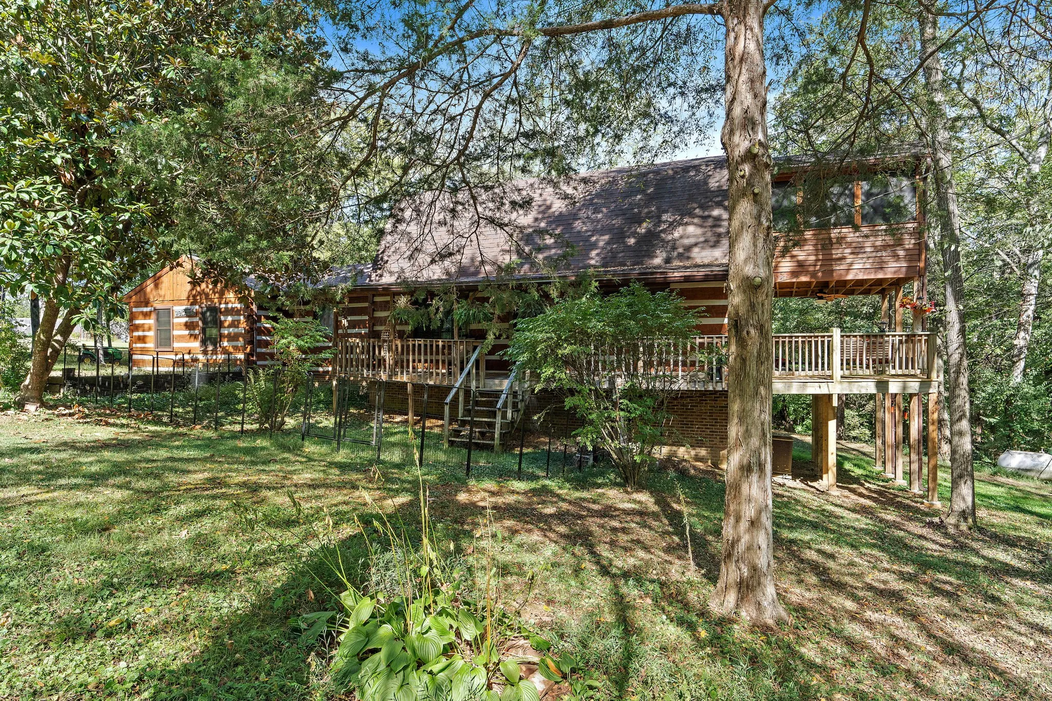 Discover your private retreat minutes from Nashville- Charming custom log-cabin style home on 1+ acre in highly sought-after Goodlettsville. Welcome to this distinctive 3-bed, 2-bath, 2,393 sq ft home nestled on a 1.03-acre lot in the tranquil cul-de-sac of the Grizzard Manor neighborhood. Built in 1979, the log-cabin styled architecture offers rustic charm while delivering modern comfort—just 20 minutes from downtown Nashville! With a wraparound deck, upper screened-in porch, hardwood floors throughout, and abundant privacy, this property is perfect for those seeking serenity, space, and character. Hardwood flooring flows throughout the main living areas, accentuating the log-construction aesthetic. Living spaces open to the outdoors- upper screened-in porch provides mornings with coffee or evenings listening to the rain; lower levels connect to full wraparound deck. Set on over 1 acre (1.03 ac) of beautifully wooded and private grounds—rare in the area. Located at the end of a cul-de-sac for extra privacy and minimal traffic. Wrap-around wooden deck on front and back provides ample outdoor living space for entertaining, quiet reflection, or connection with nature. Upper screened porch adds a bonus outdoor living area—think morning coffee, evening cocktails, or simply relaxing listening to the rain. Log-style architecture offers unique aesthetic appeal and stands out from typical “cookie-cutter” homes. Prime location in Goodlettsville—quiet, private, and yet conveniently close to Nashville’s vibrant amenities. This home is perfect for a buyer seeking a peaceful, private home with large lot space and wooded surroundings, a family wanting comfortable living while staying within commuting distance of Nashville, or an investor or short-term rental entrepreneur looking for a unique log-cabin style property with Airbnb potential.