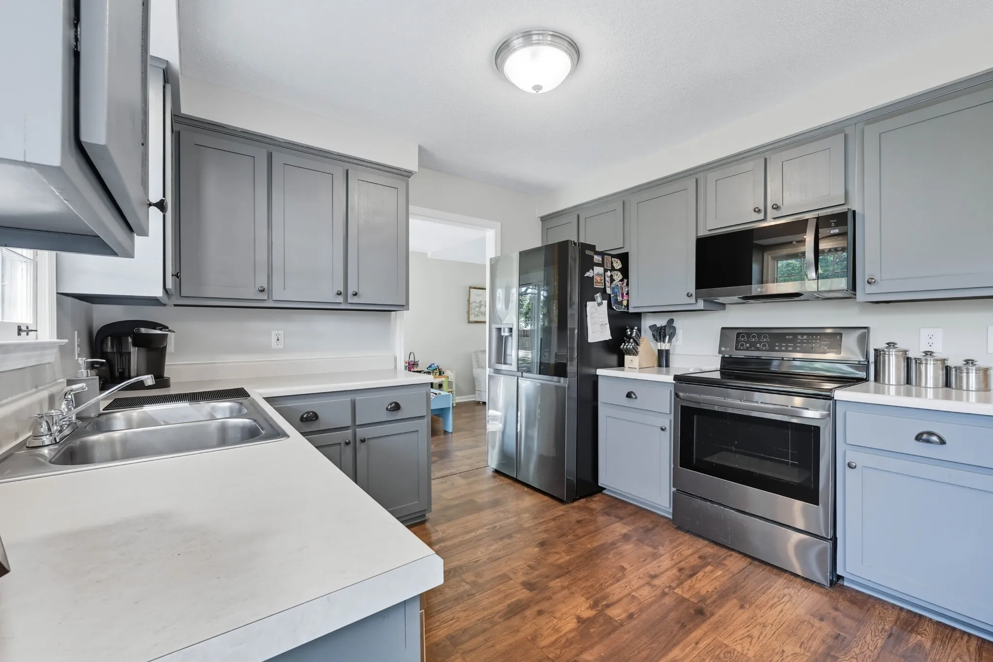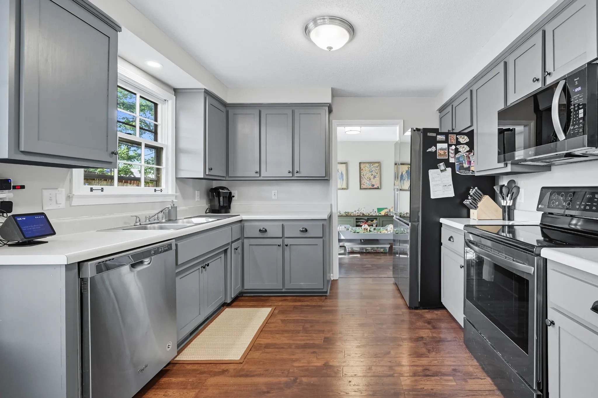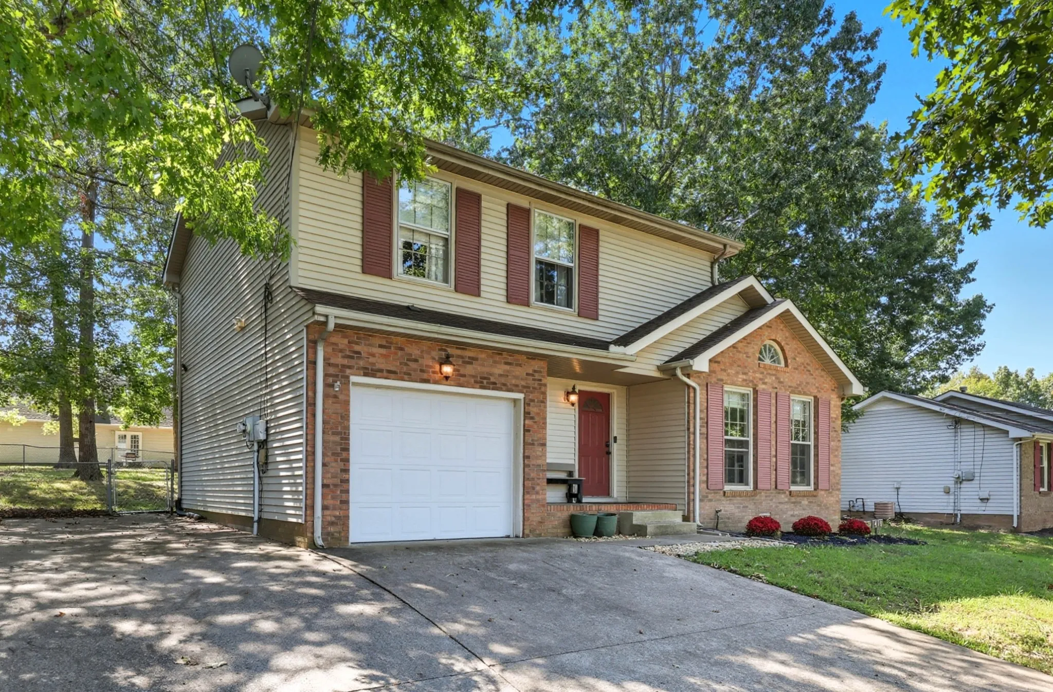 Only minutes from all schools, shopping and Fort Campbell is this exceptionally well maintained home on a fenced lot with mature trees ! Open concept living space with a vaulted ceiling and fireplace in the Greatroom; formal Dining Room – currently being used as a playroom – and Country Kitchen w/ all appliances and there is no carpet on the main level ! Upstairs you will find a spacious Primary Bedroom with a full Bath as well as 2 other Bedrooms accommodated by a Hall Bath. And lets not forget the oversized deck in the back for outdoor entertaining.