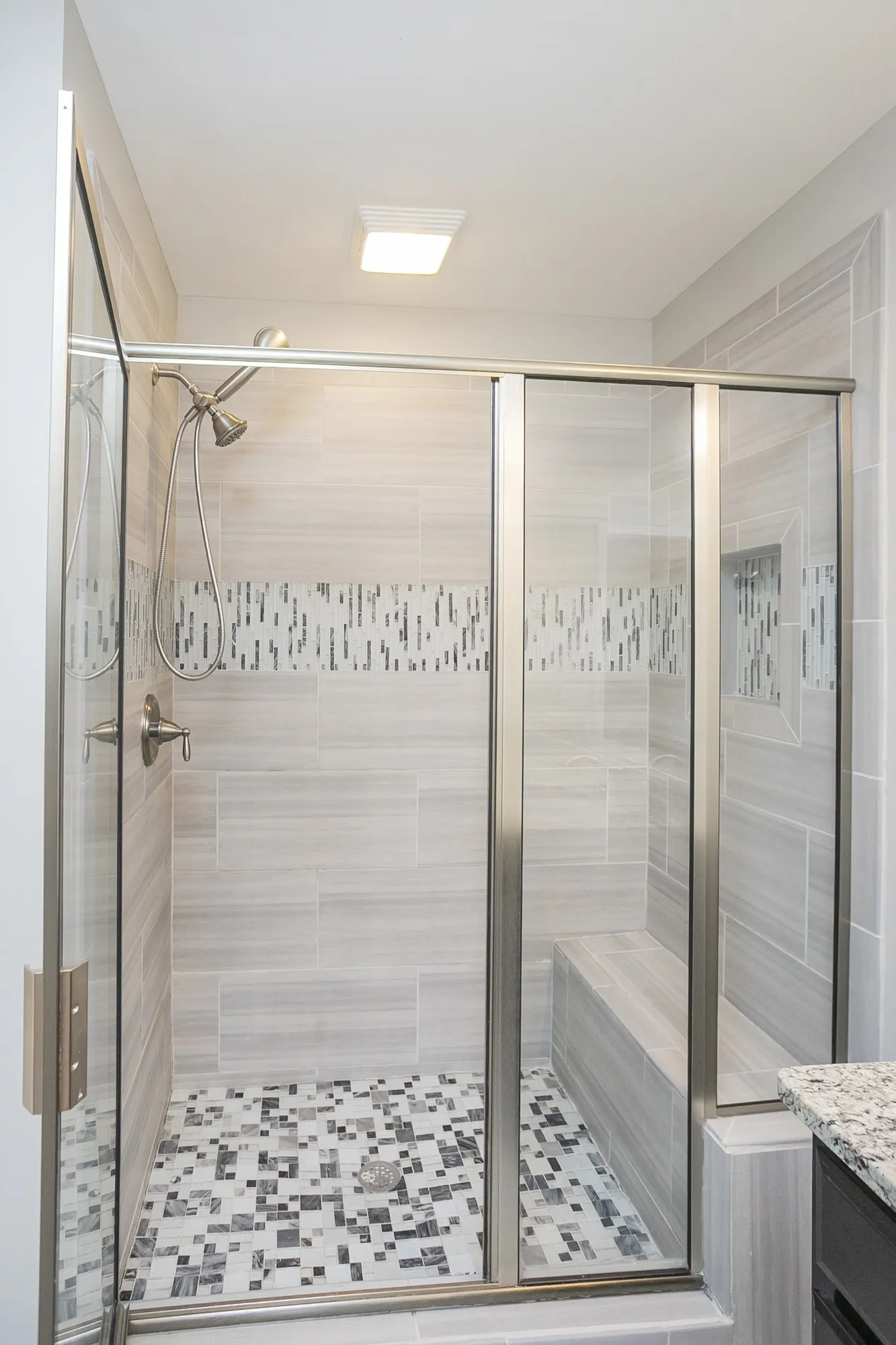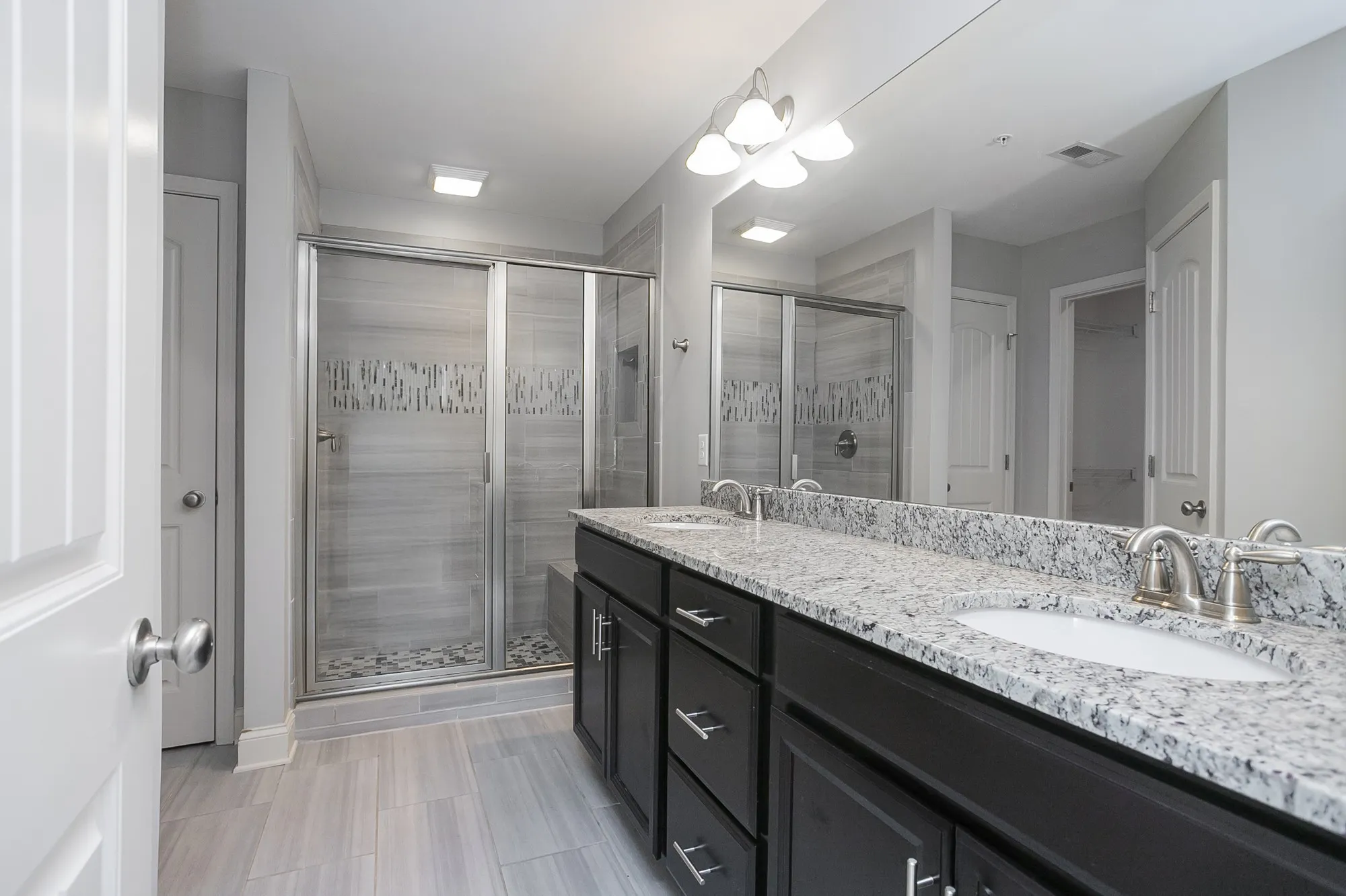 Step inside to an inviting open layout featuring granite countertops throughout the kitchen and all bathrooms. The primary bathroom boasts a walk-in glass shower and double vanity, ensuring both luxury and practicality.
