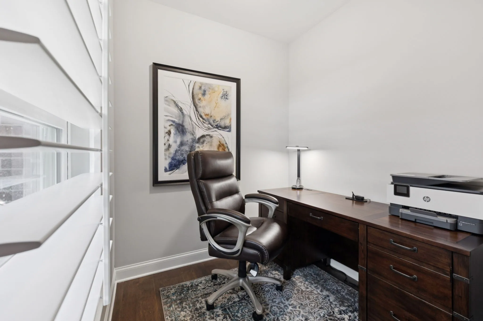 This home offers hardwood flooring in the main living areas, a dedicated office with corner windows, a private gated rear courtyard, a spacious two-car garage, Blink security video system, recirculating hot water pump for instant hot water, upgraded arched doorways, and plenty of storage and cabinet space throughout.