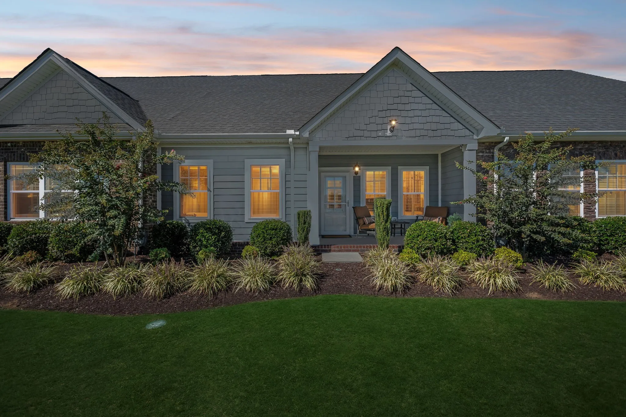 The “Ashleigh” floor plan features an open layout filled with natural light, highlighted by double windows in both the great room and the primary bedroom.