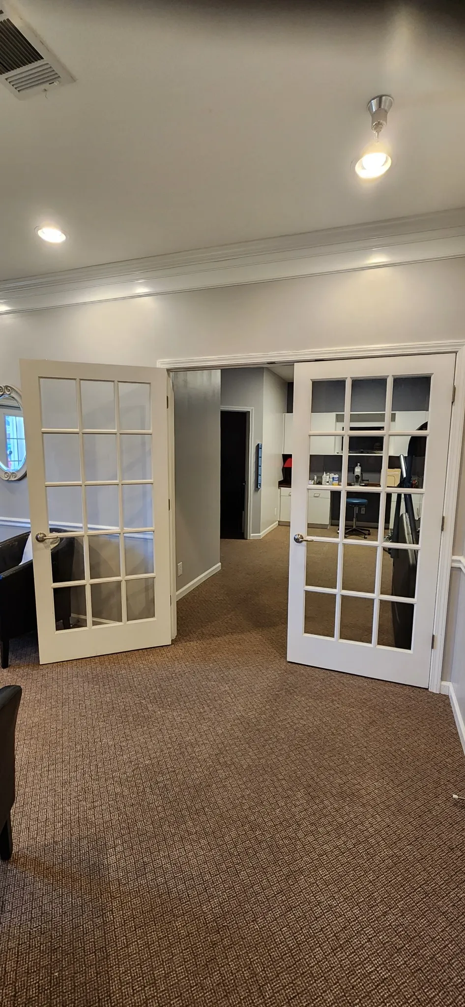 This 600 sq. ft. semi-private office space includes four offices and a reception area. Within a 1,700 sq. ft. multi-tenant suite, the tenant will share a foyer area, two bathrooms, and a kitchenette. Four rooms are approximately 9 x 9 connected by a conference room area, with a 5th room approximately 12 x 11 that could be substituted. General office hours are from 6 am -9 pm, and there is ample client parking. Rent for the space is $2,500 / month and $200 / month for a tax and expense contribution. Expenses include all utilities and basic wifi. Owner will also consider leasing individual rooms.
