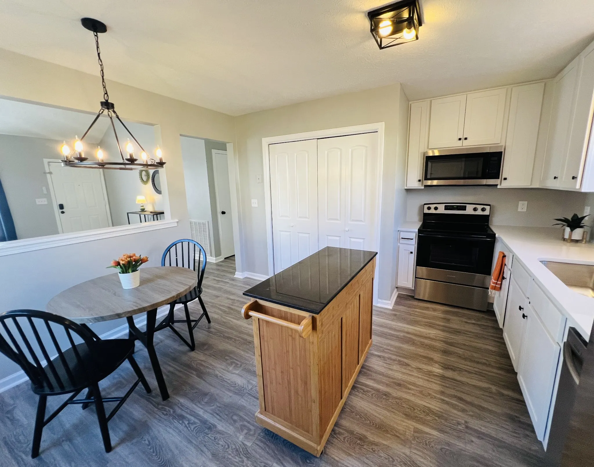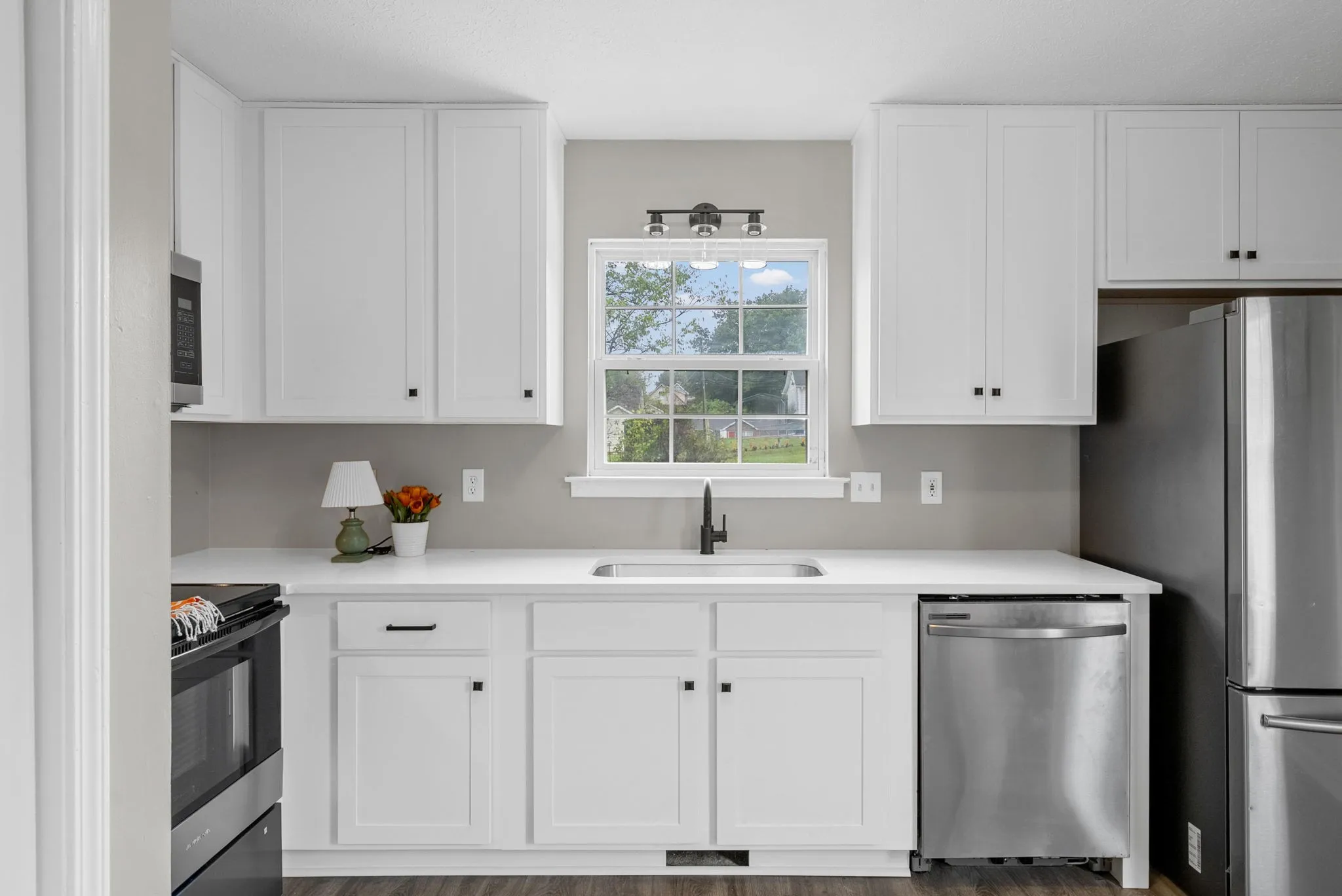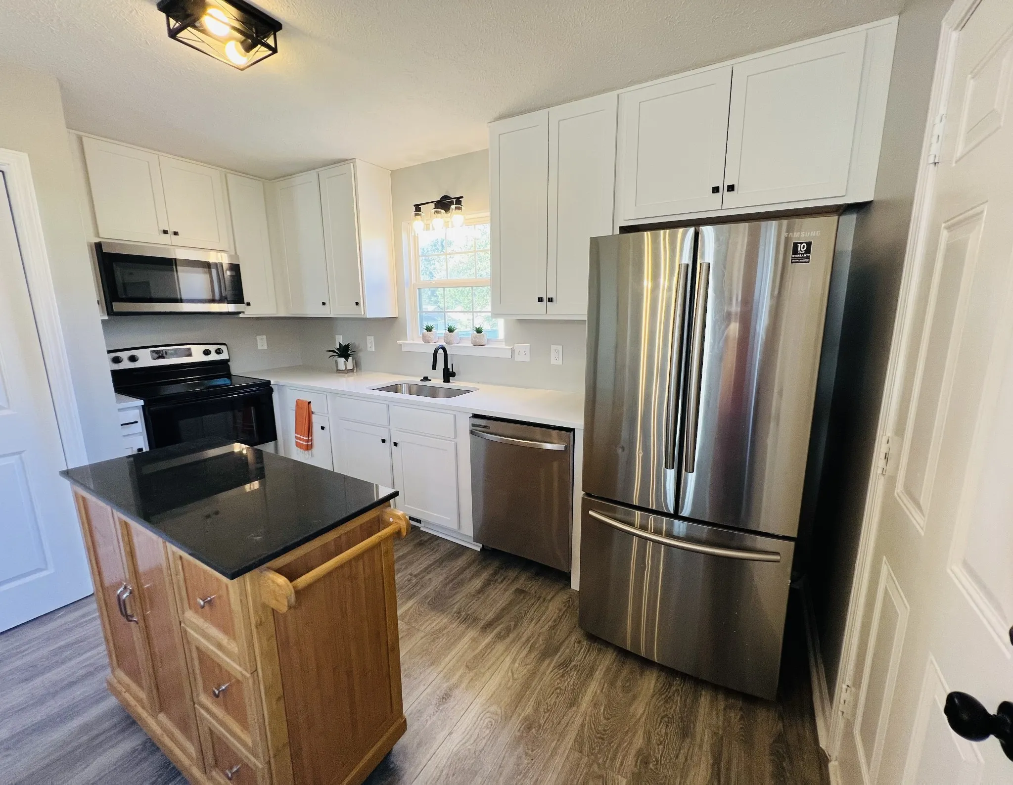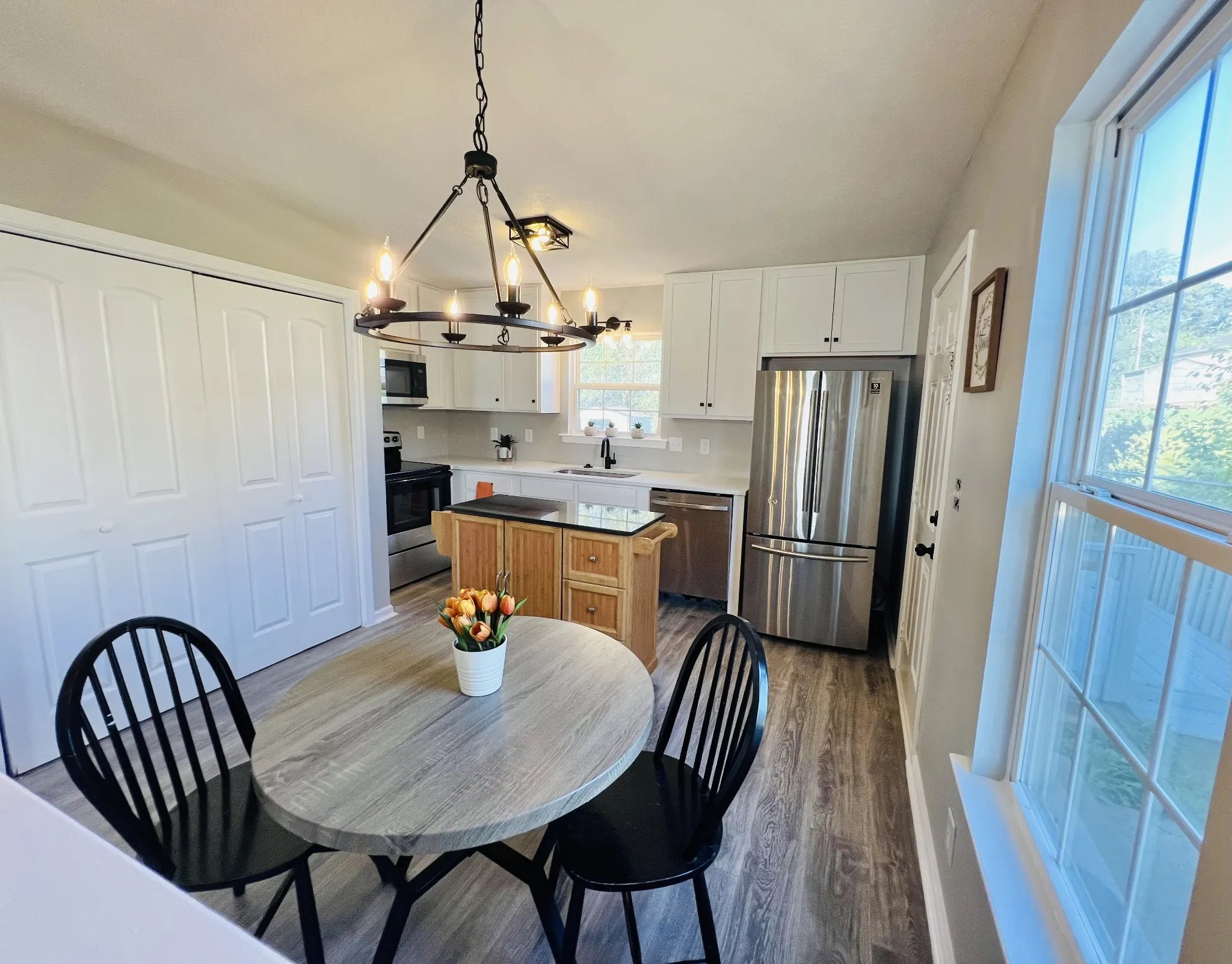 Adorable 3 bedroom home with fenced backyard, 2 storage buildings, large deck plus patio area. **New kitchen cabinets, countertops and bathroom vanities**new flooring throughout **entire home just painted. All appliances including refrigerator remain with home. Seller giving 3% of purchase price toward buyer’s closing cost. Great room has vaulted ceiling. New modern lighting throughout. Roof is just 4 years old.