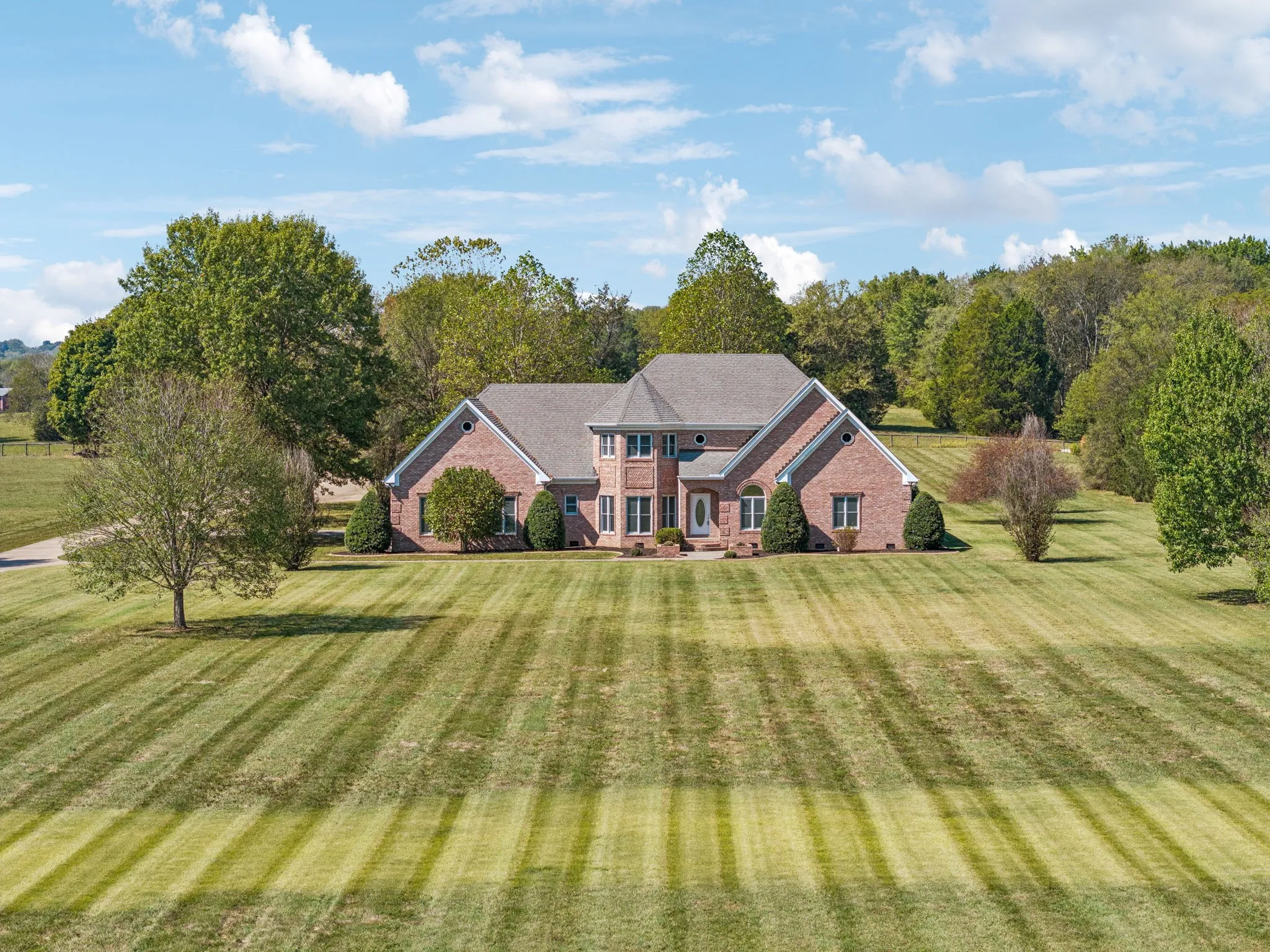 Perfect Property for the Car Collector, Small Business Owner or for those with Storage needs! Stately Custom Brick Home on 5 Gorgeous Acres Tucked away on 5 level, usable acres—but just minutes from shopping and dining—this full brick, custom-built estate offers space, privacy, and endless flexibility. From the moment you arrive, the craftsmanship stands out, with rich finished wood floors, multiple living and working spaces, and two full laundry rooms to make everyday life a breeze.