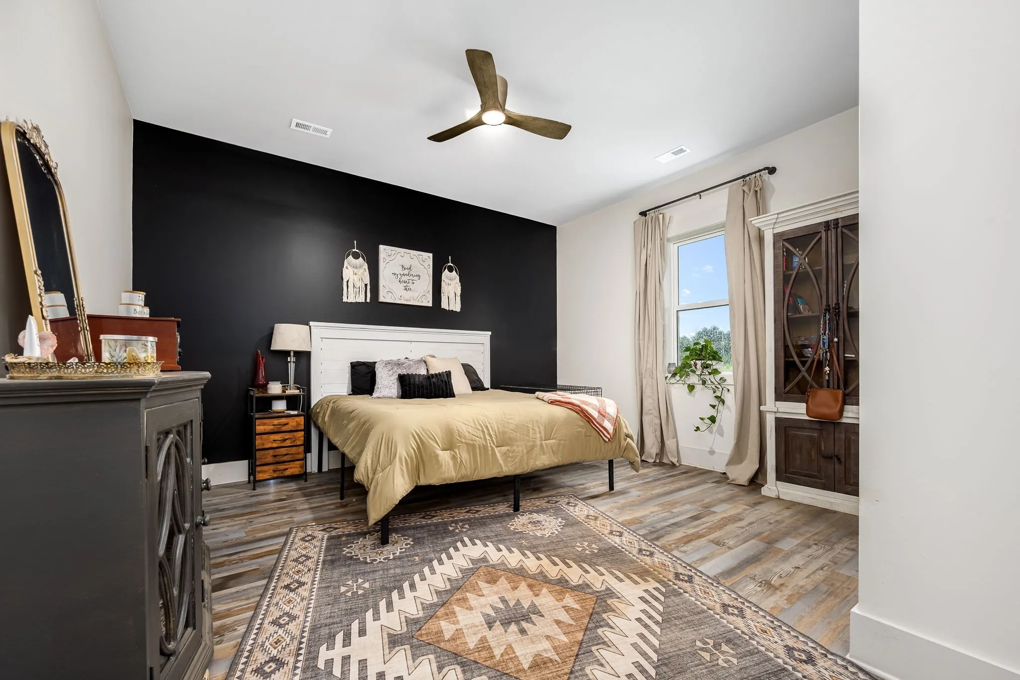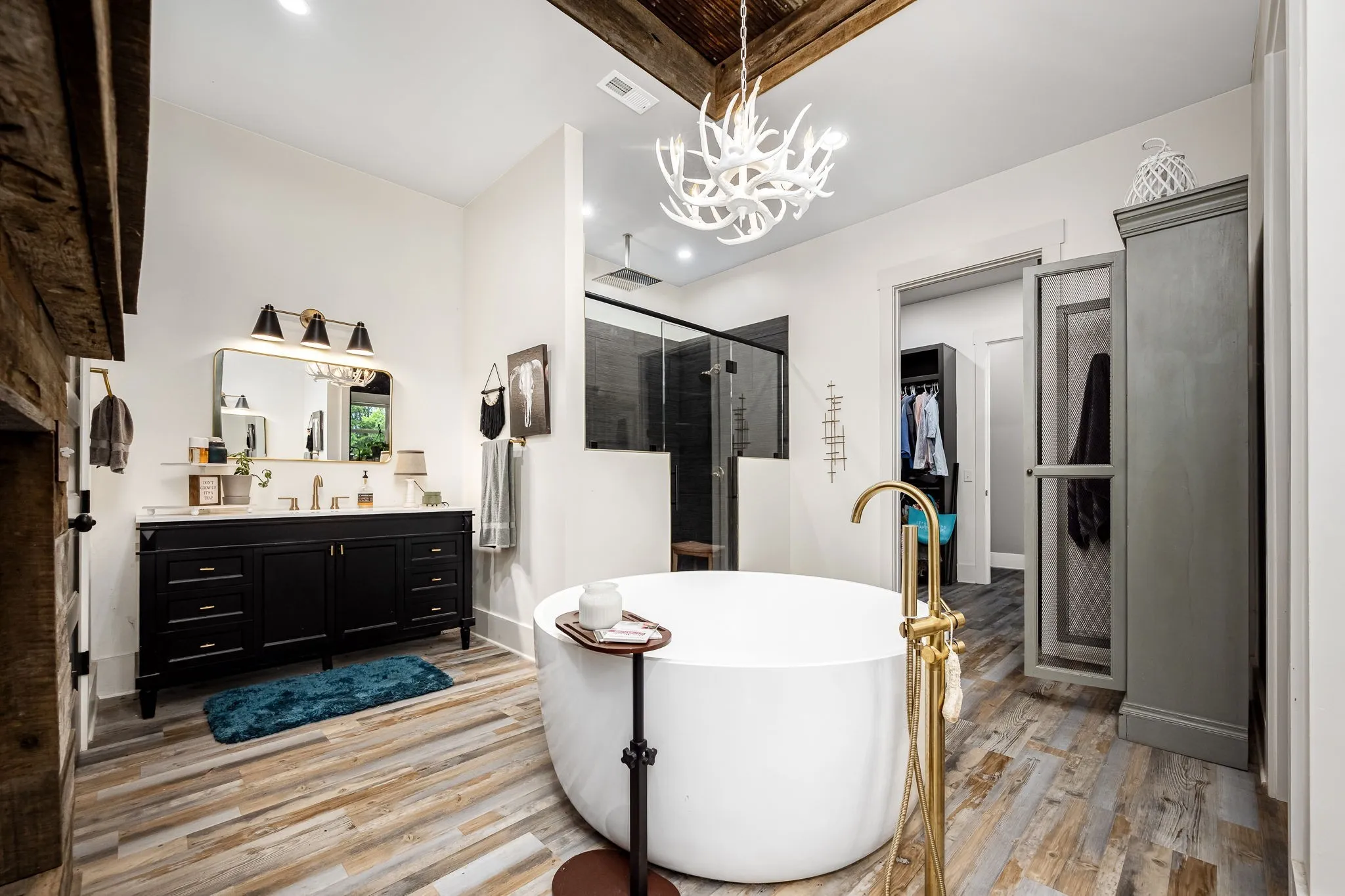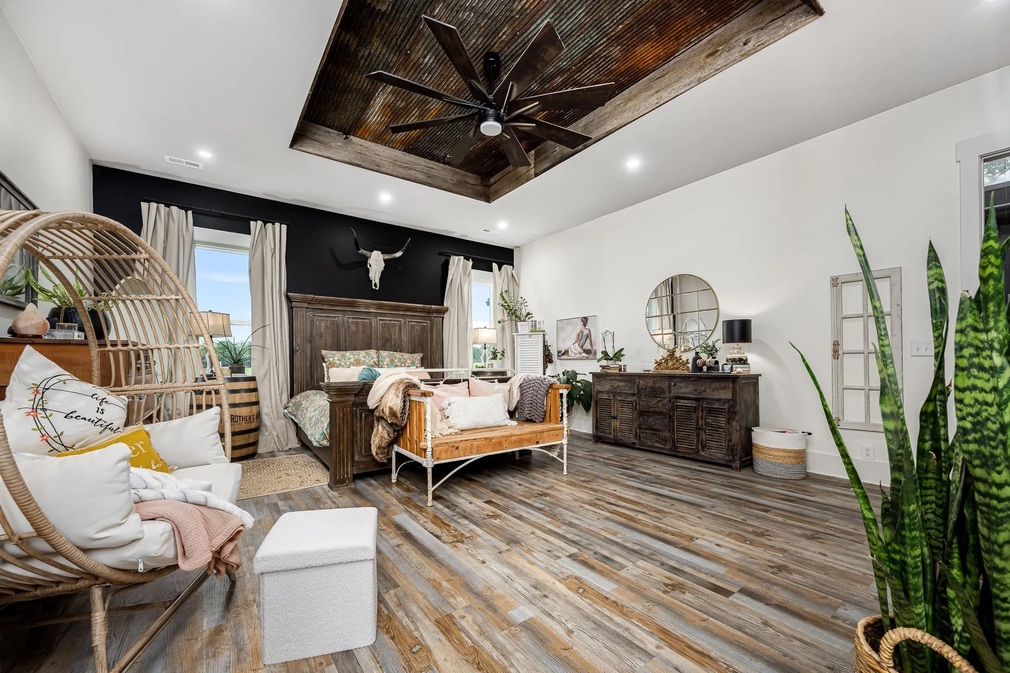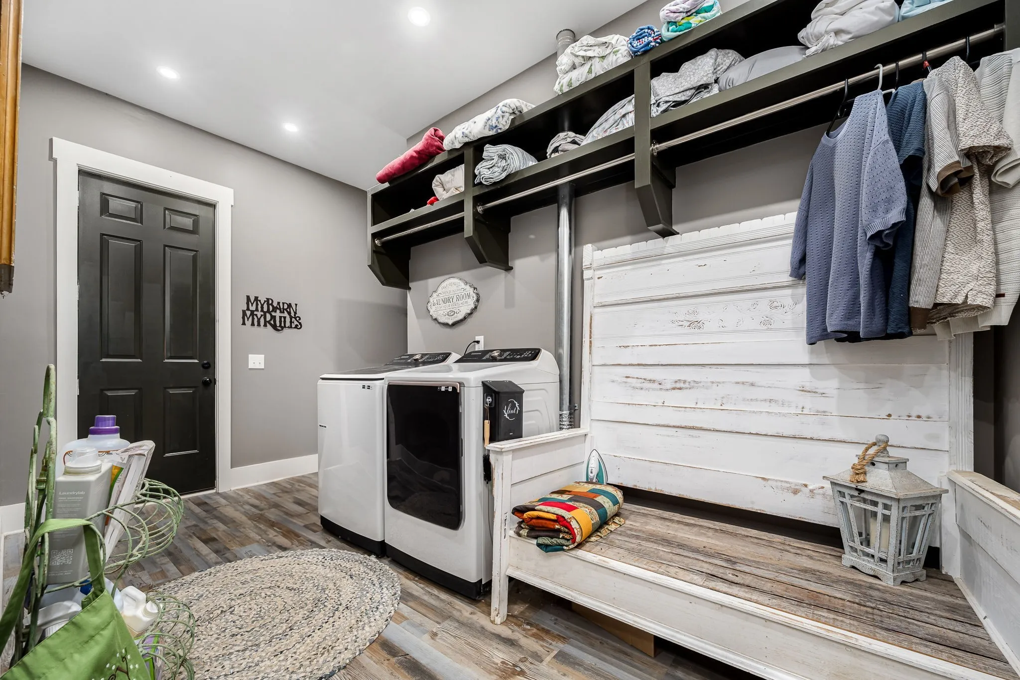 +"PublicRemarks": "HORSE PROPERTY! Unique luxury Barndominium nestled on 20 level, fully fenced acres—an exceptional blend of rustic charm and modern elegance. Boasting 4,392 sq ft of meticulously designed living space, this 4-bedroom, 4-bath masterpiece offers upscale finishes and thoughtful details throughout. The stunning Primary Suite is a private retreat with trey ceilings, stylish tin accents, and a dual-sided fireplace shared with the spa-like bathroom. Unwind in the lavish 5x8 tile shower featuring double shower heads and a rainhead, or the round soaking tub with a freestanding faucet. A massive walk-in closet, dual vanities, and abundant natural light complete the luxury experience. The heart of the home is the gourmet chef’s kitchen, complete with quartz countertops, a 6-foot antique sink with double faucets, top-tier, high-end luxury appliances, a custom range hood, and endless custom touches. The open-concept living area is perfect for entertaining, showcasing exposed ductwork, a stone fireplace with gas logs, and durable yet elegant hardwood-style LVP flooring. Upstairs, a spacious media room loft offers the perfect retreat for movies or relaxation. Additional features include an oversized walk-through pantry with spigot, large laundry room with built-in shelving, and an attached barn like no other—complete with 10 stalls, a wash bay, office, game room, hay loft, concrete hallway, drive-through garage doors, two 92-inch ceiling fans, and LED lighting throughout. Each stall includes interior and exterior doors, with exterior lighting above each. Animal lovers will appreciate the separate facility with 10 indoor/outdoor kennels, washer/dryer hookups, utility sink, water heater, and independent utility meters. This rare property is the epitome of luxury country living—with multiple perk sites already in place for additional homes, it's perfect for expansion, family compounds, or investment opportunities. See attached upgrades list for the full scope of features."
