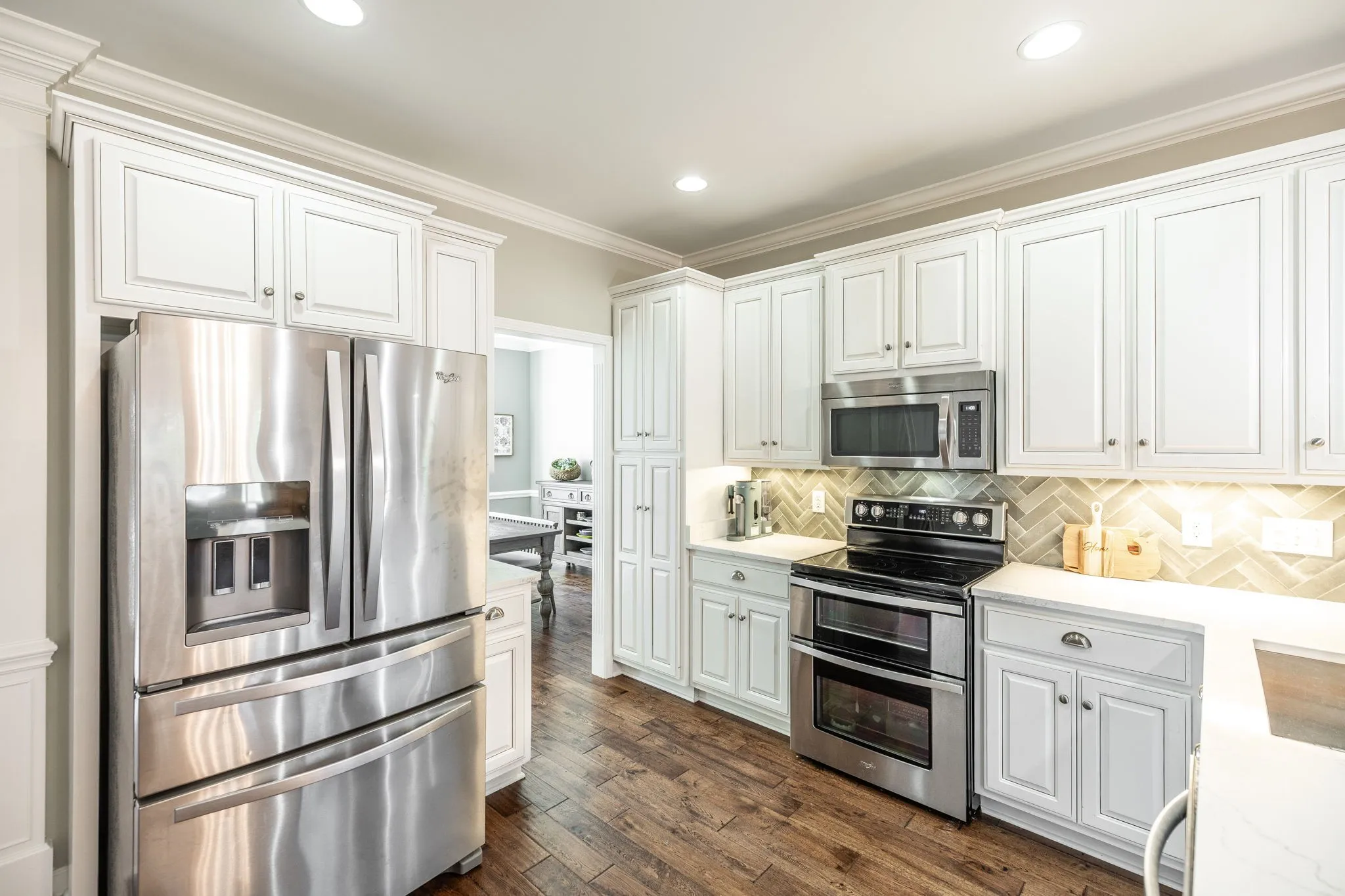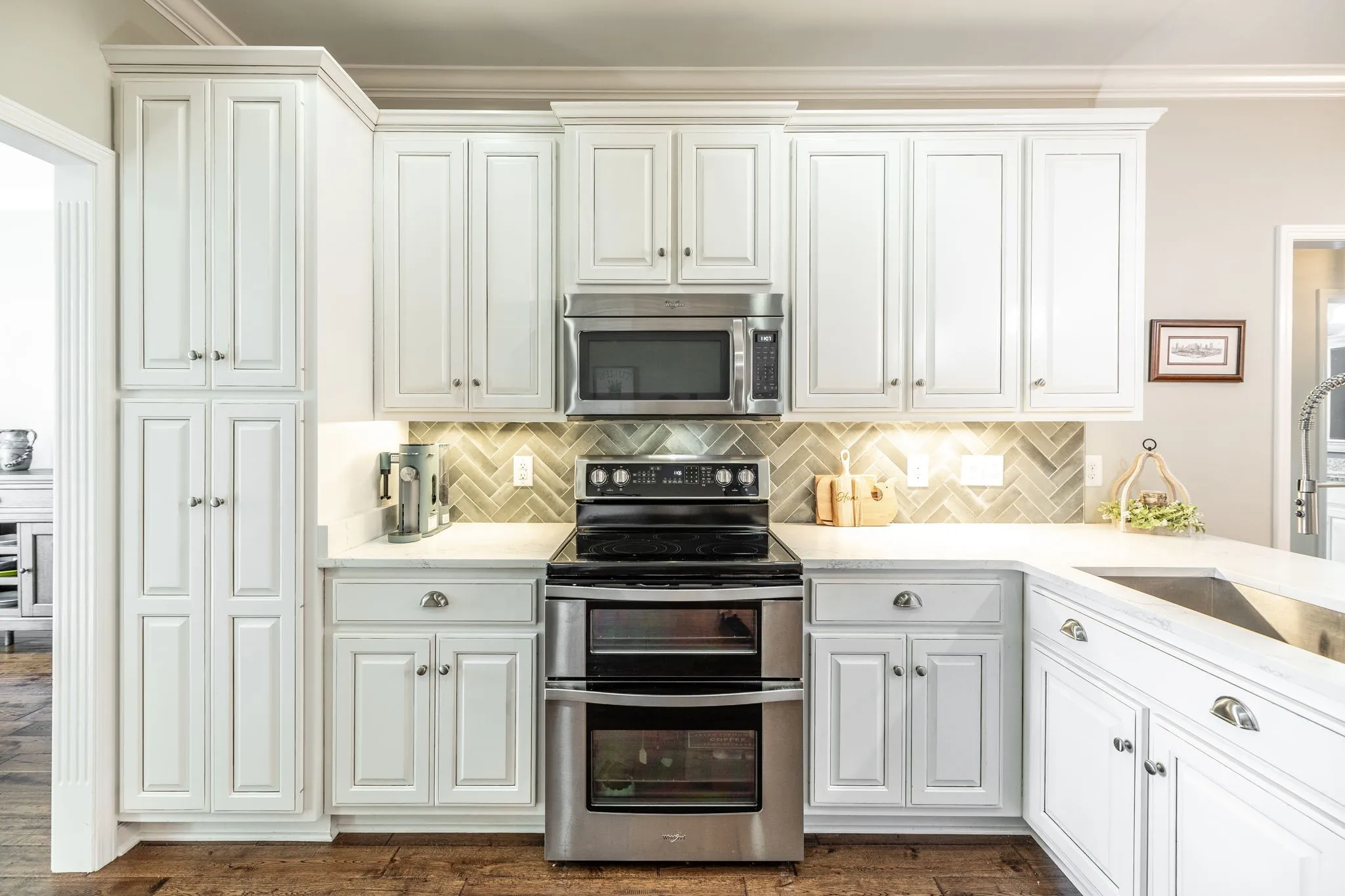 Priced to sell in Twin Eagles! Offering 1% Preferred Lender Incentive! This stunning all-brick home on a desirable corner lot is packed with upgrades and lifestyle extras you’ll love. Step inside to an inviting, open-concept split floor plan featuring three spacious bedrooms, two full bathrooms, and no carpet throughout. The oversized primary bedroom boasts an ensuite with a tiled walk-in shower and closet. The kitchen dazzles with quartz countertops, stainless steel appliances, and a striking herringbone backsplash—perfect for entertaining! A dedicated dining room adds formal flair.
