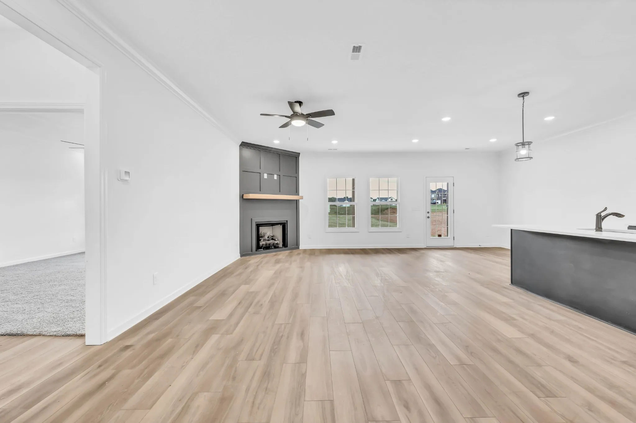 The Dogwood offers a smart, single-story layout with 4 bedrooms and 3 bathrooms across 2,505 square feet. Designed for both everyday living and entertaining, the home features a formal dining room and a spacious kitchen with double ovens and a butler’s pantry. The primary suite is a private retreat, highlighted by a generous walk-in closet with built-in storage. A covered patio with ceiling fan extends your living space outdoors. Interior details include crown molding, custom tile work, full kitchen backsplash, granite or quartz countertops, upgraded lighting, and smart home technology.
