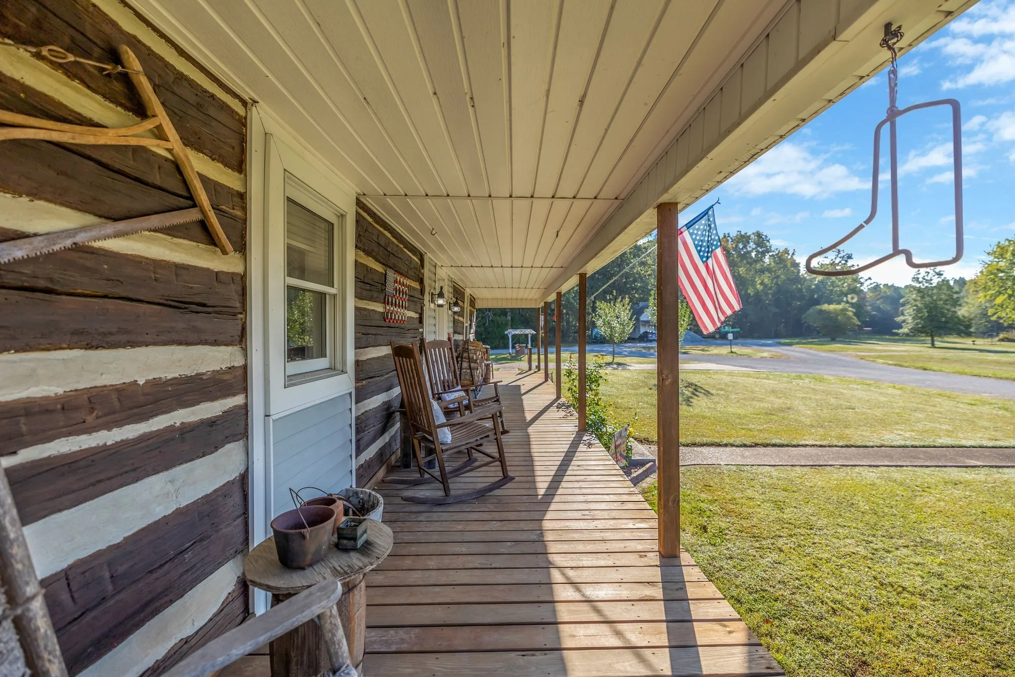 Experience a rare opportunity to own a private country retreat backing directly to Natchez Trace State Park, offering immediate access to miles of horse and side-by-side trails. Set on 6.69 acres across two adjoining parcels, this authentic 1900 log home blends historic character with practical modern updates and true outdoor functionality.\n