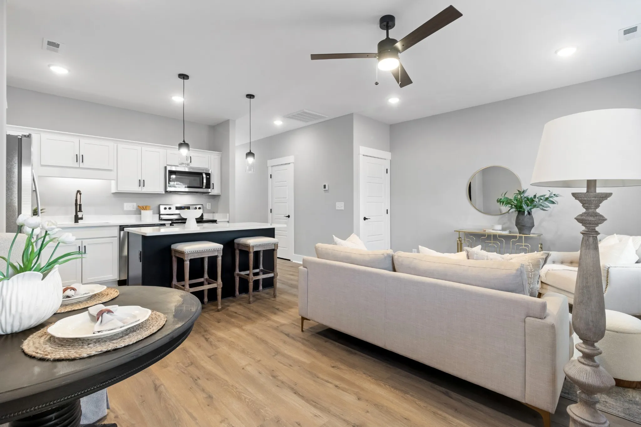 Affordable new construction in the Sango area. 11 South is Clarksville’s newest Gated Community. Open floor plan on the main level with wide-plank flooring, granite countertops, stainless steel kitchen appliances, a nice kitchen island, and a pantry. Both bedrooms upstairs are big and are full-bathroom suites. The laundry room is also upstairs for added convenience. The seller is offering a refrigerator with a full-price offer. Fantastic location and these units qualify for FHA & VA financing.