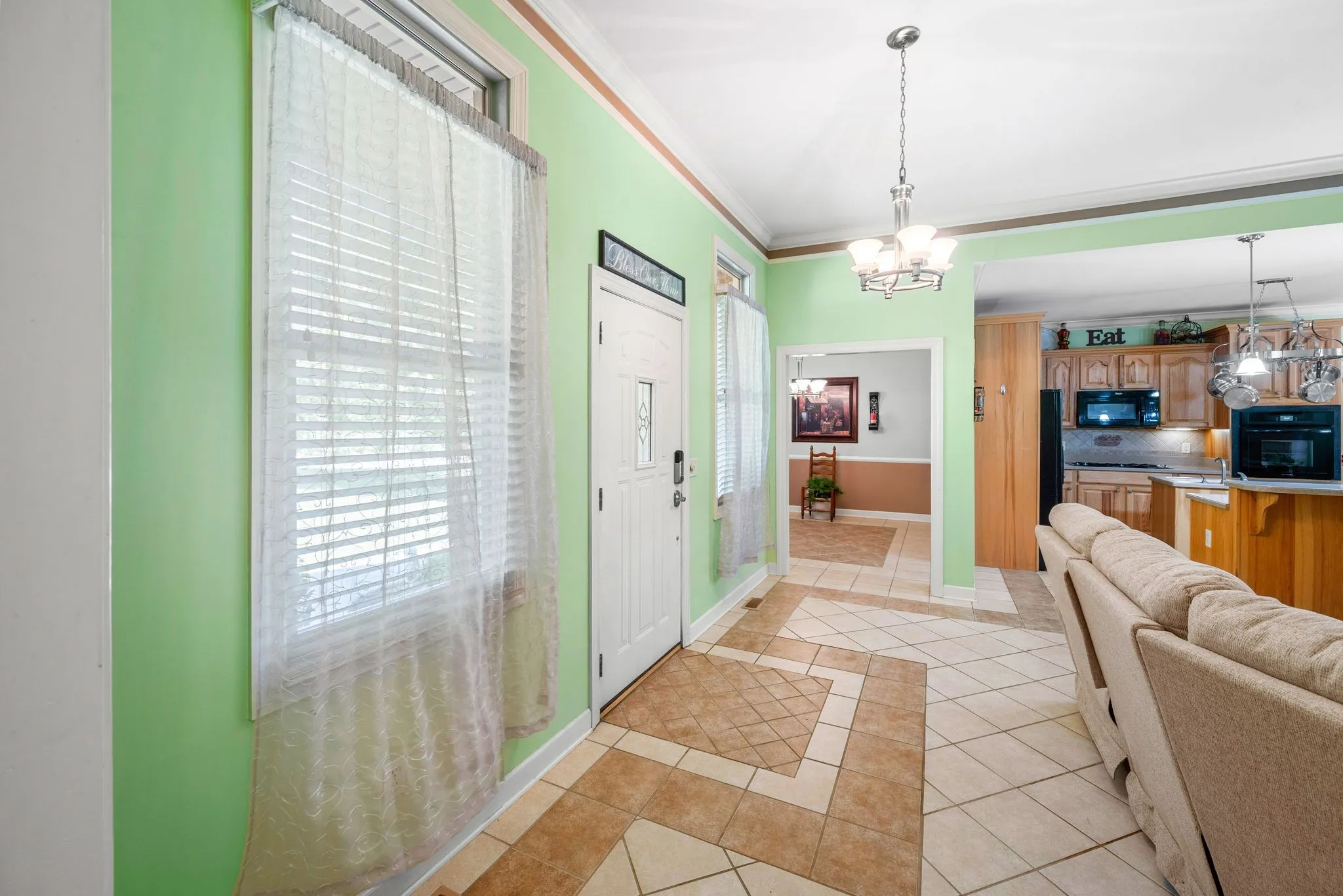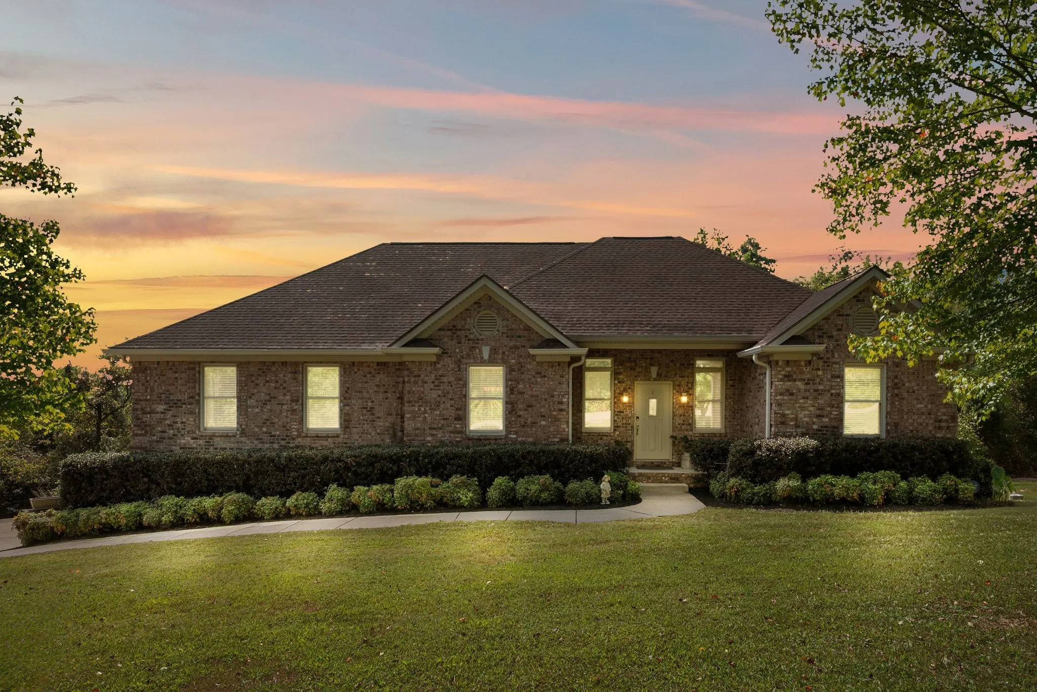 Welcome Home to this beautiful custom built, all brick ranch on a spacious lot with a country setting and NO HOA! 3 bedrooms, 2 baths with lots of custom upgrades! Open living room/kitchen and a separate dining room with volume ceilings! Kitchen features Hi-Macs solid surface countertops, 2 islands with sinks, gas cooktop and built in oven. Beautiful custom built cabinets! Home has trey ceilings, tile and wood floors (carpet in two bedrooms), extra large bonus room with only 3 steps from main floor. 2 car attached garage with a basement area with a garage door as well! Concrete driveway could accommodate multiple cars! Privacy in the back with mature tree line and a place for a garden or a pool! Enjoy the outdoors on the covered back porch! Check out the photos for all the extra details and upgrades! Must see!