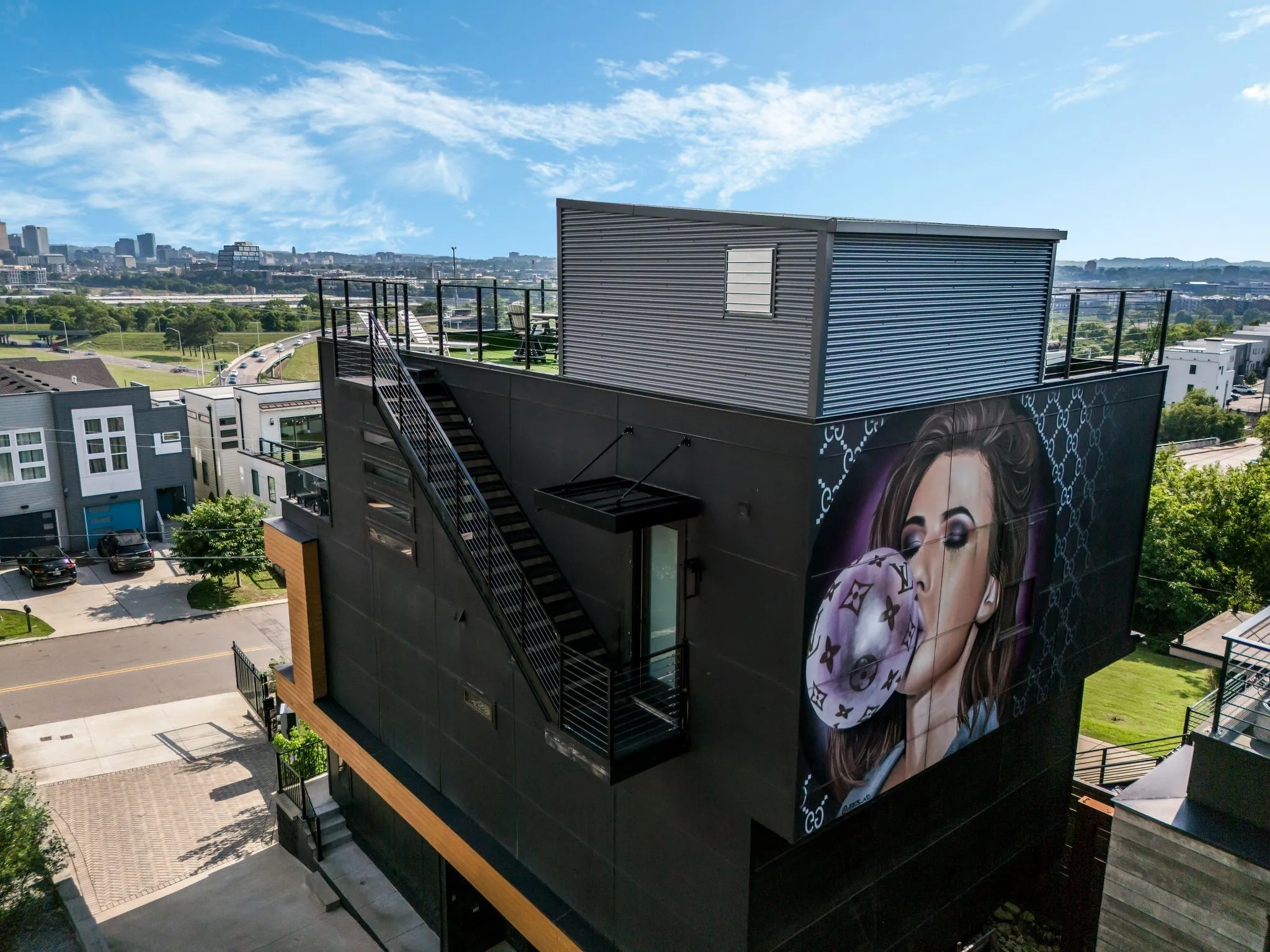 This one will not disappoint! Don’t miss an opportunity to own one of Nashville’s most beautiful & unique investment property / short term rental / non owner occupied / NOO STR / non owner occupied / Airbnb w/ a 5 Star review! This property was featured on THE MCBEE DYNASTY TV Series! This gorgeous 4 level property comes fully furnished sleeps 12 comfortably, making for a great investment opportunity. This property greats you with a modern wall fountain feature on the front of the home. There are 4 designer bedrooms, 4.5 baths, 2 levels with laundry facilities, gas fireplace, stunning kitchen w/ stainless appliances, a gas stove, & a 2-car garage w/ additional storage, sink & fridge! In the master suite, don’t miss the unobstructed view of the Nashville skyline, a fantastic balcony, a massive 5 shower head shower & a custom built in closet. A rooftop lounge was recently added to give you & your guests the total Nashville experience with breathtaking views. Just minutes to Broadway to enjoy the Nashville Night Life for fantastic food & entertainment! Property is an active Airbnb. See media section for virtual walk through! Home was freshly painted! A MUST SEE!