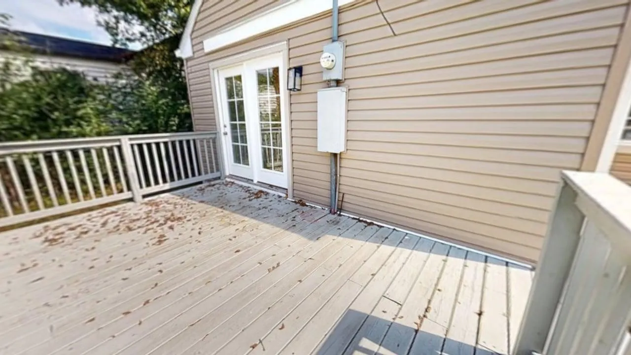 Outside, relax on the spacious covered deck overlooking a fenced yard with mature trees and gentle green space. Fresh neutral paint, updated lighting, and ample off-street parking add turnkey appeal.