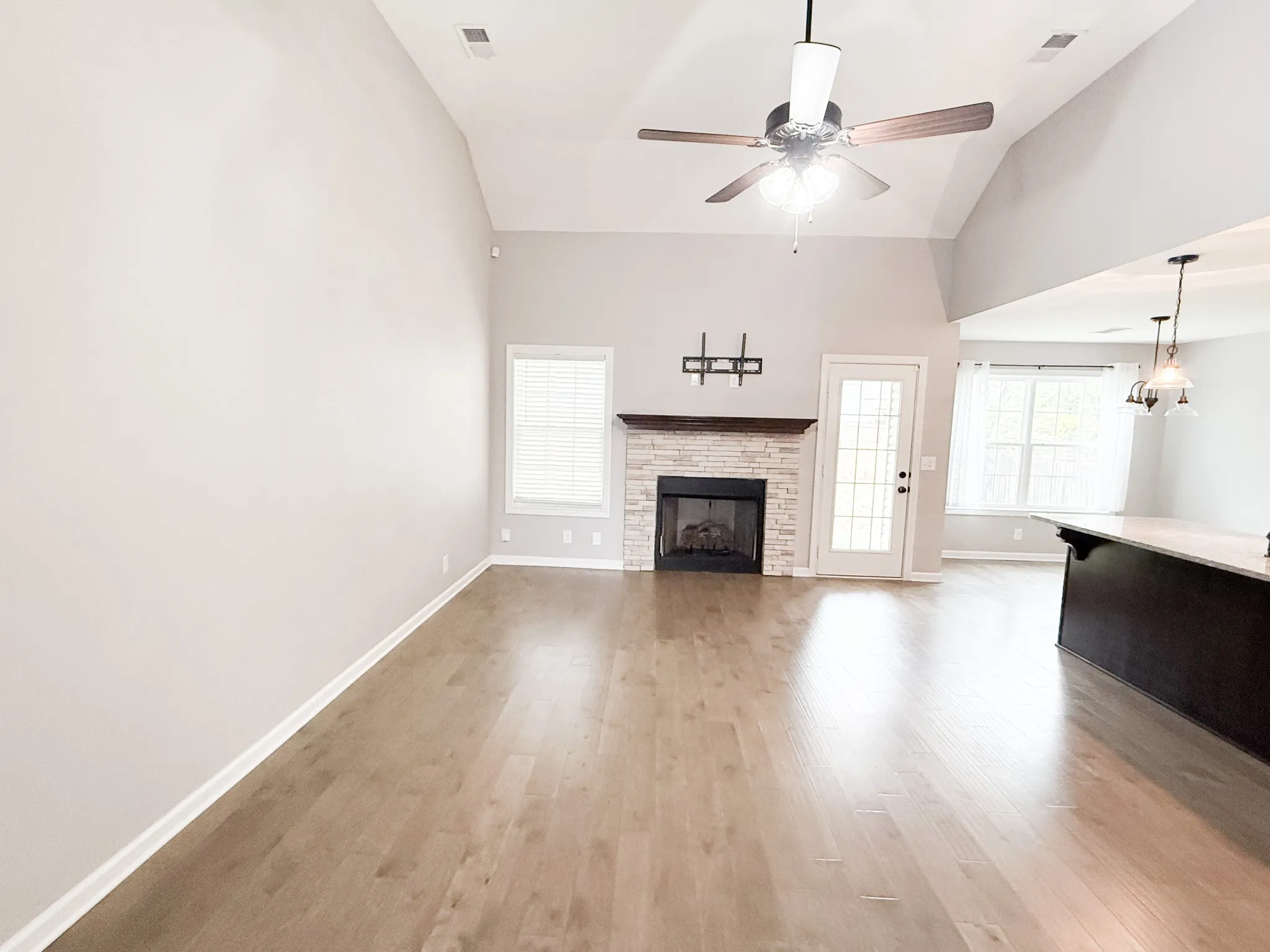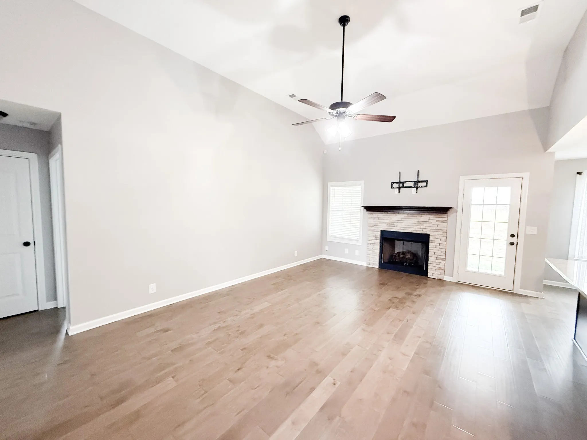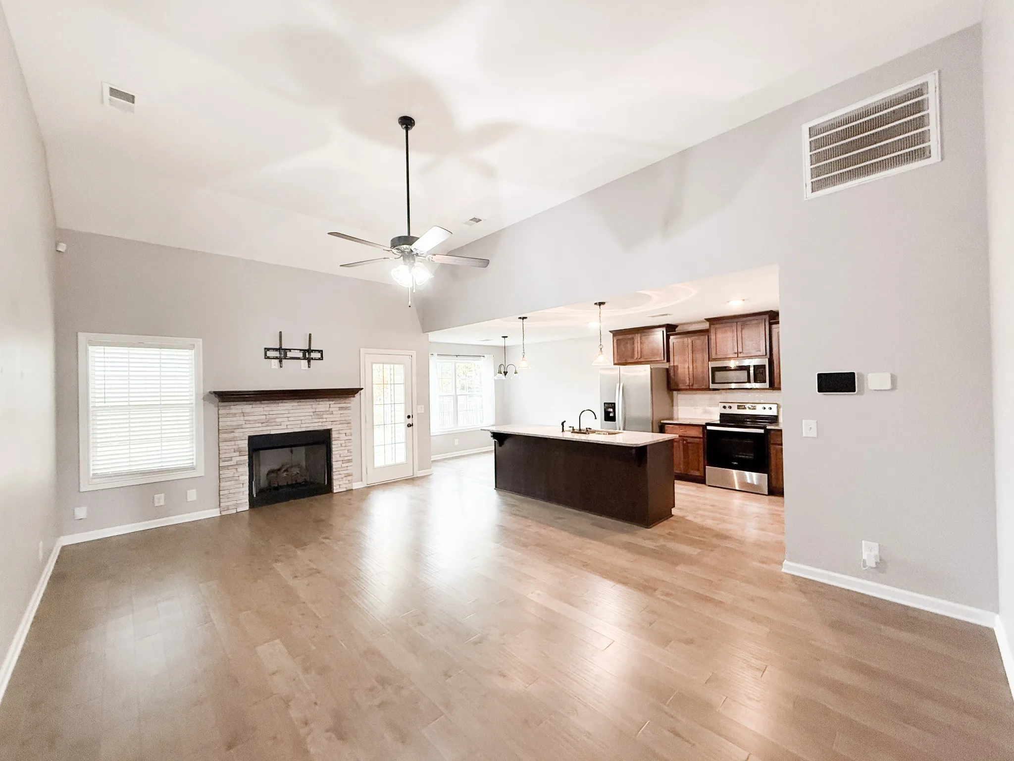 Welcome home to this beautiful 3-bedroom, 2-bathroom residence offering 1,350 sq. ft. of comfortable living space. The open floor plan features hardwood floors throughout the main living areas and a stunning fireplace in the great room, creating a warm and inviting atmosphere. The kitchen is a chef’s dream with tile flooring, granite countertops, a spacious island, tile backsplash, and stainless steel appliances. Both bathrooms feature elegant tile finishes, and the covered back patio provides the perfect spot for outdoor relaxation. Located just minutes from Ft. Campbell and the 101st Parkway, this home offers convenience and community with underground utilities, sidewalks, lighted streets, playgrounds, and walking distance to a beautiful community pond.