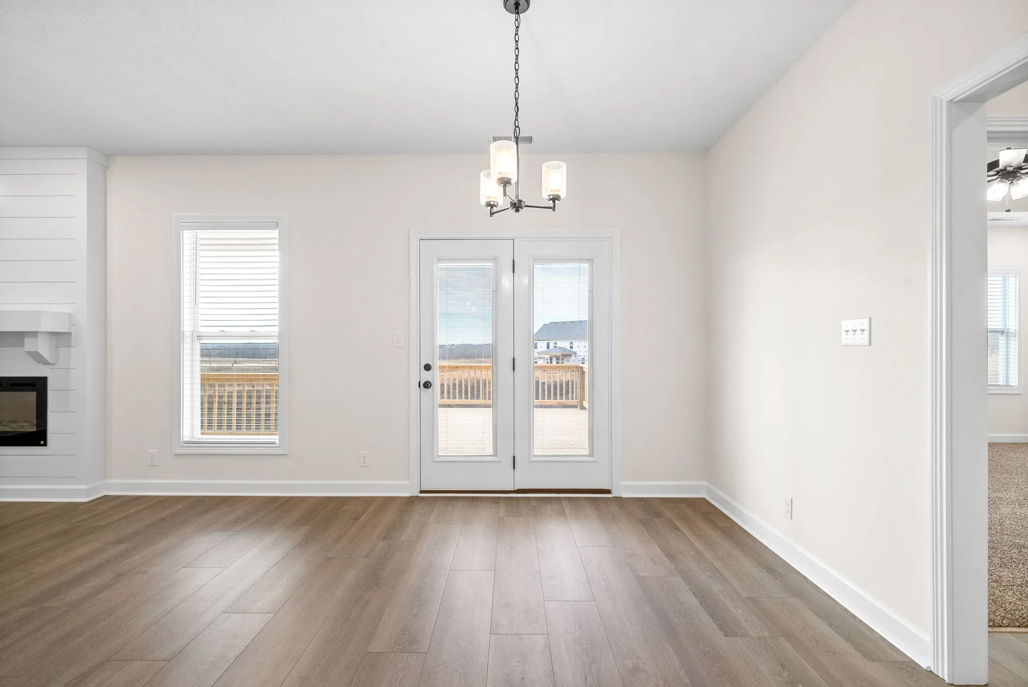 Step outside through the back door to enjoy the covered deck with a ceiling fan—ideal for relaxing or hosting gatherings in the spacious backyard.