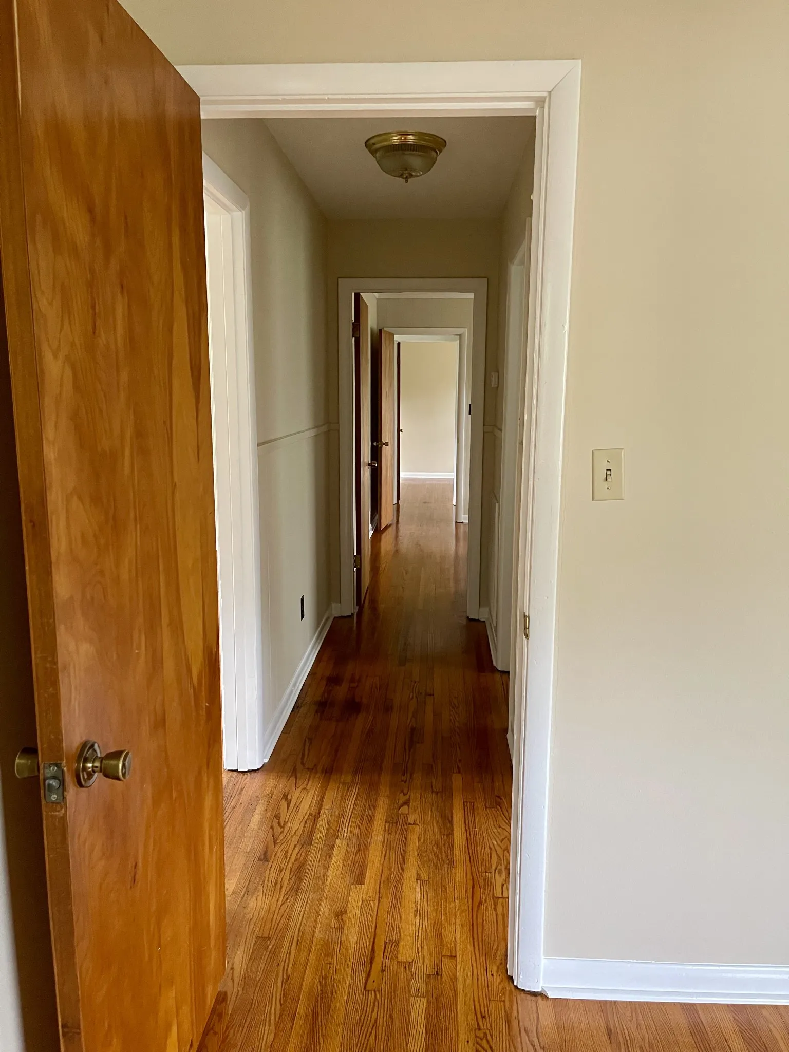 "LongDescription" => "Exit view from "Bedroom 3", showing hall/walkway across the home to "Bedroom 1"."