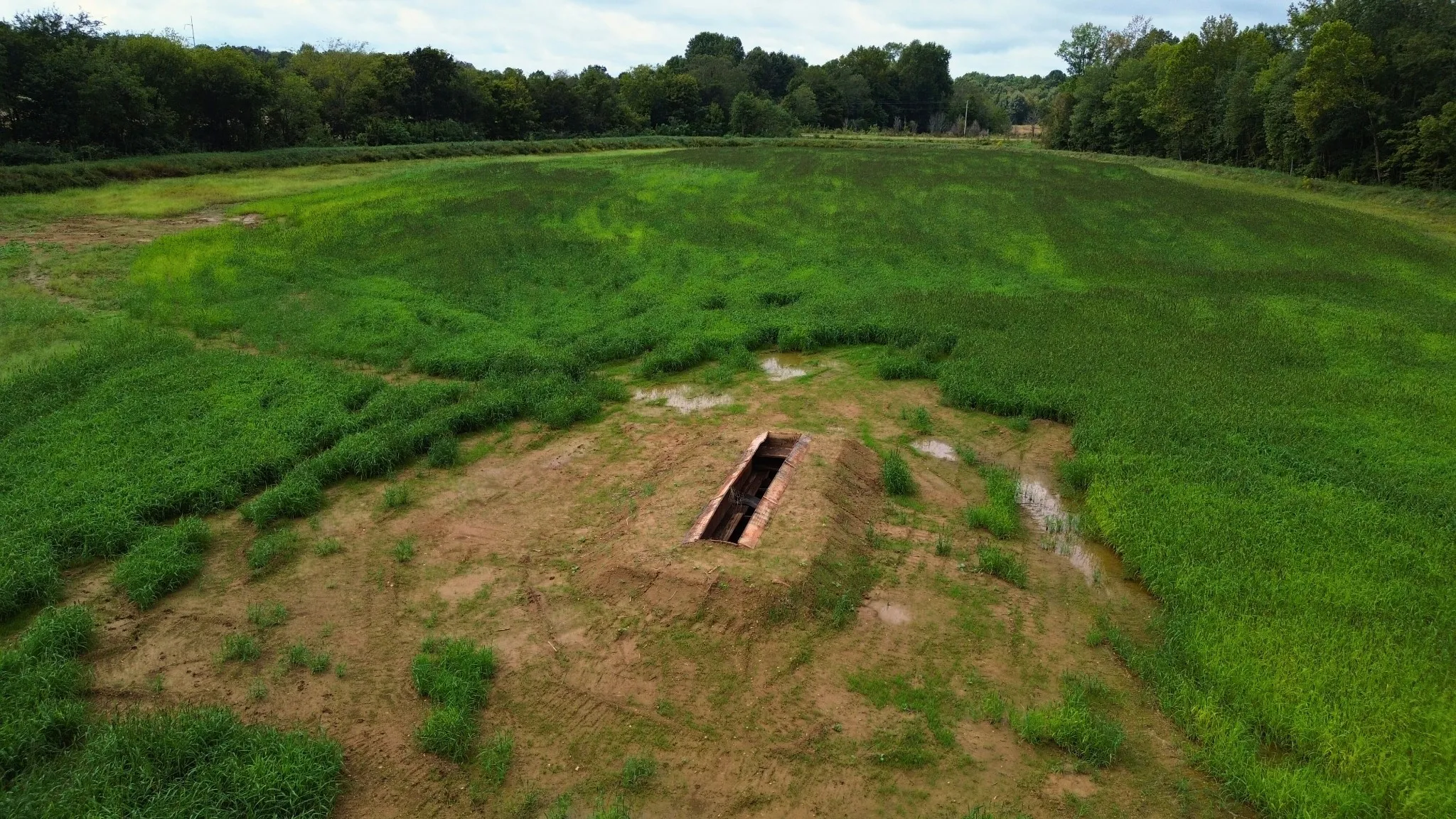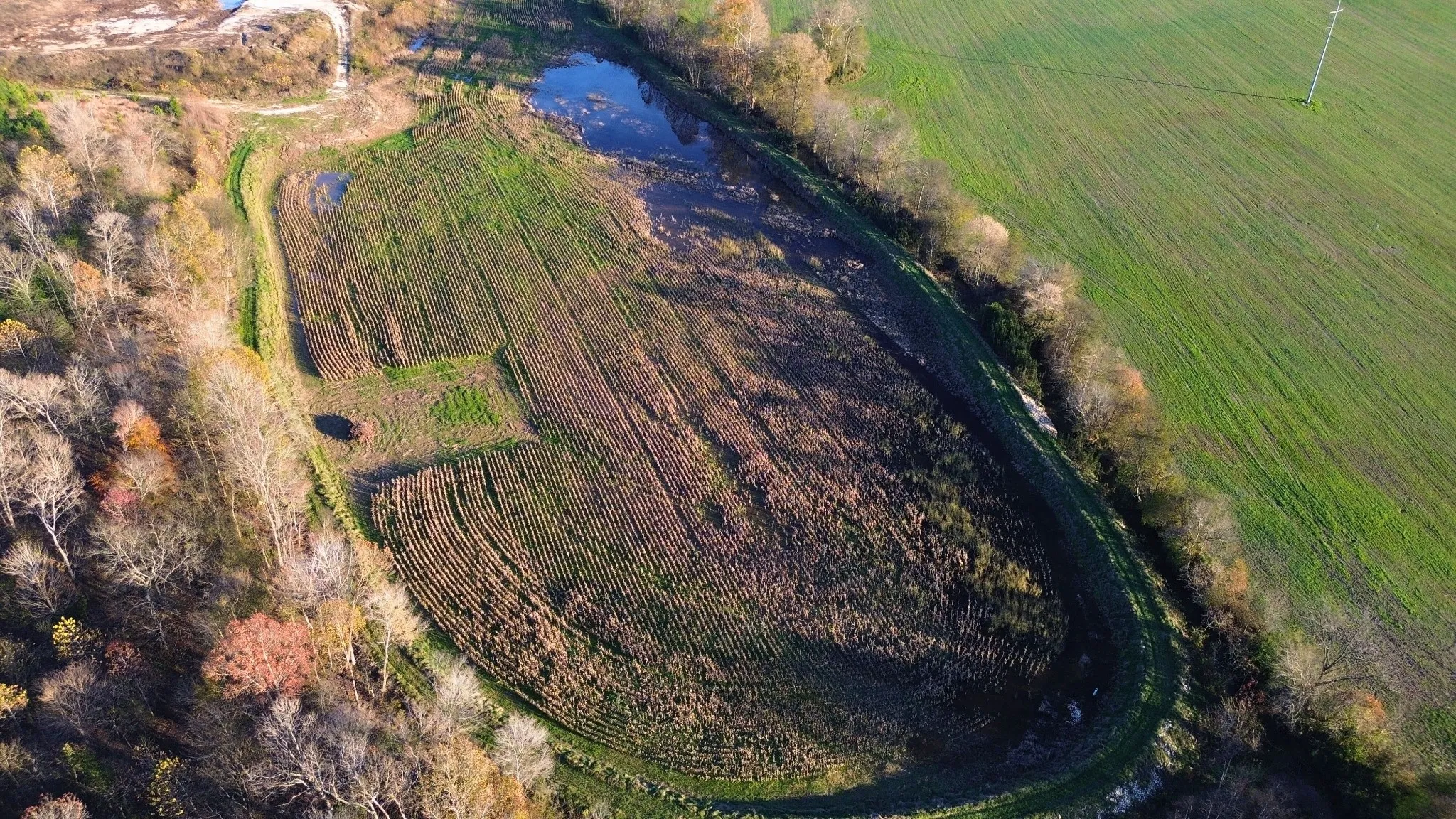 This is a recently developed and very affordable duck hunting spot. The total acreage is 21.6 acres – with a 10 acre planted and floodable field. The duck impoundment is located along the creek on the Southern border of the farm. The farm location is very strategic for attracting waterfowl – less than 1 mile to the lower Big Sandy duck hunting areas, Gin Creek WMA to the West, and Big Sandy WMA to the North, as well as The TN National Waterfowl Refuge are a short flight away. This farm is located just outside of Big Sandy and less than 16 miles to Paris as well as Camden – to accommodate most of your needs. The field along the creek has been levied and graded. The field has been planted in millet this year – and the crop came-up nicely. The impoundment is approximately 10 acres total – flooding about 8 acres. There is a 6-man pit in the field that will remain. Last year – the field did not get hunted. Ducks were observed every week using the field – to include Mallards, Gadwalls, Teal, Shovelers, Wood Ducks, and Ring-Necked Ducks. The Seller has spent most of a week with his machinery clearing and grading the upper portion of the Farm to create a very nice build site. Gravel has been brought in to create a very nice driveway and entrance to the duck field. The level build site overlooks the whole farm and faces West for great afternoon sunsets. There is a spring on the edge of the hillside in the center of the farm. This spring water is going to be channeled into the field in early November to flood the field without pumping. Are you tired of hunting public land ? This could become a very affordable alternative if creating a family hunting spot or a club with a few friends. This is a turn-key duck hunting location. There are many amenities on Tom White Rd – to include electricity, municipal water, telephone, and internet. Yes – there is no kill history. I did personally see all the above mentioned ducks as I passed through every week in the late season.