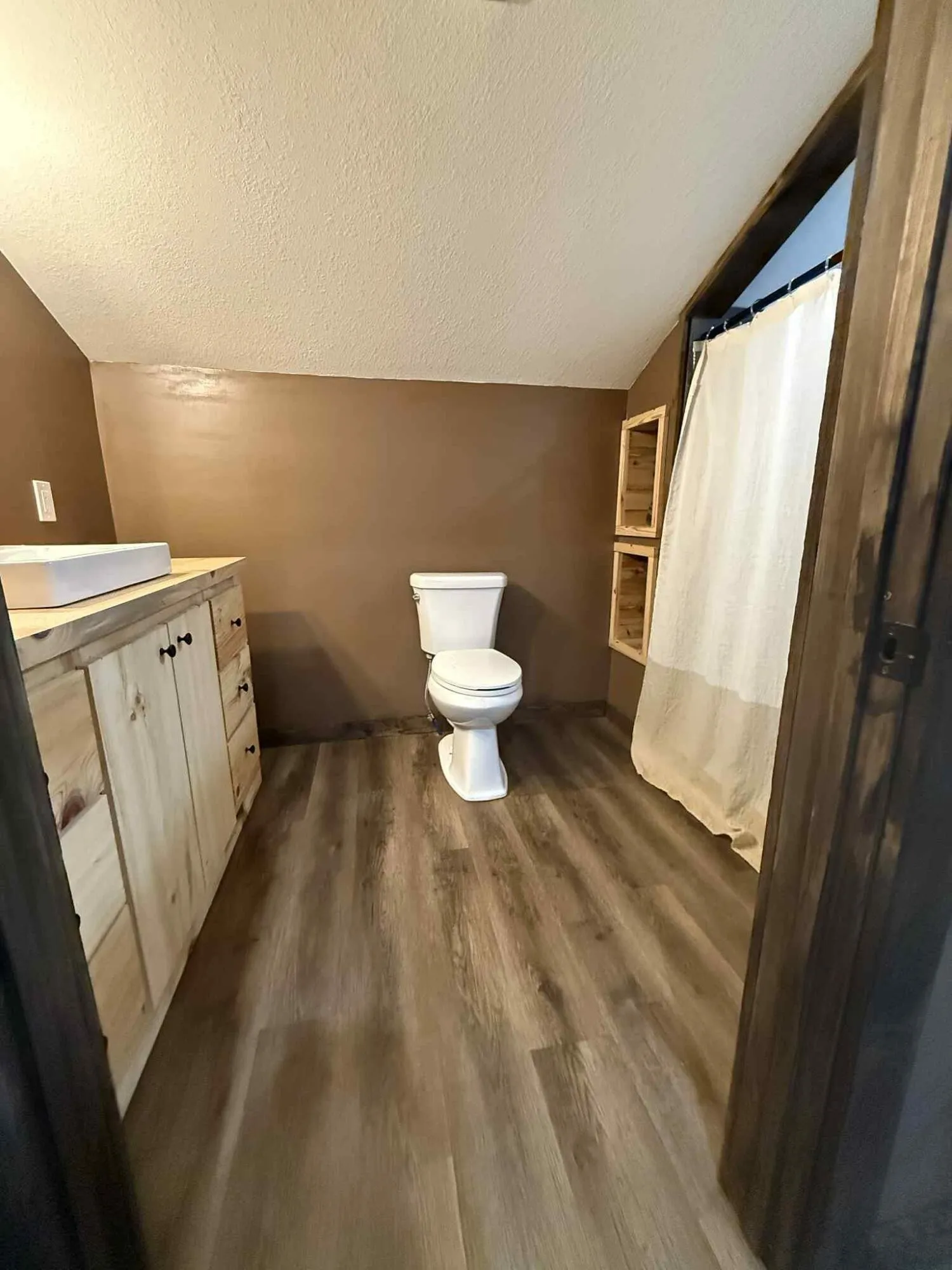 All shelving and cabinets in the bathrooms and laundry room were also custom built.