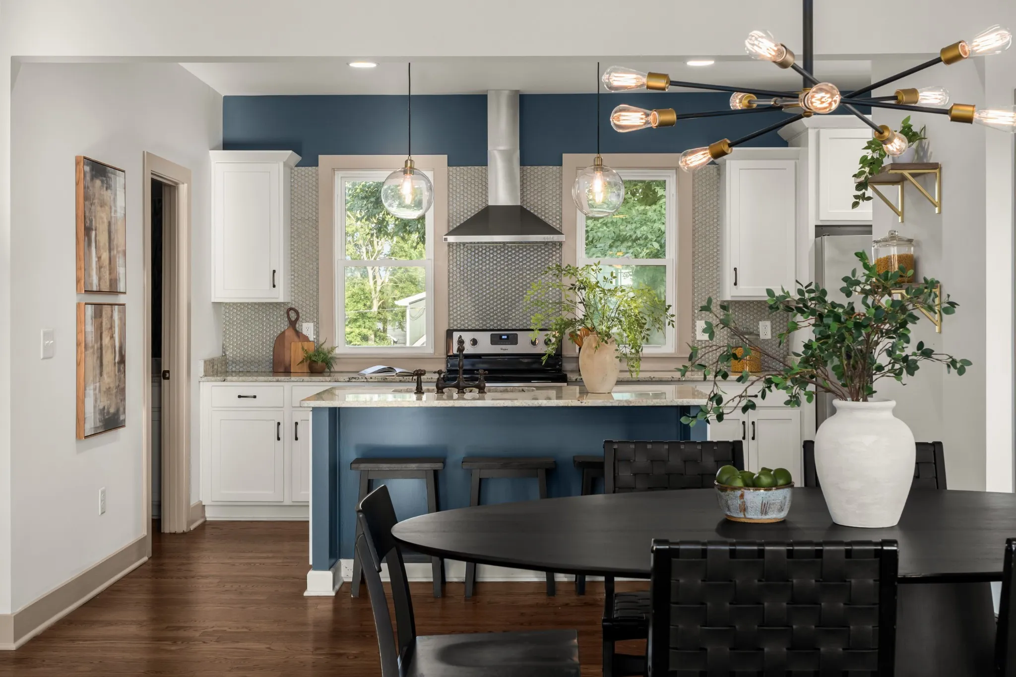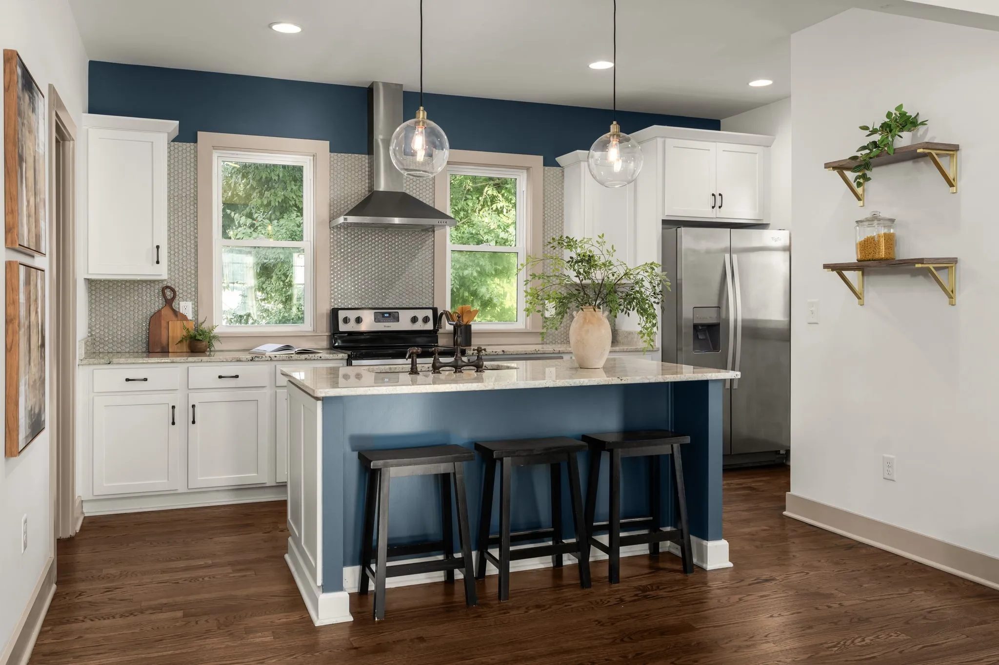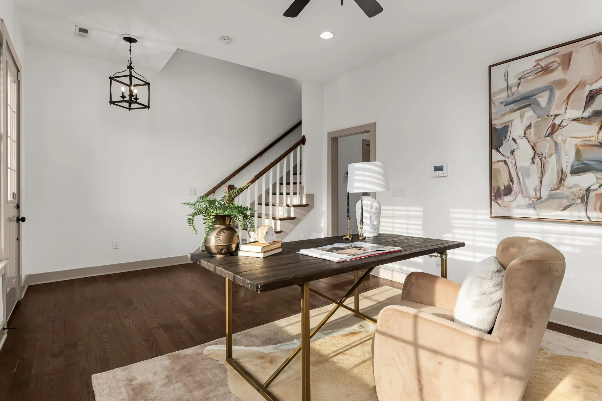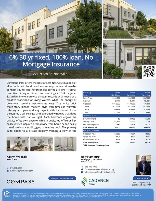 Cleveland Park captures the best of East Nashville living, a creative pocket known for its sense of community, tree-lined sidewalks, and easy access to some of the city’s most beloved spots. Start your mornings with coffee and cardamom buns at Flora + Fauna or brunch at Redheaded Stranger. Evenings might mean cocktails at Wilburn Street Tavern or dinner at Folk or June. This end-unit white brick three-story blends modern design with timeless warmth. Tall ceilings, hardwood floors throughout, and expansive windows on three sides fill every level with natural light. Each bedroom offers the privacy of its own ensuite bath, and the dedicated office or flex space easily transforms into a studio, gym, or reading nook. The primary suite opens to a private balcony framing a striking view of the Batman Building, the perfect backdrop for morning coffee or a glass of wine at sunset. A rooftop deck above provides even more space to entertain or unwind, with unobstructed skyline views and complete privacy from neighboring homes. An attached two-car garage and additional rear parking lot create a rare combination of convenience and flexibility. The owner has used the back lot for outdoor workouts, casual gatherings with neighbors, and extra guest parking. Updated lighting and thoughtful finishes throughout make this home as functional as it is beautiful. With special preferred-lender financing options offering a 6% 30-year fixed loan with 100% financing and no mortgage insurance, this home provides an approachable path to ownership in one of East Nashville’s most dynamic and desirable communities.