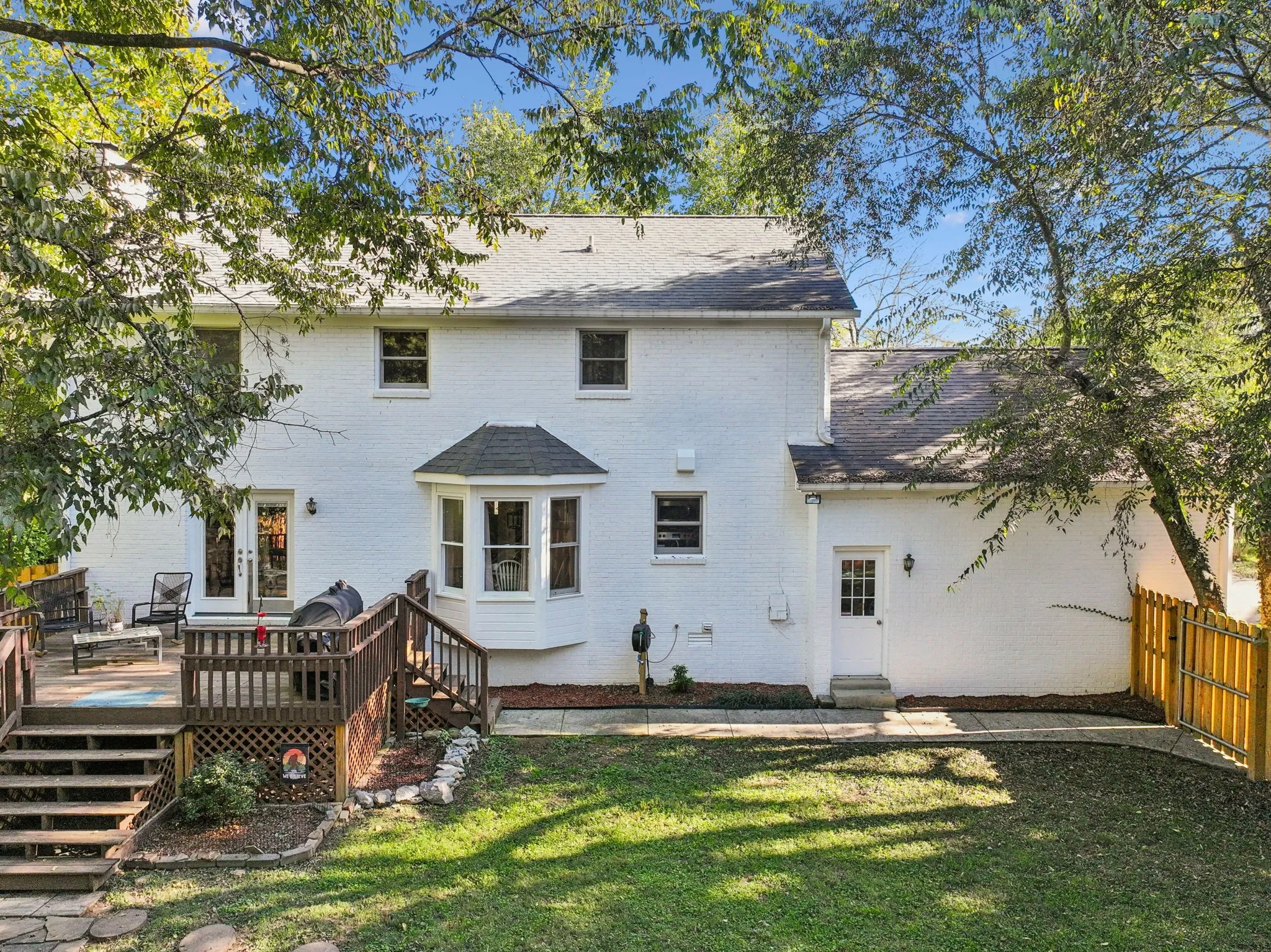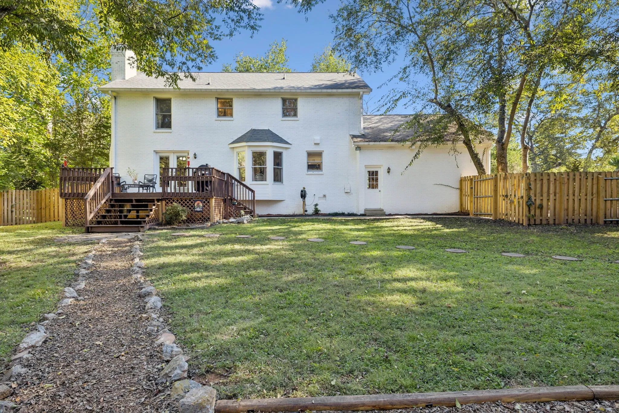 It features a serene park like yard with a CREEK at the back that includes a new FIRE PIT AREA, fresh landscaping and a large lot just shy of 1/2 acre. The newly fenced back yard is perfect for kids to play or dogs to enjoy. The inside has a WOOD burning fireplace, updated bathrooms and kitchen with QUARTZ countertops. Roof is only TWO years old. Downstairs this home has a dining room, living room and a large family room that walks out to the large back deck overlooking the back yard. Upstairs, you have four spacious bedrooms. The primary bedroom has two large closets and an on-suite bathroom. Also, in the primary is walk in attic space for all your storage needs. ****If buyer uses preferred lender “Southwest Funding”, Kaylee Davis. They will receive a 1% lender credit to use on the purchase of this home to use toward a buy down on the rate or to use on closing costs*****