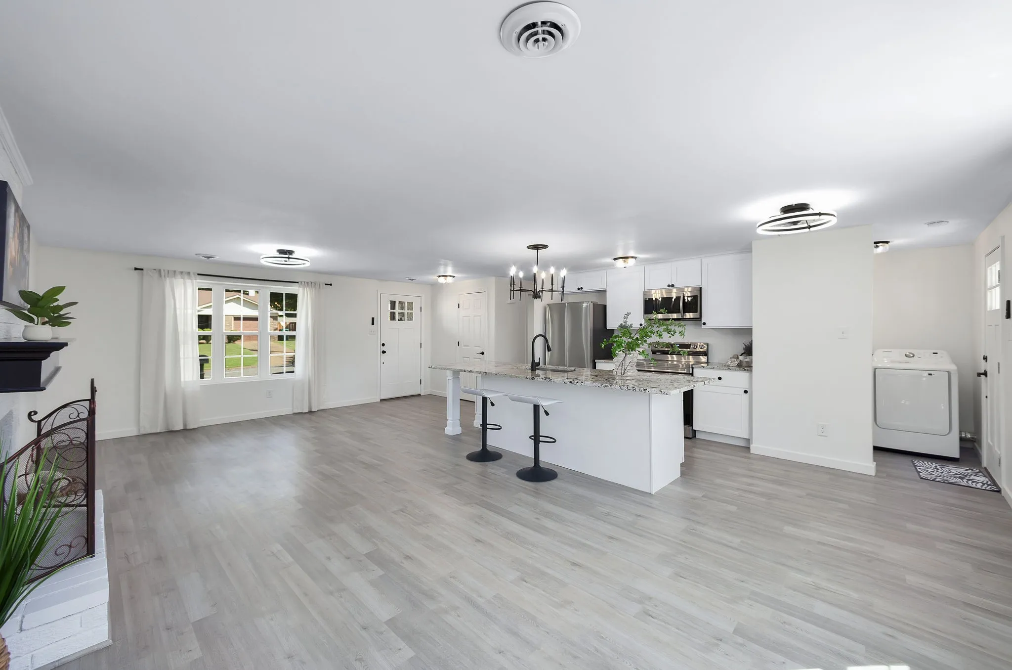 This one-story ranch has been totally transformed—so many upgrades, it’s hard to keep count! Fresh paint inside and out, brand-new LVP flooring with tile in all the wet areas, new roof, custom windows, custom closets, all new doors, new water heater and HVAC are just the beginning. The open-concept living area flows right into a dream kitchen featuring brand-new cabinets, sparkling granite countertops, and a massive 10-foot island that’s ready for cooking, gathering, or just showing off. Every appliance is brand new—including the washer and dryer!