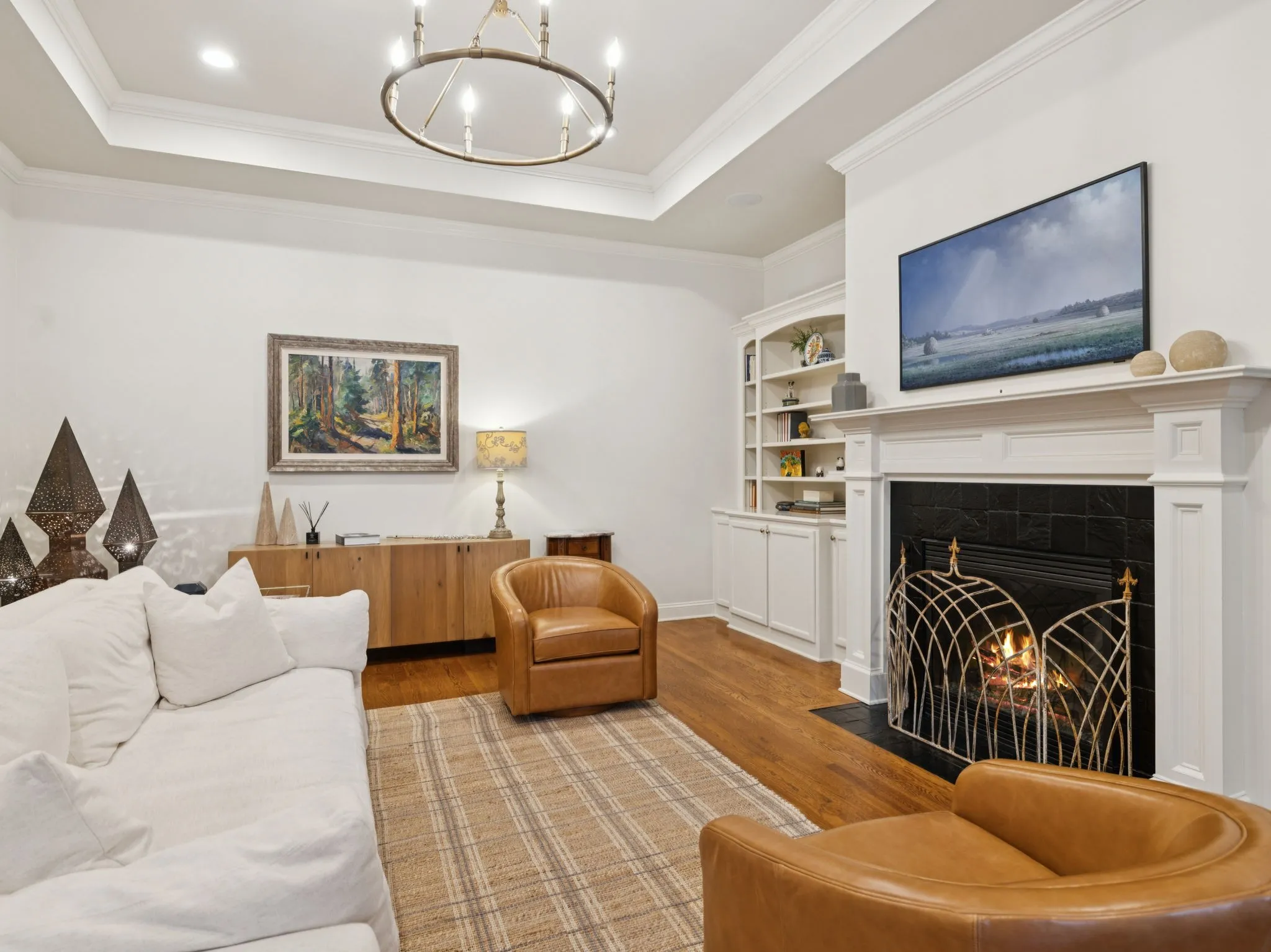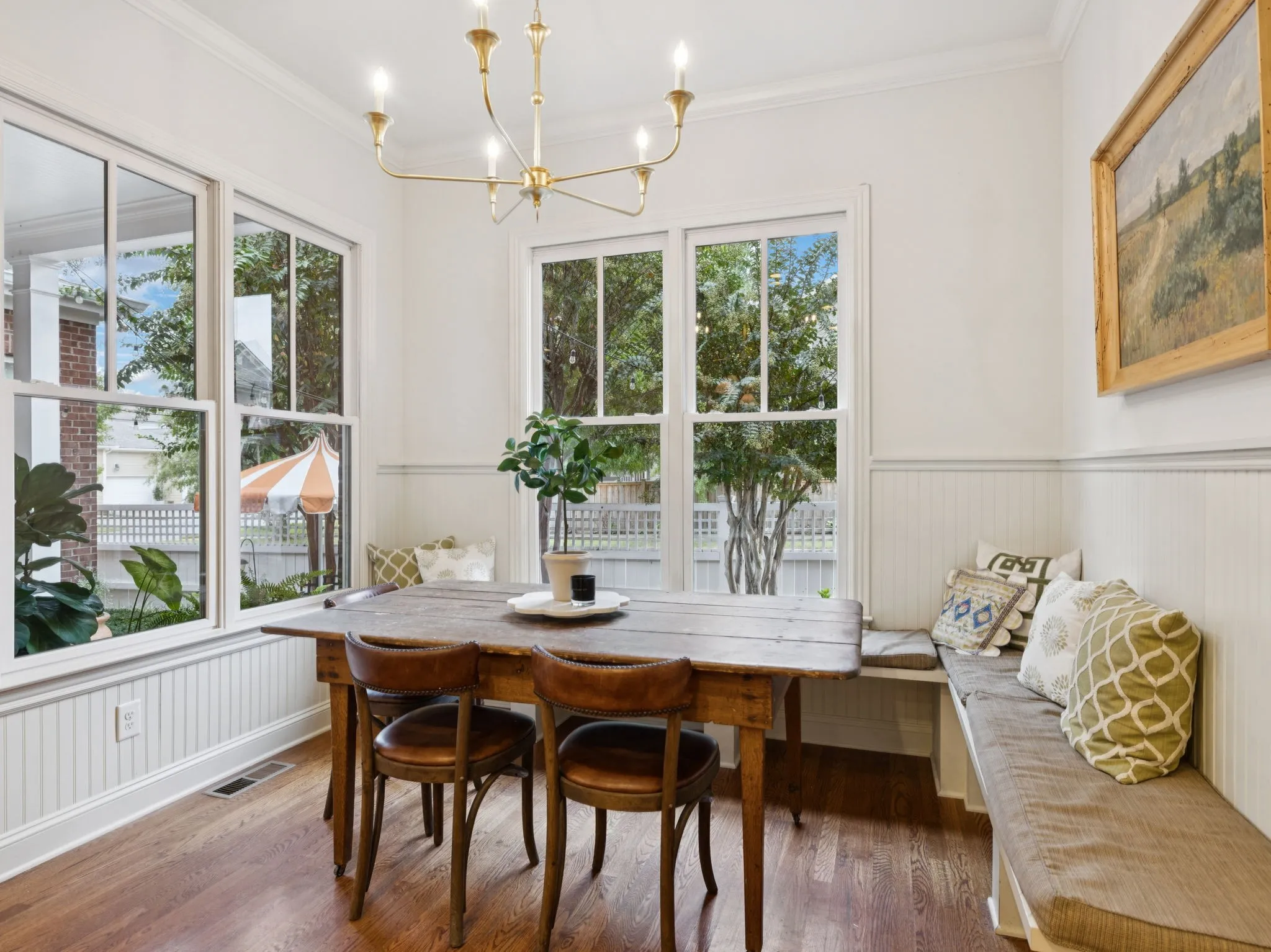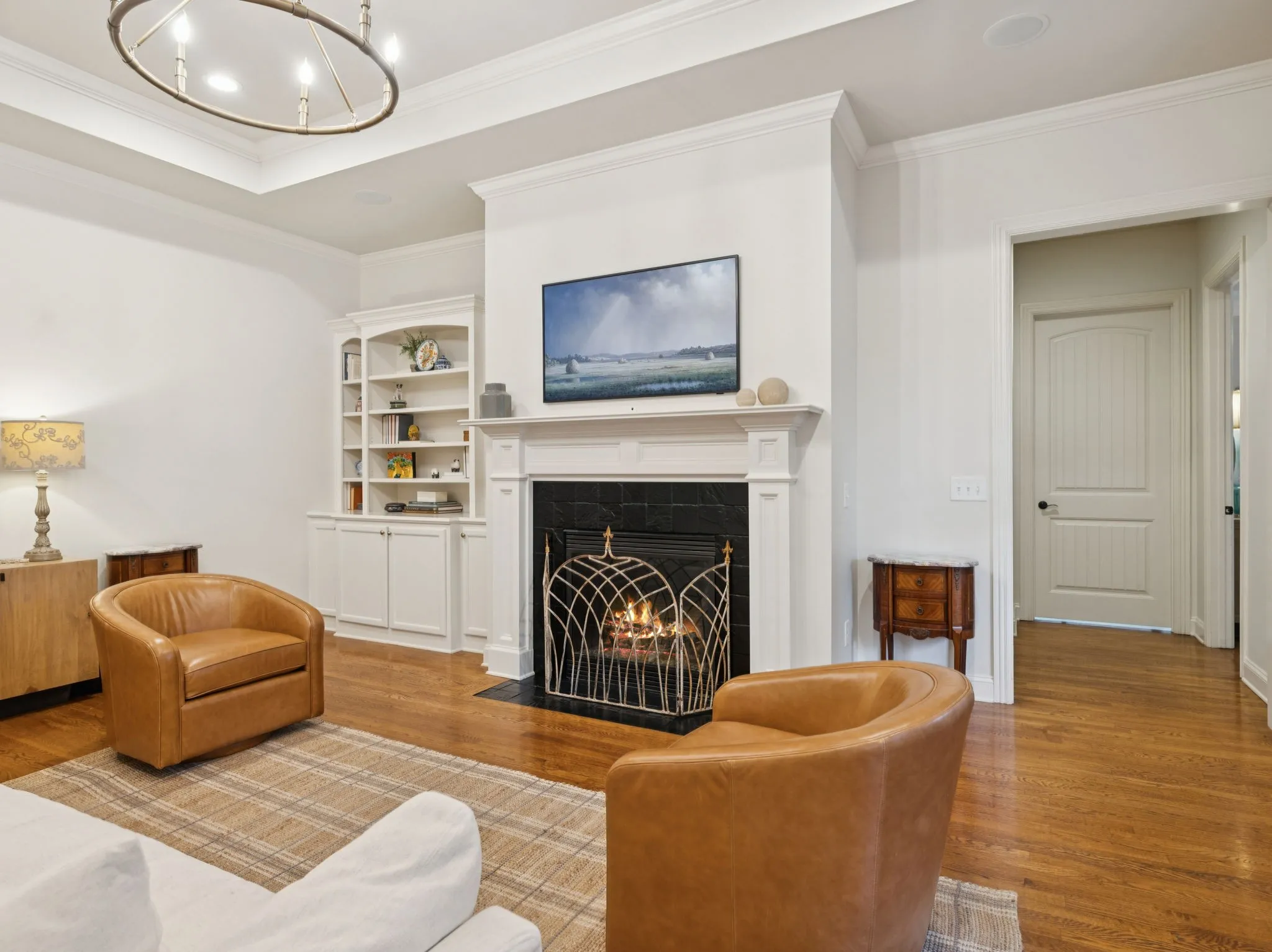 Fabulous corner lot, brick home w/ amazing natural light ~ 4 bedrooms, 4 full baths ~ 3 car tandem garage ~ Roof 2 yr old ~ Fenced Level Lot ~ Wrap around porch ~ New Paint ~ Wood floors throughout ~ New Lighting ~ Decorator touches ~ 10ft + ceilings on main level ~ Drop Zone ~ Utility Room w/ cabinets ~ Storage ~ Updated Kitchen w/ painted cabinets, new hardware & tile backsplash, new Quartz countertops & plumbing fixture ~ New Kitchen Sink ~ Under cabinet lighting ~ Spacious family room w/ gas fireplace open to kitchen & breakfast area ~ Built in Bookcases ~ Walk in Pantry ~ Butler’s Pantry / Bar ~ New HVAC & Water Heater ~ Generous bonus room wired w/ ceiling speakers, 11ft + ceiling & custom desk / bookcase ~ 2 Bedrooms + 2 Baths on main level ~ Primary bath features 2 sinks, new lighting, fresh paint, hardware & new mirrors ~ Large walk in closet ~ 2 bedrooms, 2 baths upstairs ~ Mature Landscaping ~ Irrigation ~ Convenient location within Westhaven situated across street from walking path ~ Near School, new Pool, Shopping, Restaurants & more!