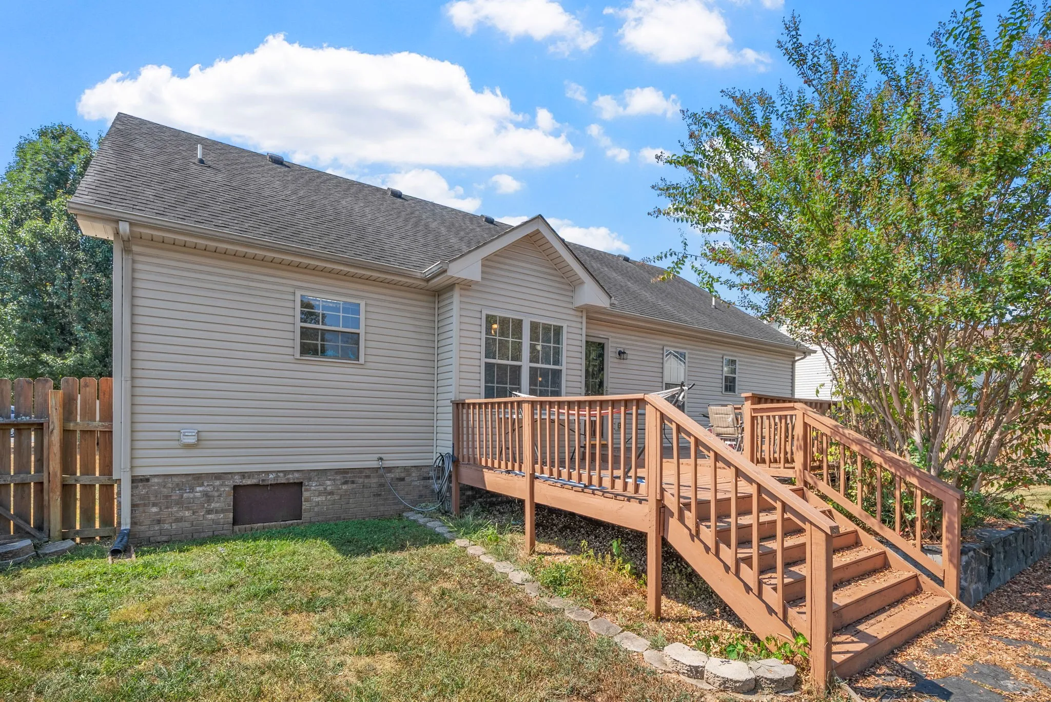 Fall in love with 3260 Veranda Cir! Conveniently located in Wildwood Crossing with NO HOA, this 1,768 +/- sqft home is full of charm, comfort, and thoughtful design. Step inside to a bright, open layout that flows effortlessly from the kitchen and dining areas into the living room with soaring ceilings perfect for everyday living or entertaining. All 3 bedrooms are on the main level, including the primary suite with a private ensuite and walk-in closet. Upstairs, the bonus room makes an amazing theater, playroom, or optional 4th bedroom. Step outside to a large deck and a fenced backyard with mature trees, beautifully shaded in the late afternoons and evenings ideal for relaxing, backyard fun, or a cozy Tennessee bonfire. The location is unbeatable: walking distance to Publix and just minutes to shopping, dining, I-24, and Fort Campbell. Spacious, inviting, and perfectly positioned. This one truly checks all the boxes! Don’t wait! come see it for yourself today!